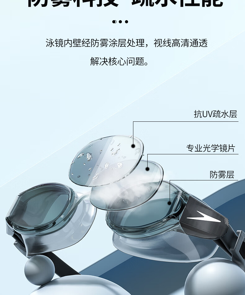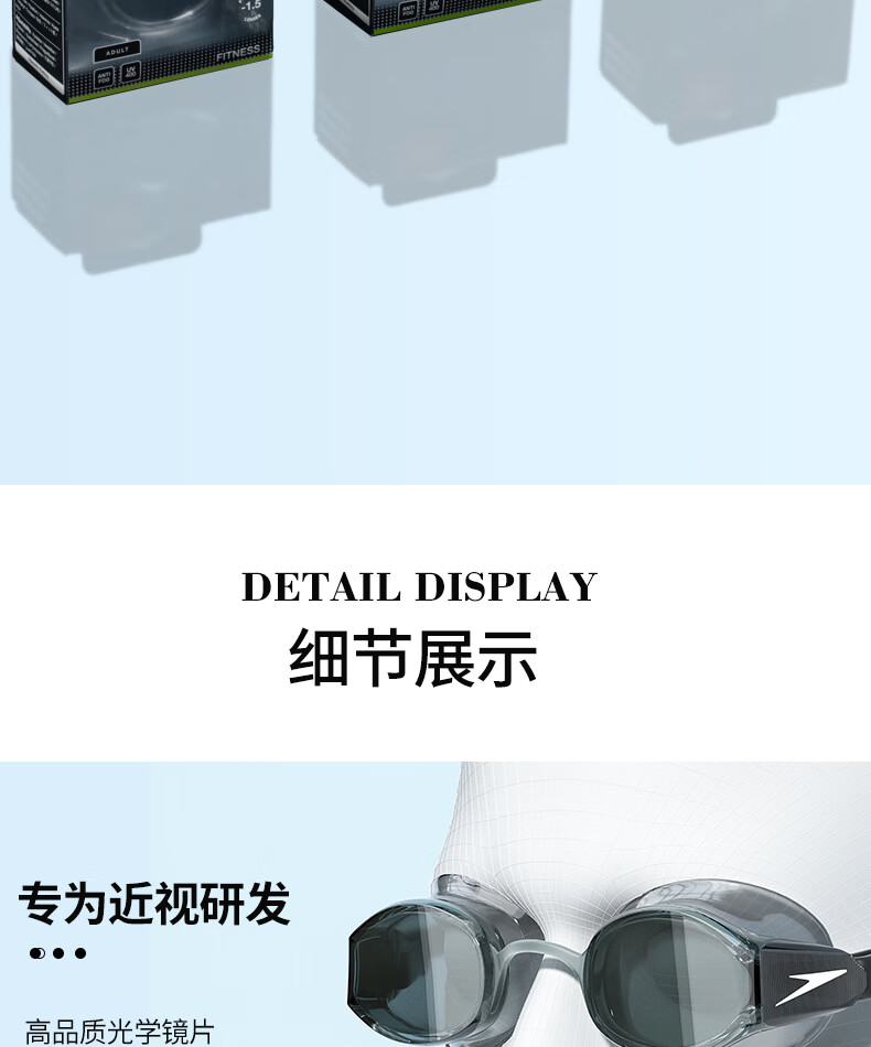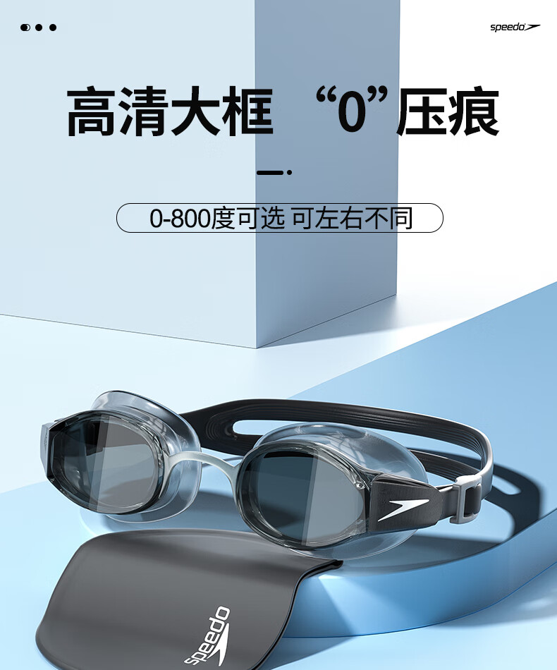 Speedo speedo myopia swimming goggles original high definition anti-fog waterproof large frame comfortable left and right different degrees of swimming equipment new black large frame 400 degrees