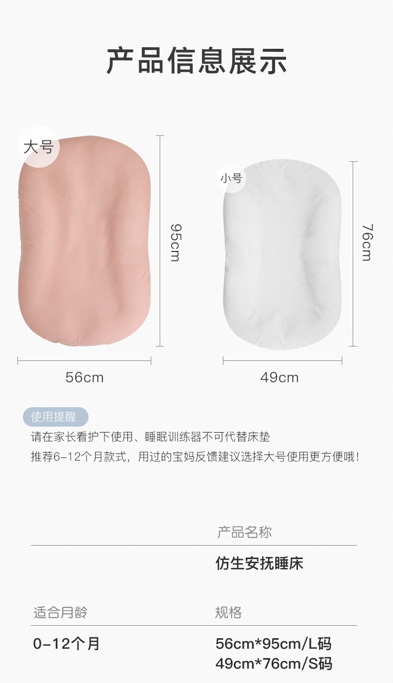 Crib mid-bed newborn bionic bed portable baby anti-pressure bed anti-jump uterine bed milk white 0-12 months--free swaddle