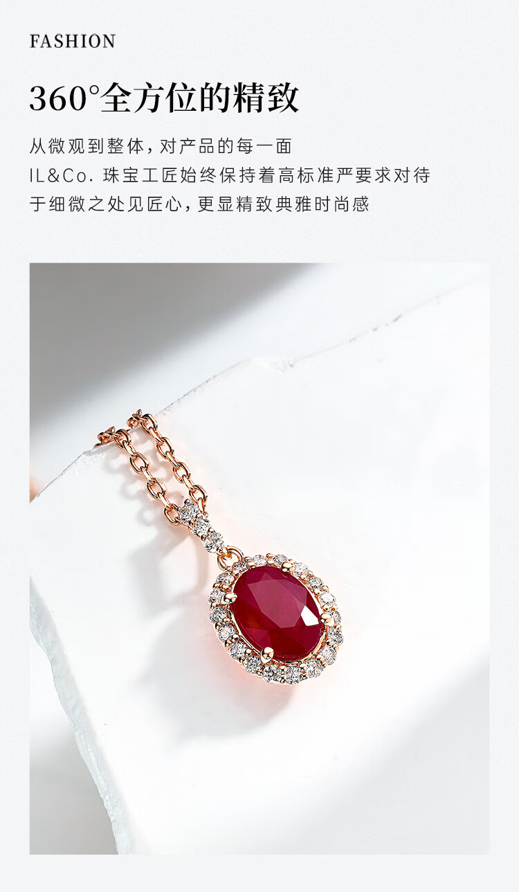 IL&CO Youke Champs Marie natural ruby pendant 18K gold diamond necklace female birthday gift for wife 80 points left and right 18K gold ruby* with silver chain