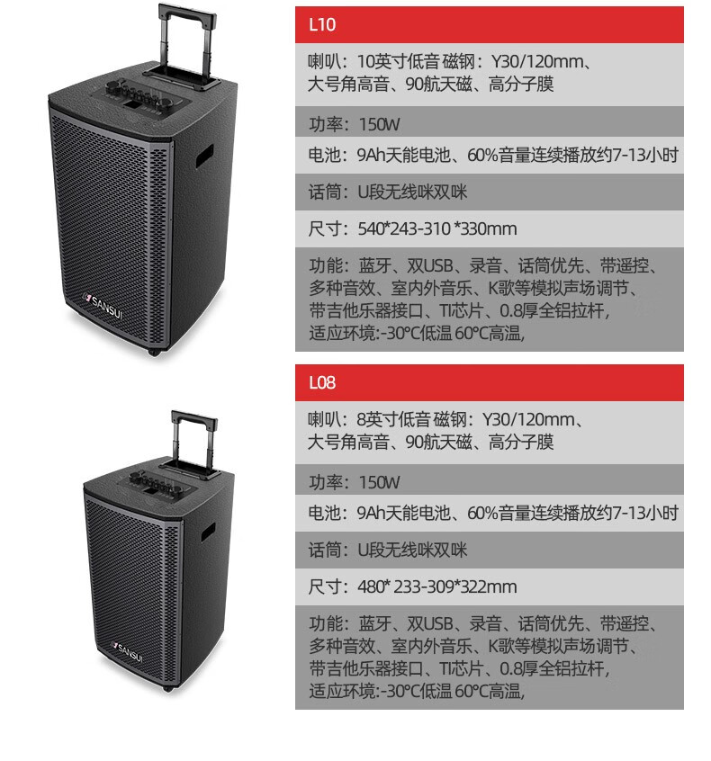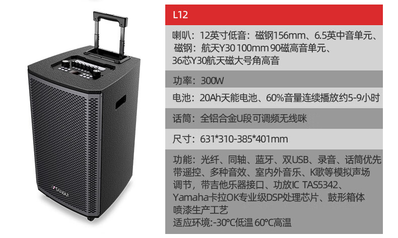 SANSUI L series square dance audio high-power subwoofer pull-rod audio outdoor portable Bluetooth speaker professional stage-level karaoke dedicated amplifier three-way 15 inches + dual bel canto microphones