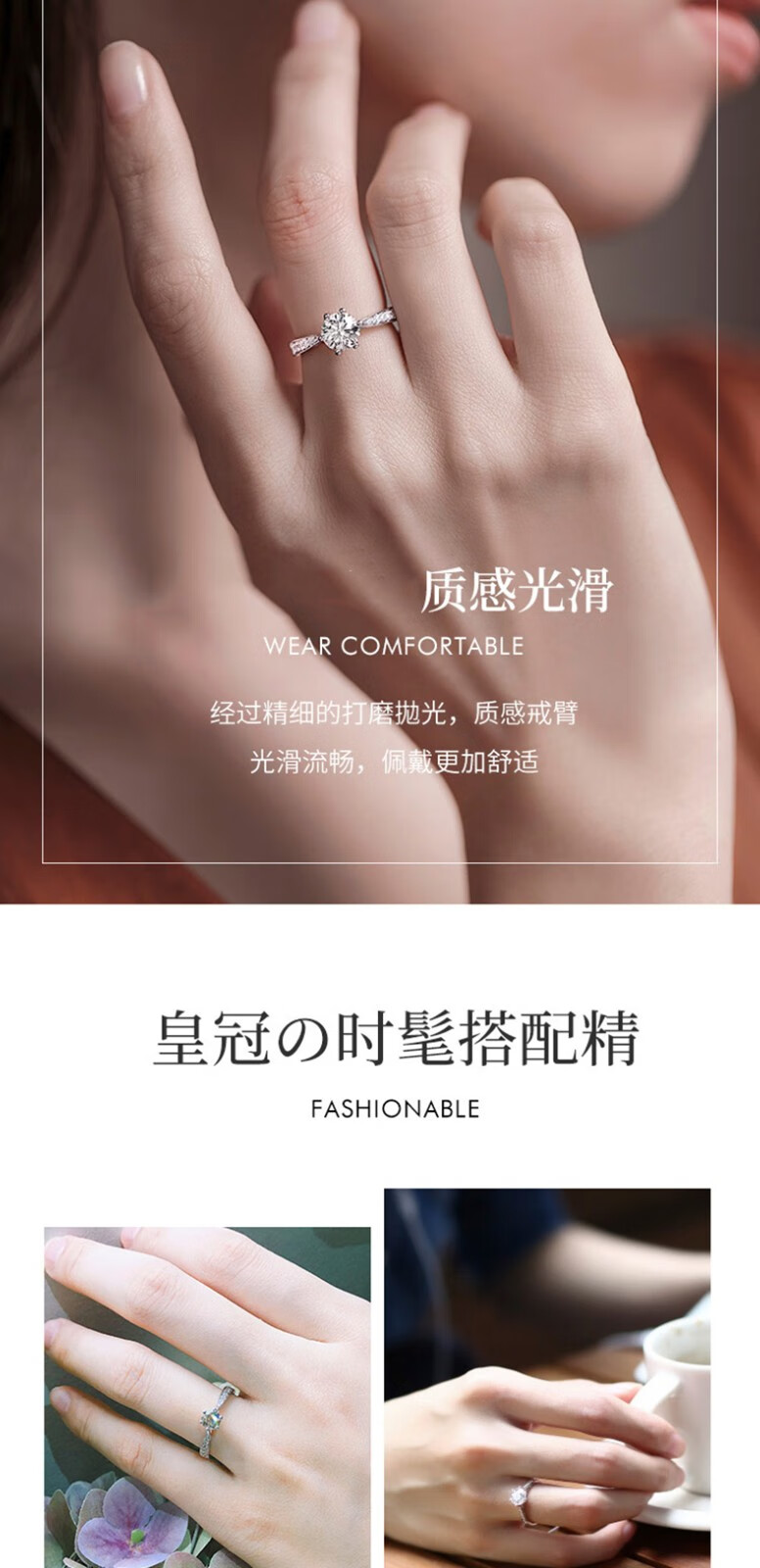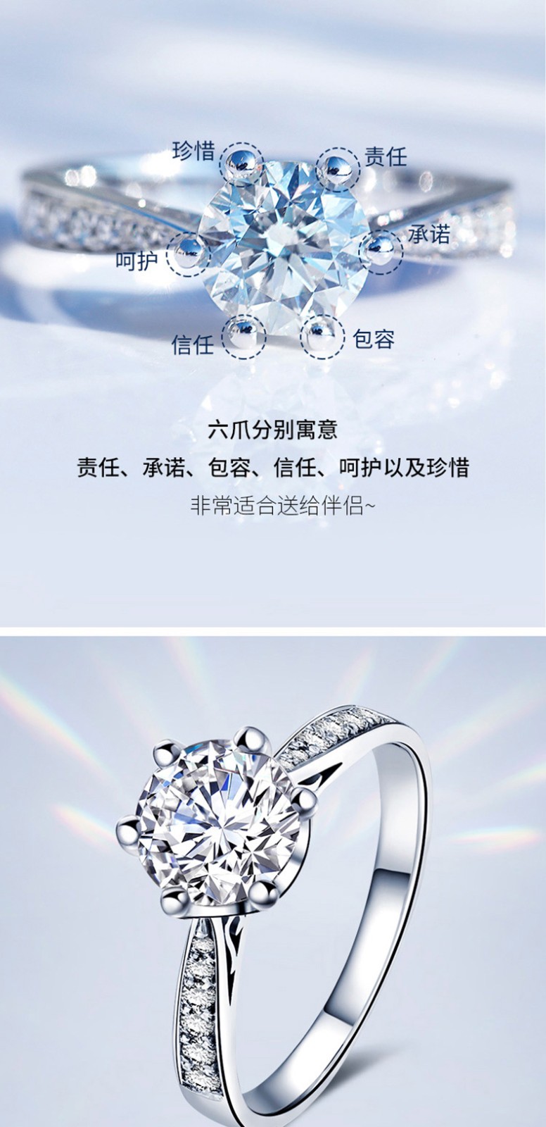 MZMZ Moissanite Diamond Ring PT950 Platinum Women's Adjustable One Carat Proposal Confession Girlfriend Birthday Gift for Girlfriend Light Luxury Style - 50 Points Diamond Ring Local Warehouse for Next Day Delivery Exquisite Gift Box Free Engraving