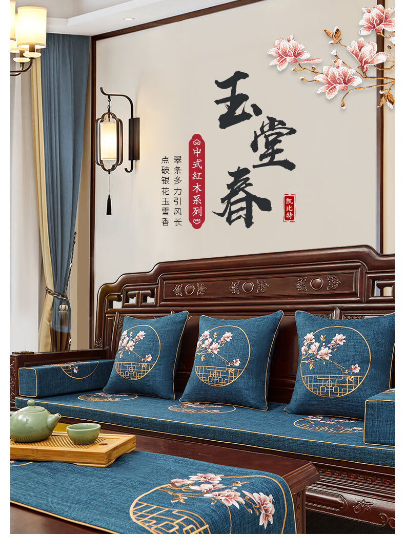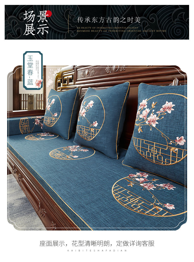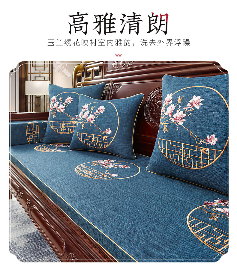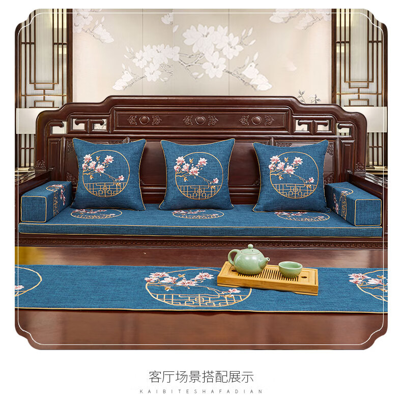 Kebit mahogany sofa cushion Chinese embroidery solid wood furniture sofa cushion for all seasons Luohan bed anti-slip cover customization Yutangchun blue cushion customization