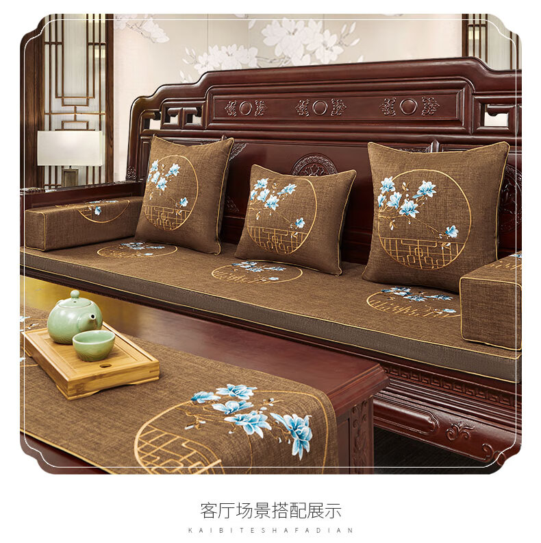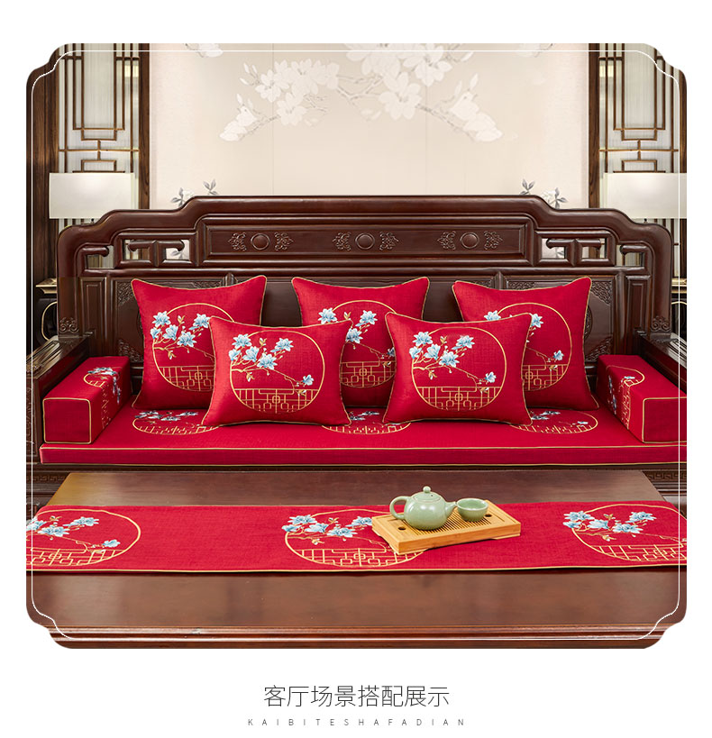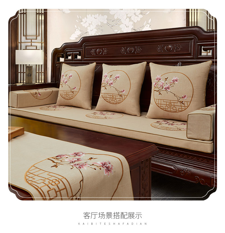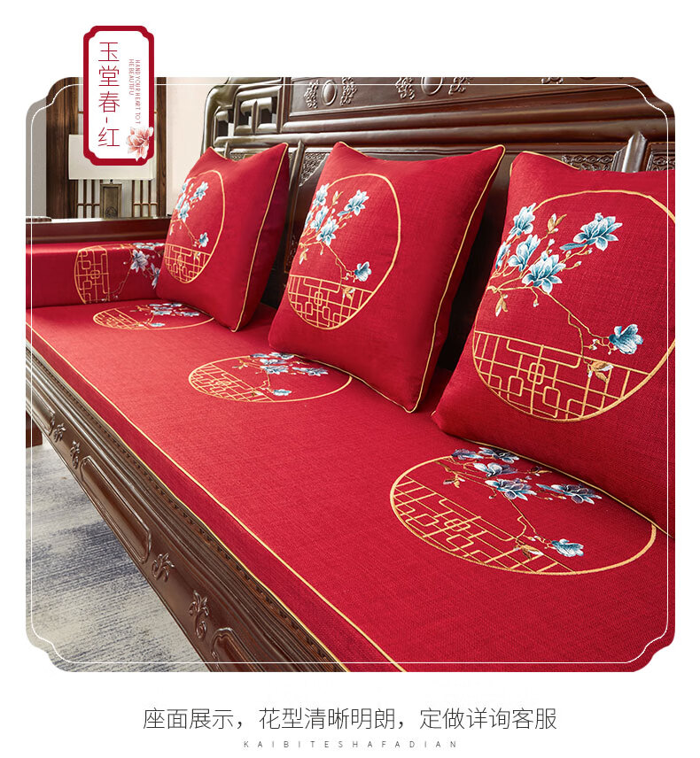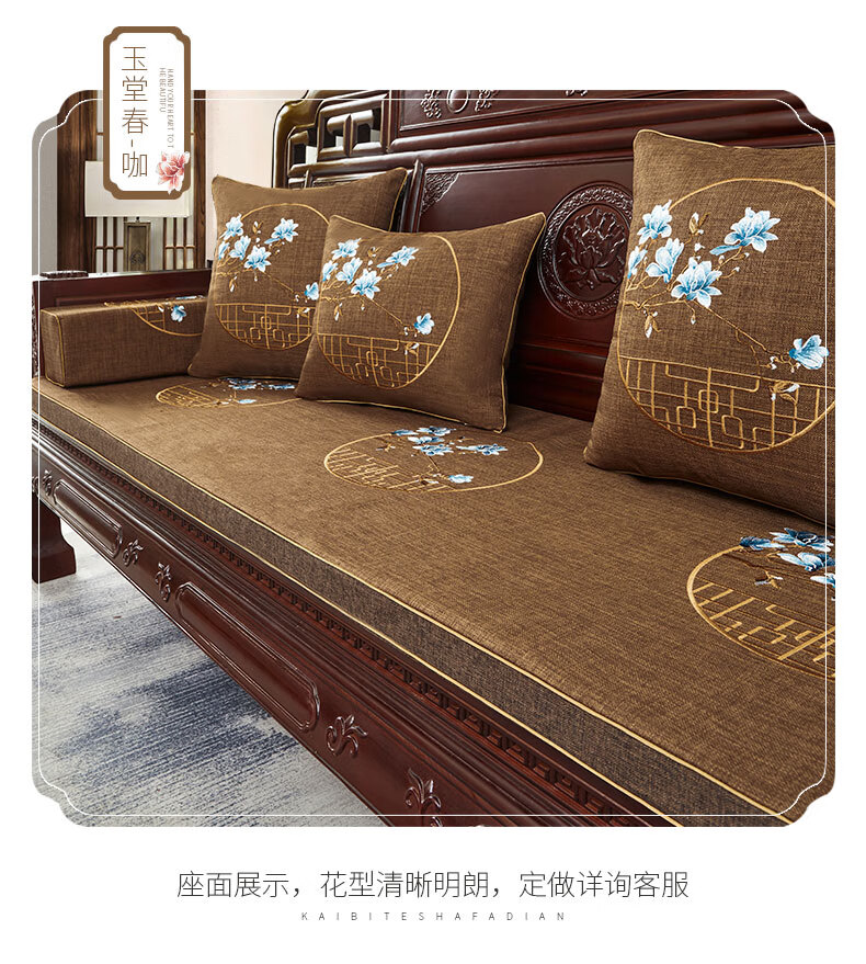 Kebit mahogany sofa cushion Chinese embroidery solid wood furniture sofa cushion for all seasons Luohan bed anti-slip cover customization Yutangchun blue cushion customization