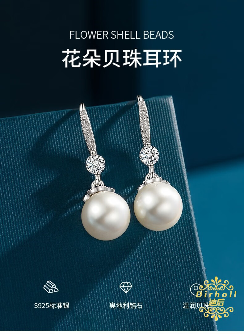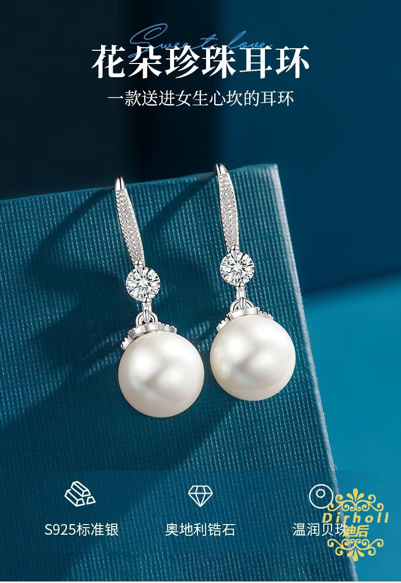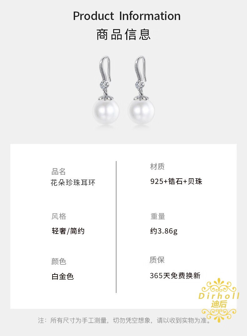 Dirholl brand flower pearl earrings for women, elegant and high-end earrings, birthday gifts for girlfriends and wives, bright flower pearl earrings, shipped from Qicang
