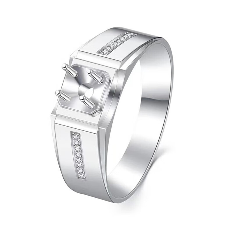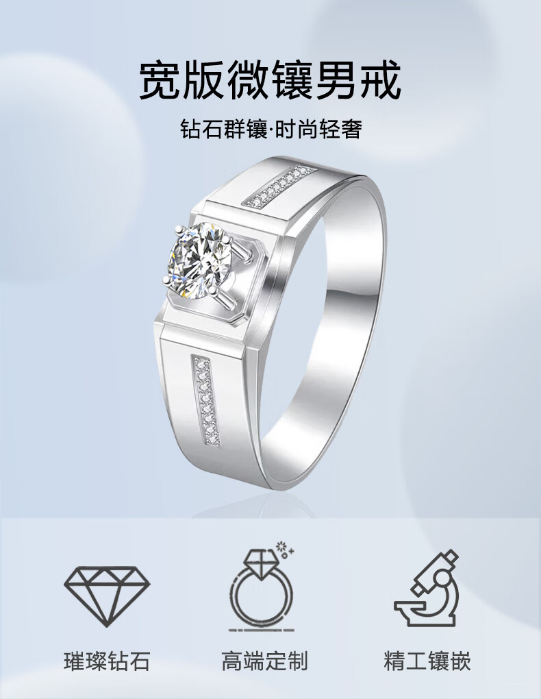 AVHE white platinum platinum men's ring four-prong wide version men's ring CVD diamond artificially cultivated diamond ring engagement wedding platinum wide version micro-set men's ring - D color 30 points VVS
