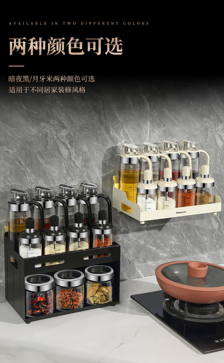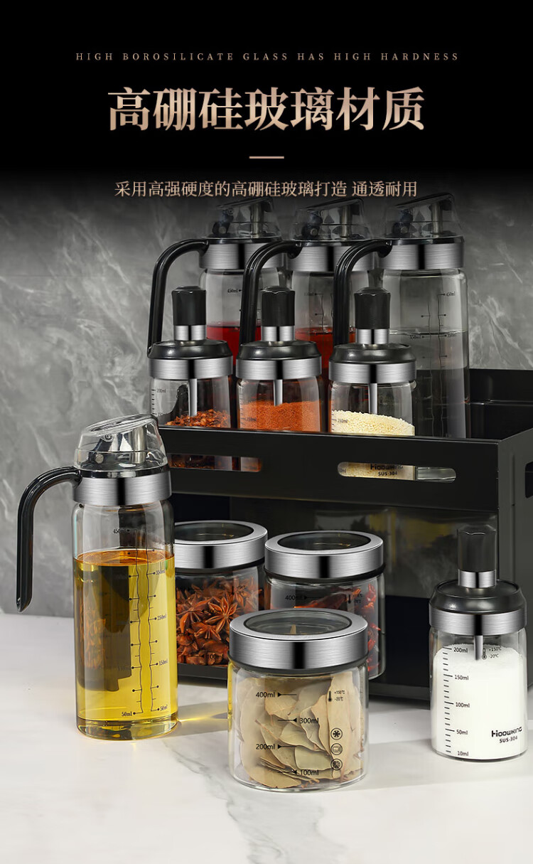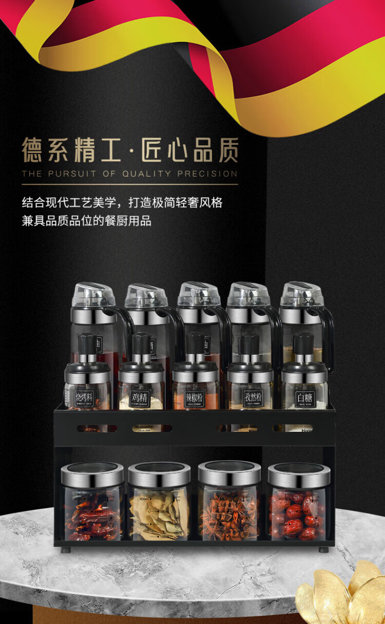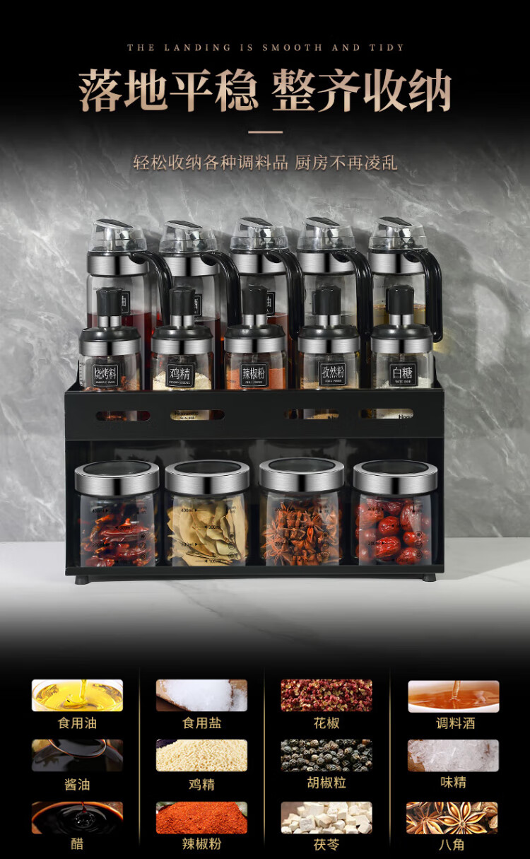 Heqing oil pot seasoning box combination set with oil bottle oil salt sauce vinegar seasoning jar seasoning utensils seasoning bottle sealed and moisture-proof Recommended 15-piece set 5 bottles + 5 oils + 4 cans + shelf