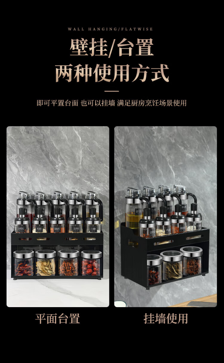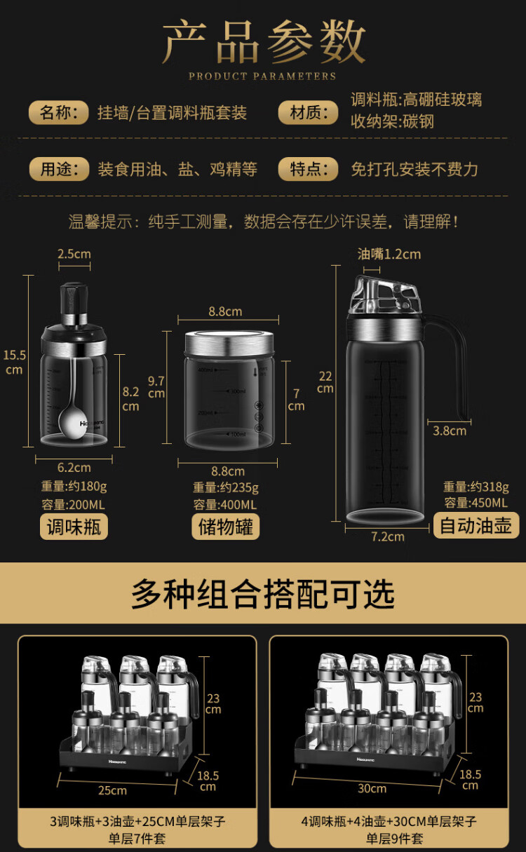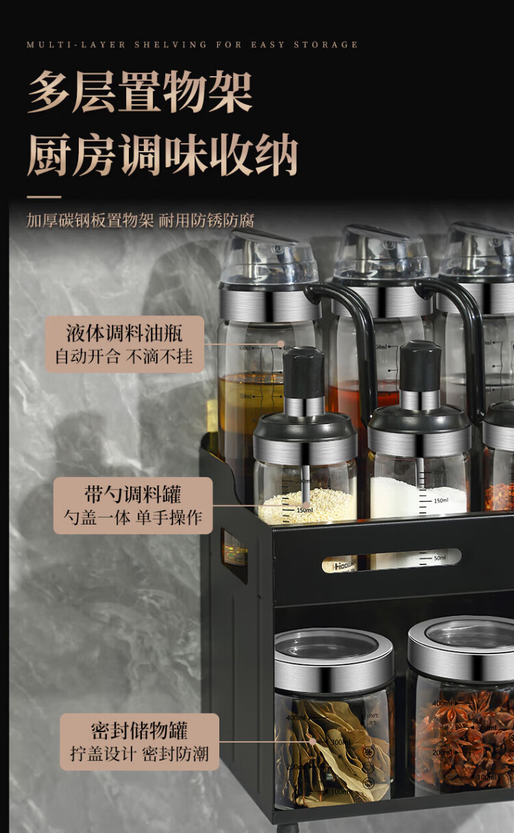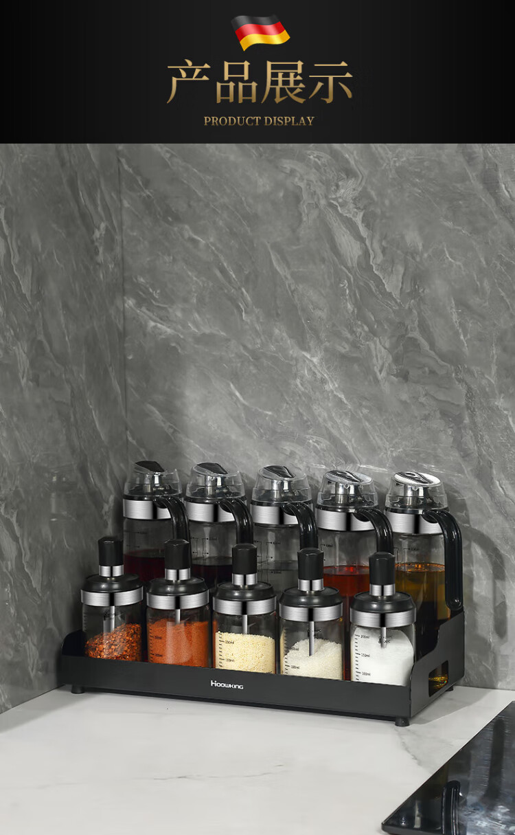 Heqing oil pot seasoning box combination set with oil bottle oil salt sauce vinegar seasoning jar seasoning utensils seasoning bottle sealed and moisture-proof Recommended 15-piece set 5 bottles + 5 oils + 4 cans + shelf