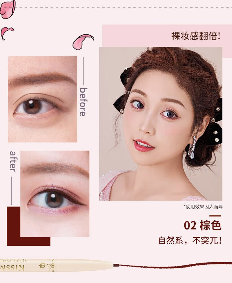 Kiss Me Huayingmeiko Soft Makeup Slim Eyeliner Pen 0.1g 02 Brown (2mm refill, screw-out type, sweat-resistant and waterproof)
