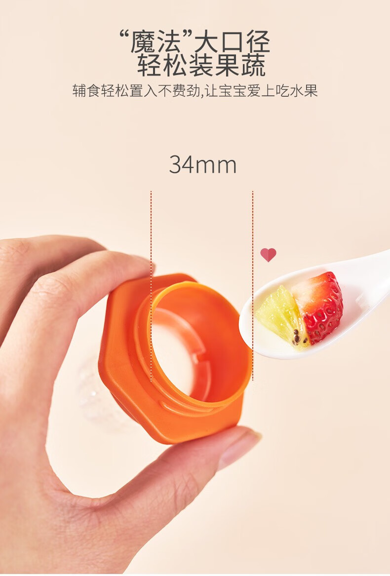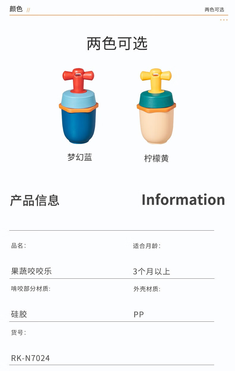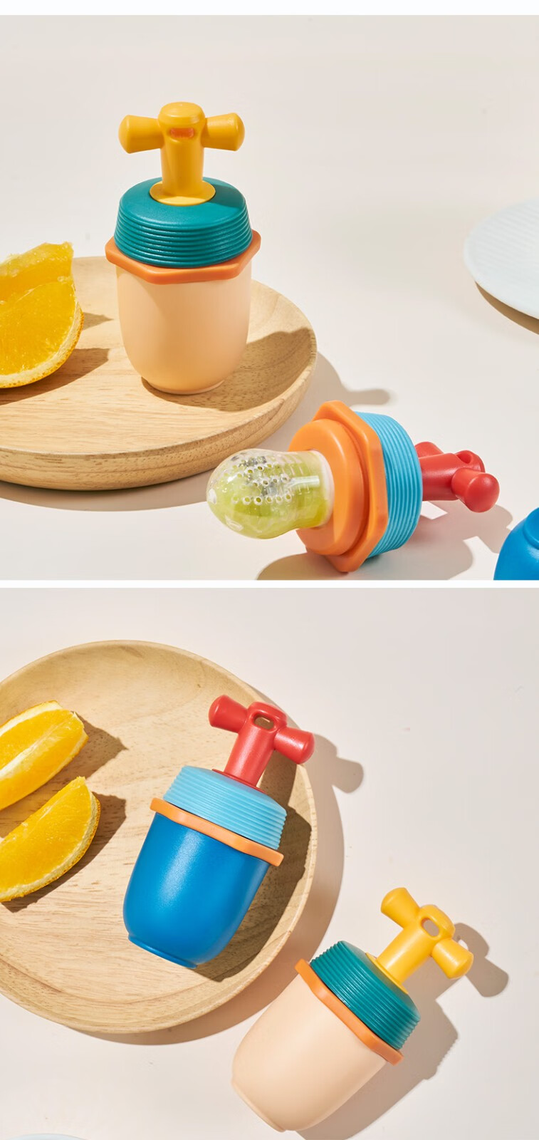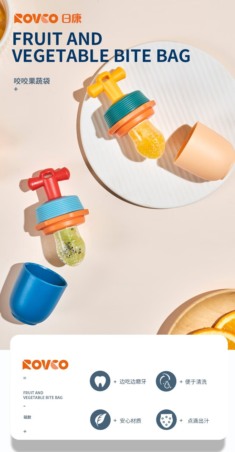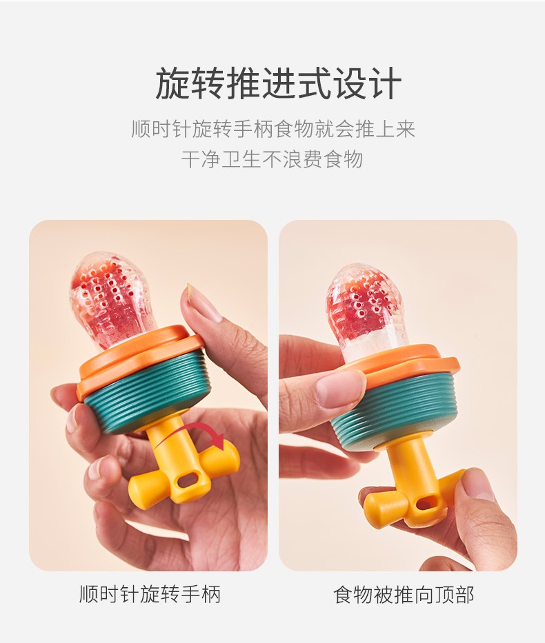 Rikang chewable baby fruit chews, oral chewing bag, fruit and vegetable juice auxiliary feeder, 3 months and above, spiral pusher, yellow, 1 pack
