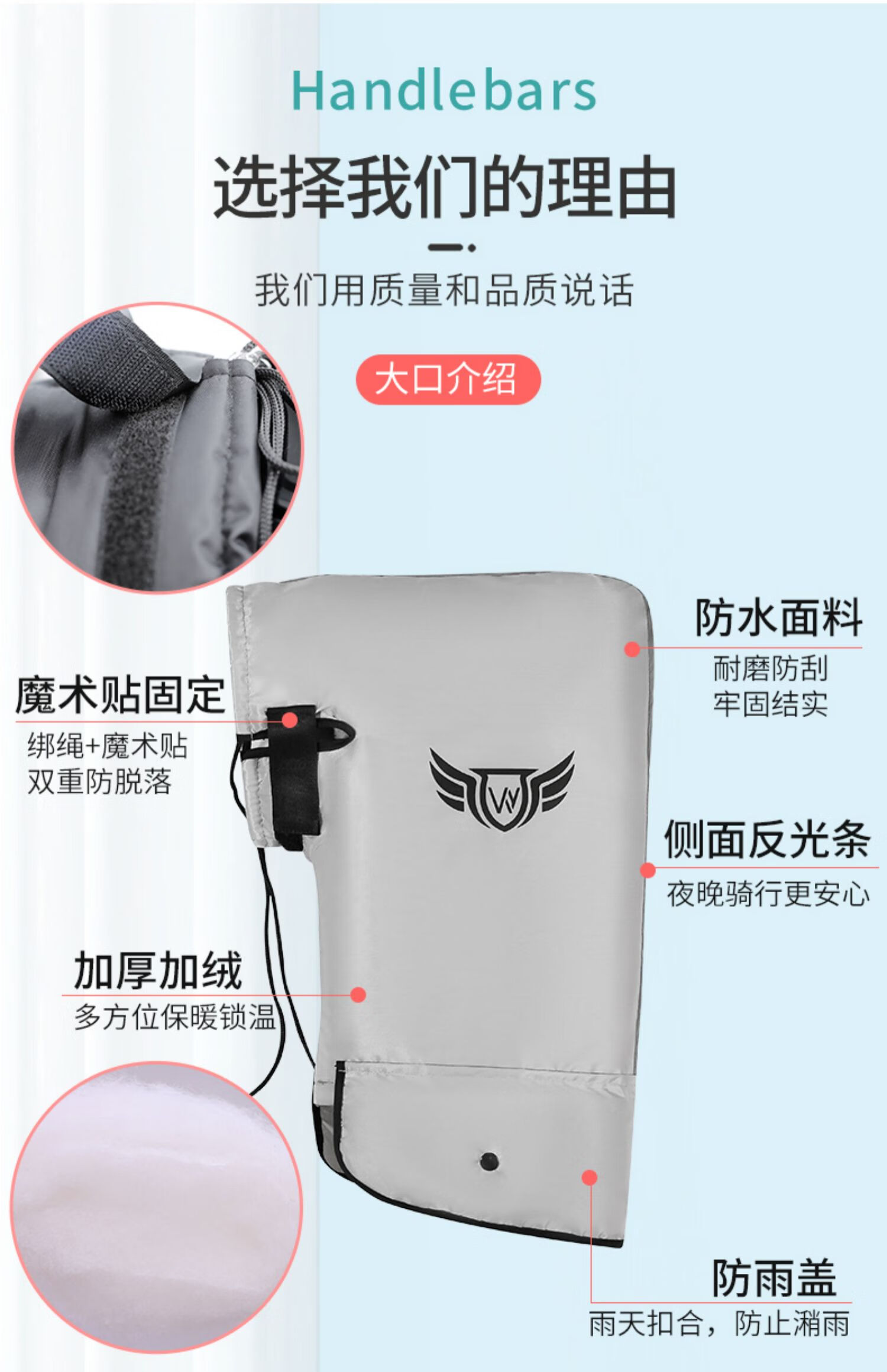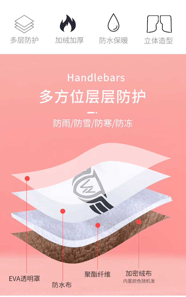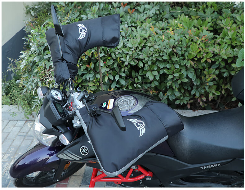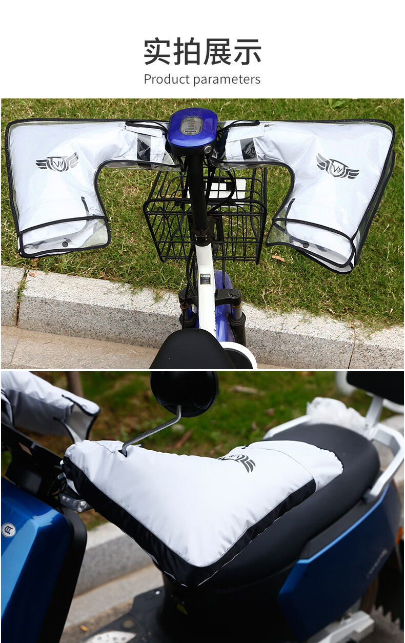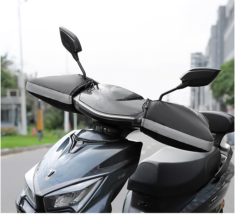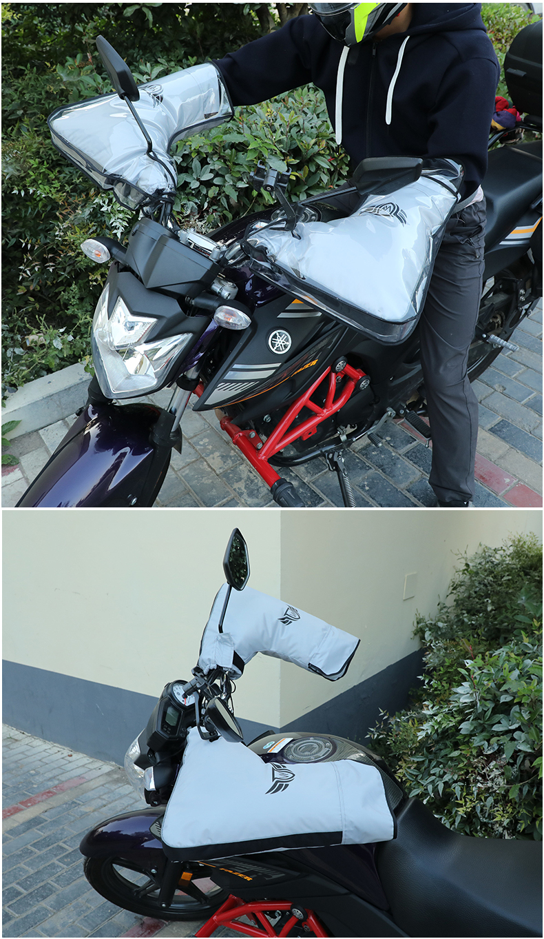 DEROACE electric bike handlebars, winter handlebars with velvet, windproof, warm and waterproof battery car gloves, motorcycle windshield, black large mouth handlebars + rain cover, one size fits all