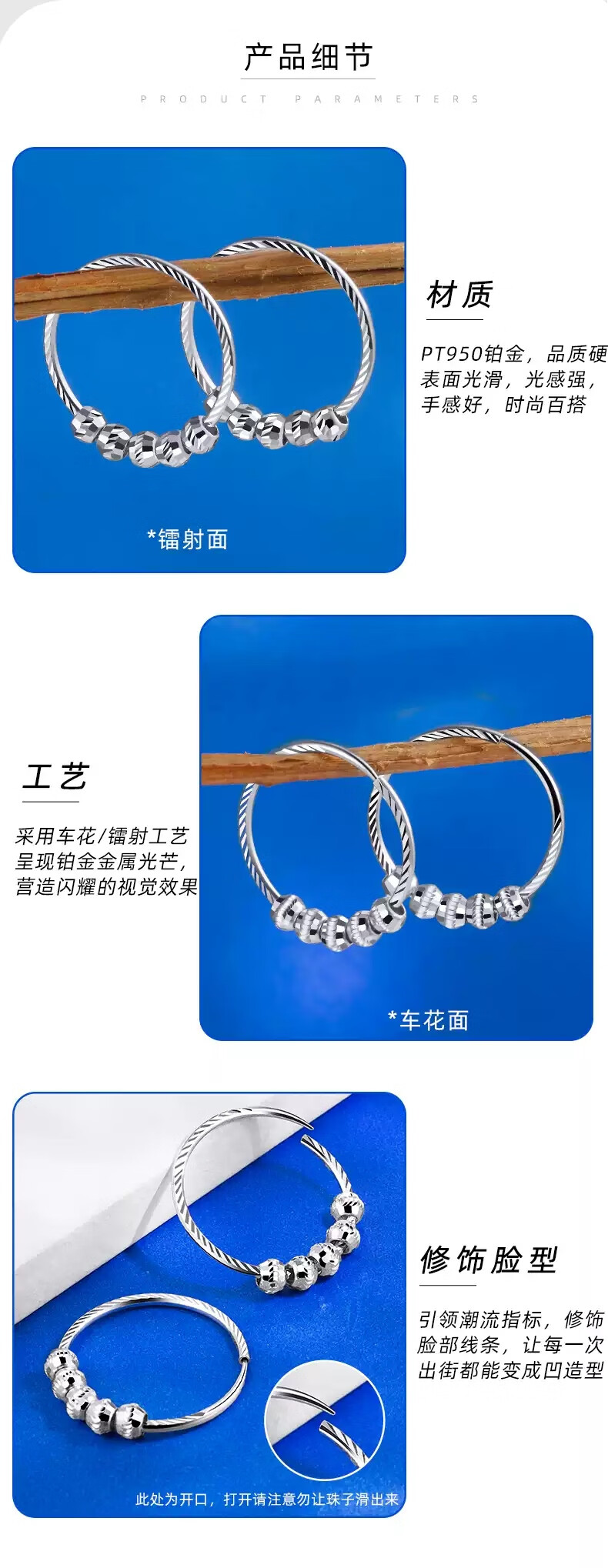 Yubo Workshop pt950 platinum earrings for women, platinum earrings, turned laser earrings, earrings, ear hooks, simple, simple and elegant, sparkling earrings - laser surface, about 3.55-3.75 grams