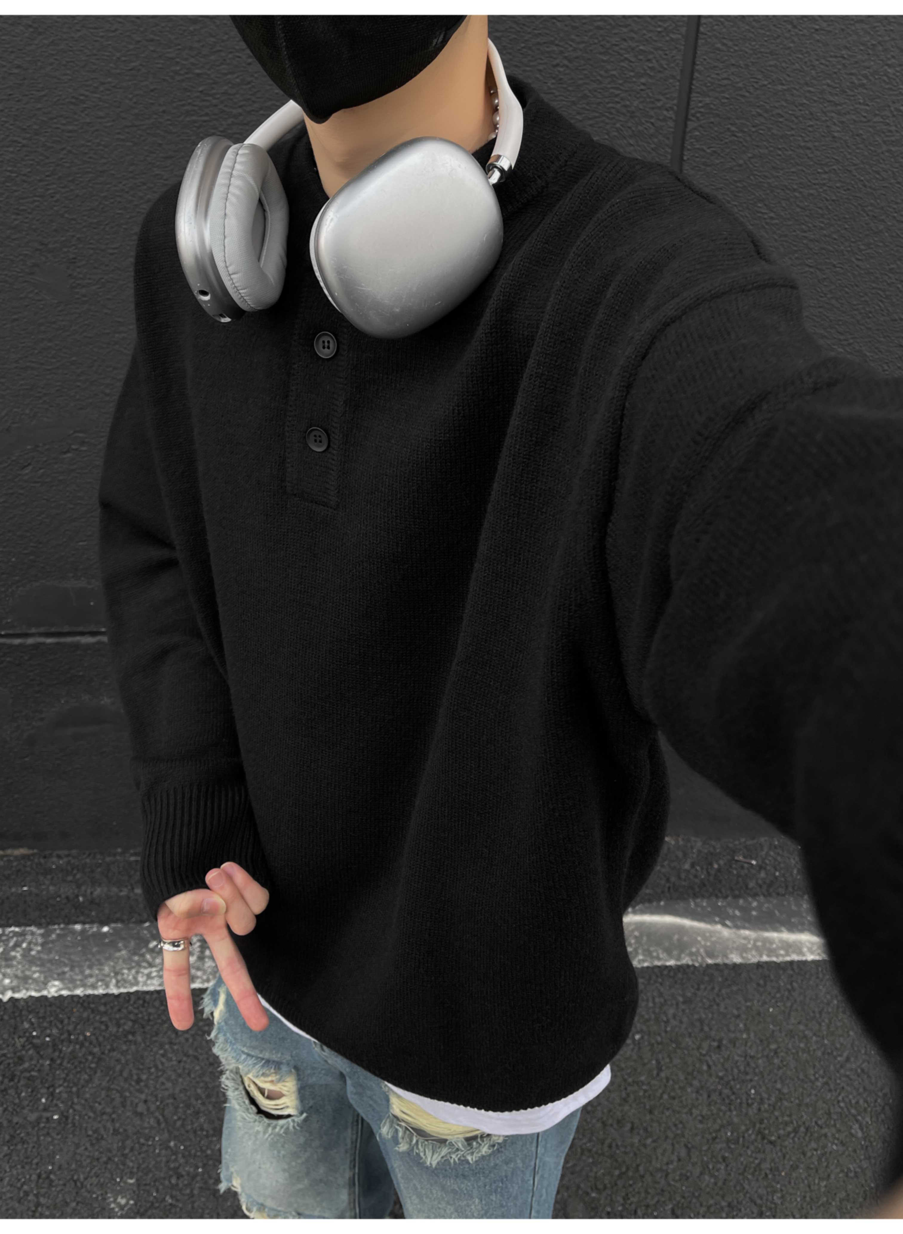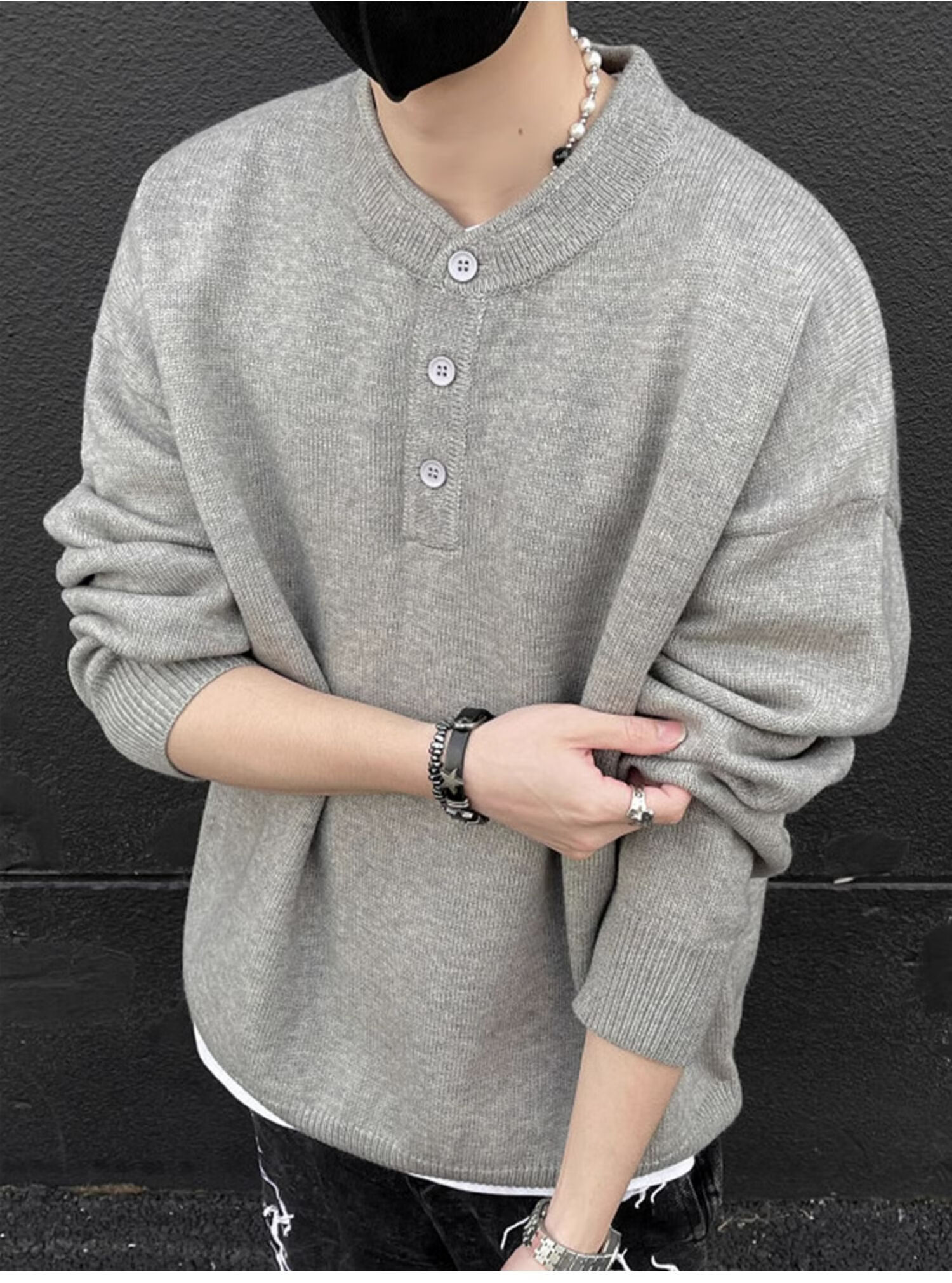 Muwei American Henry Collar Sweater Men's Autumn Premium Lazy Style Bottoming Sweater Cleanfit Inner Top Light Gray XL Recommended 130-150 Jin Jin equals 0.5 kg