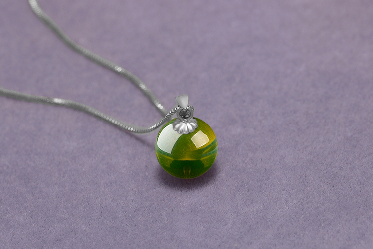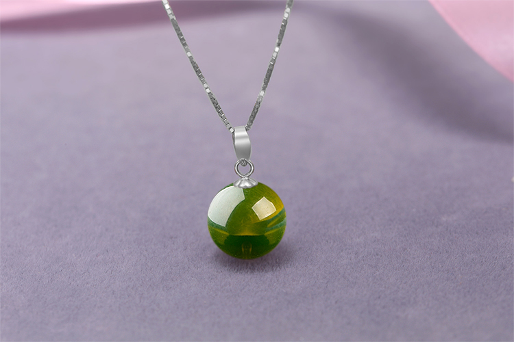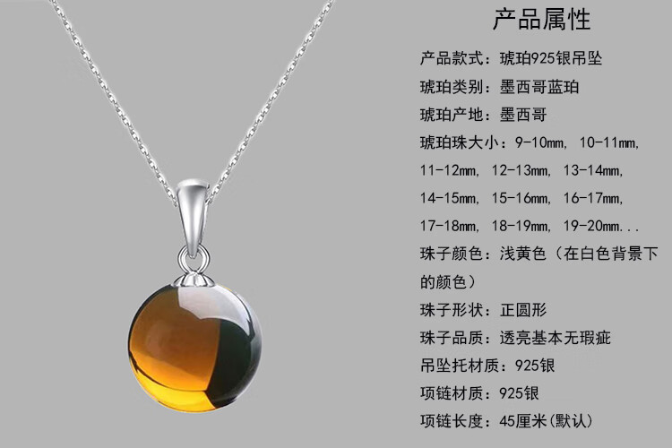 Drops of water form beads. Amber pendant. Purified water blue amber round beads. 925 silver pendant. Clean and no black spots. Mexican blue amber gift for girlfriend. 12.0-13.0mm blue amber + 925 silver pendant holder.