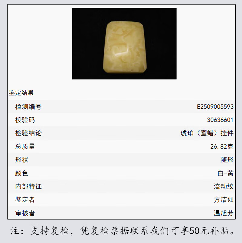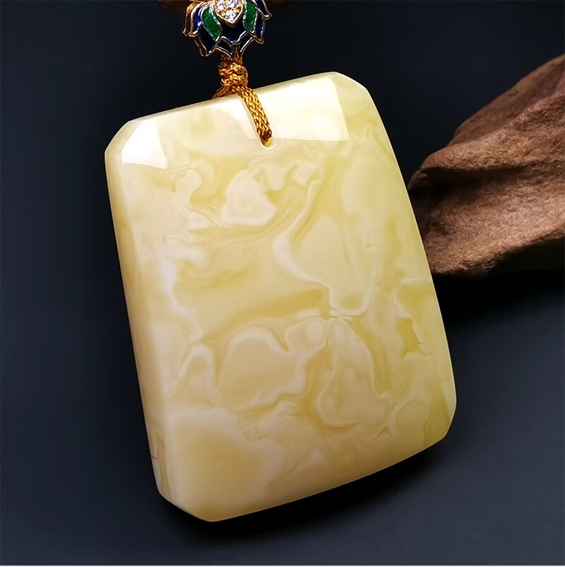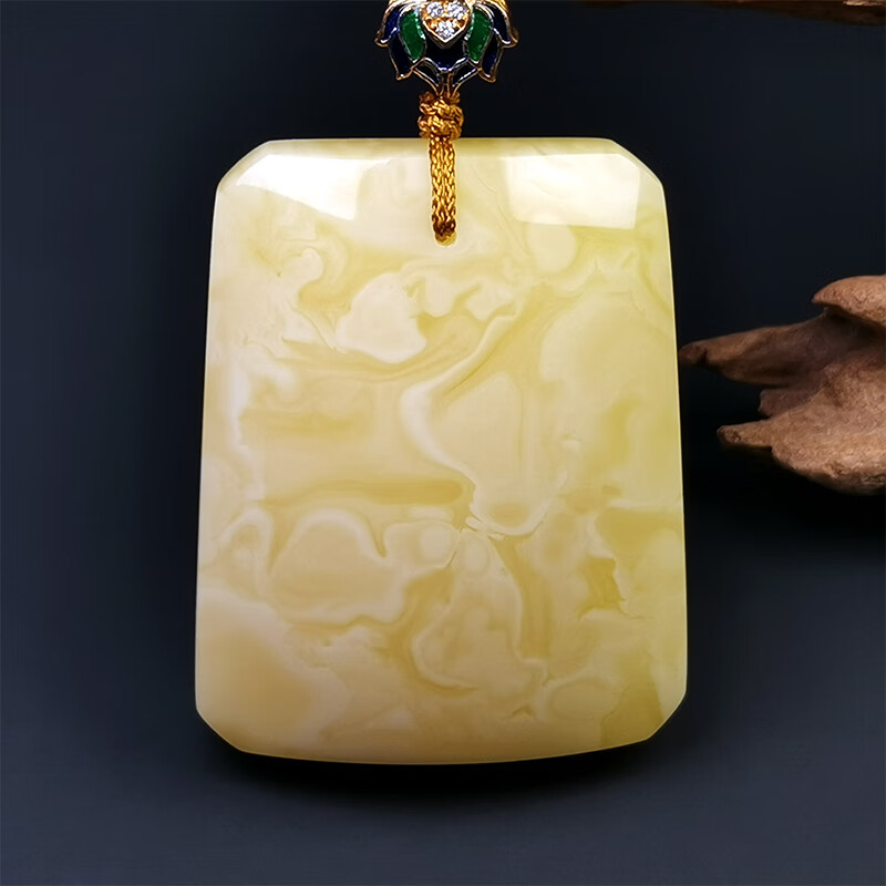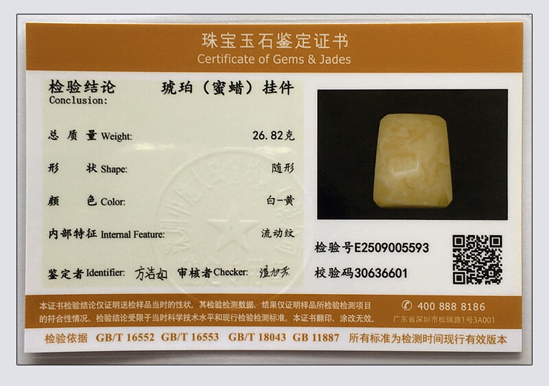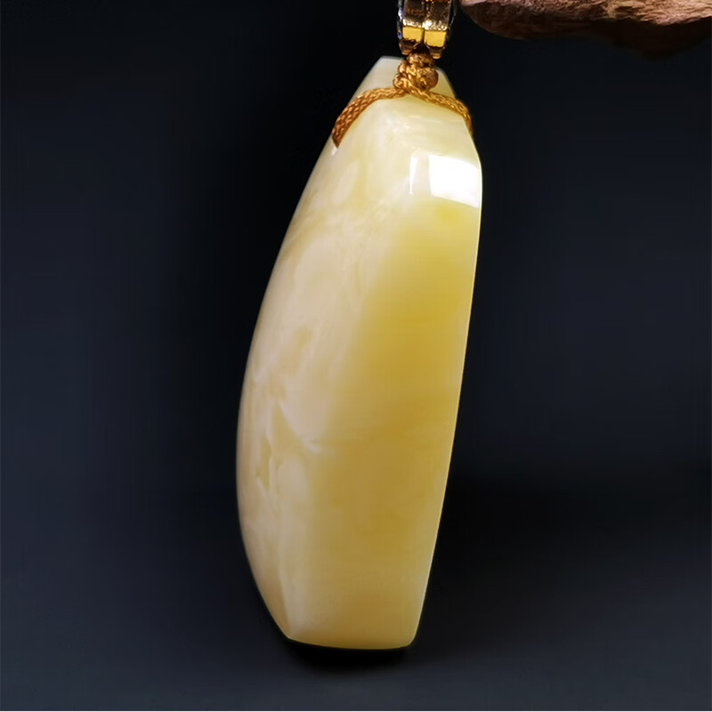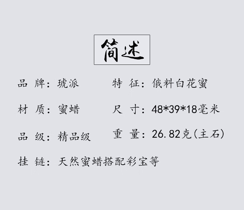 Hupai, one thing, one picture, one certificate, natural beeswax pendant, male, white wax, white flower wax, flawless pendant, 26.82g, 48*39*18mm