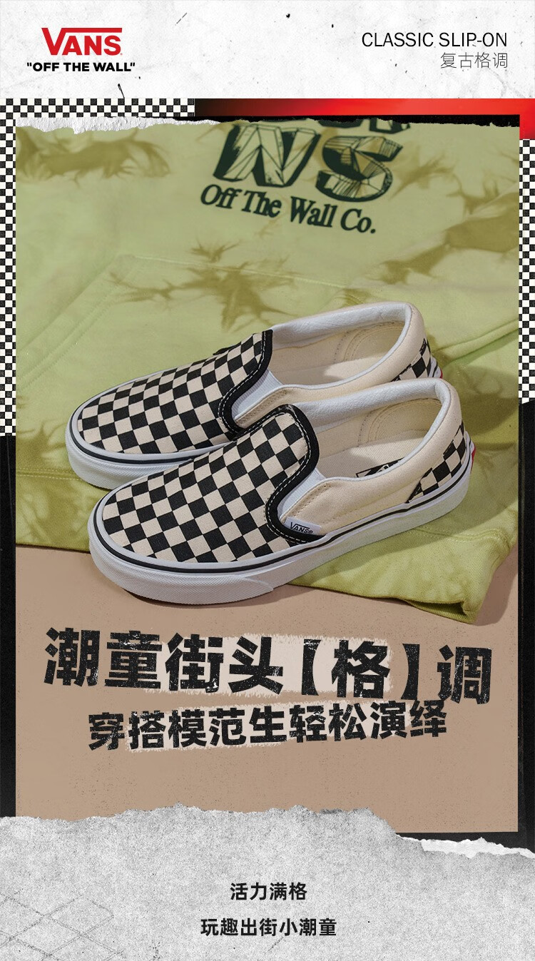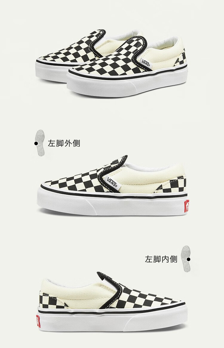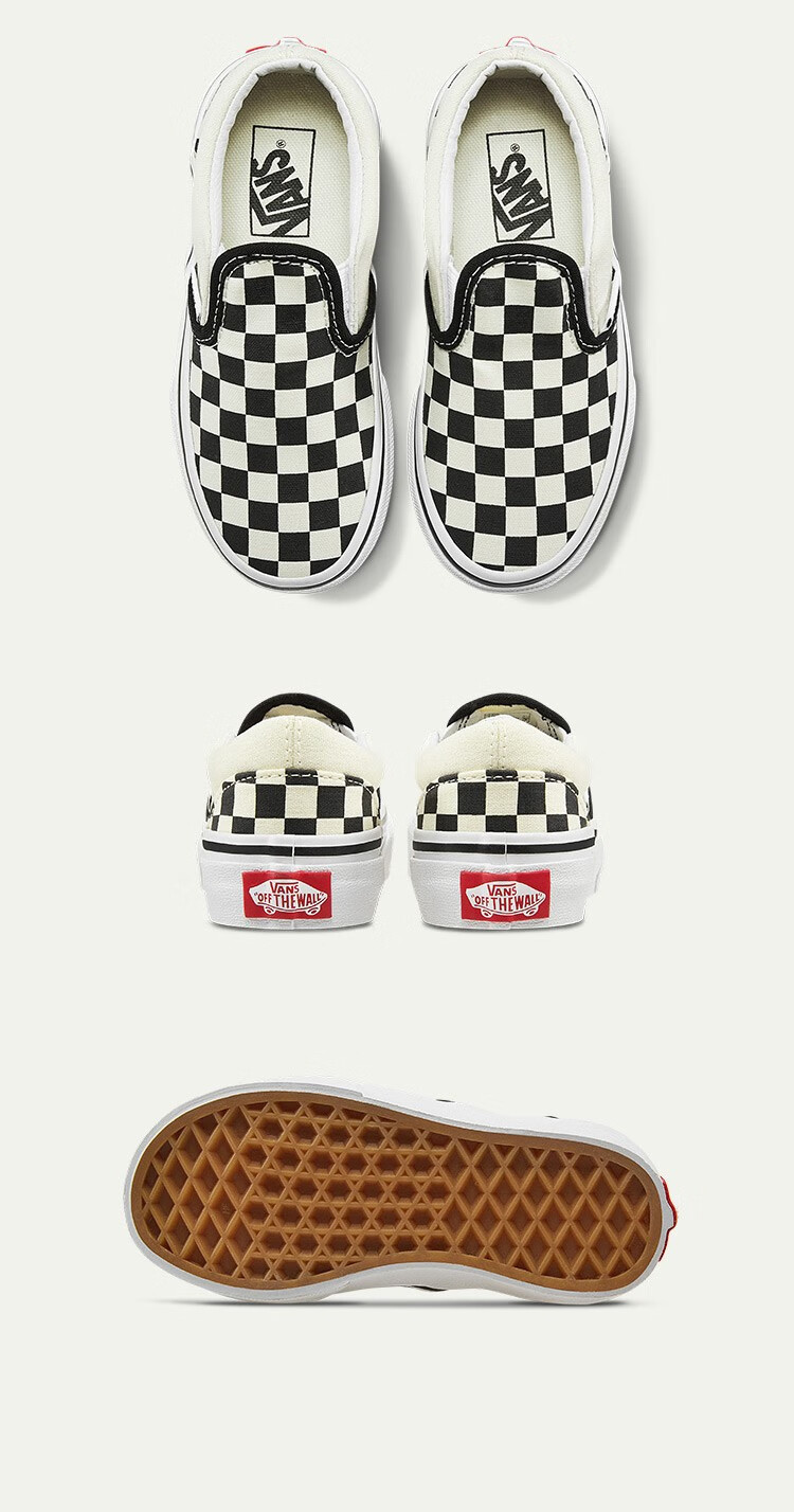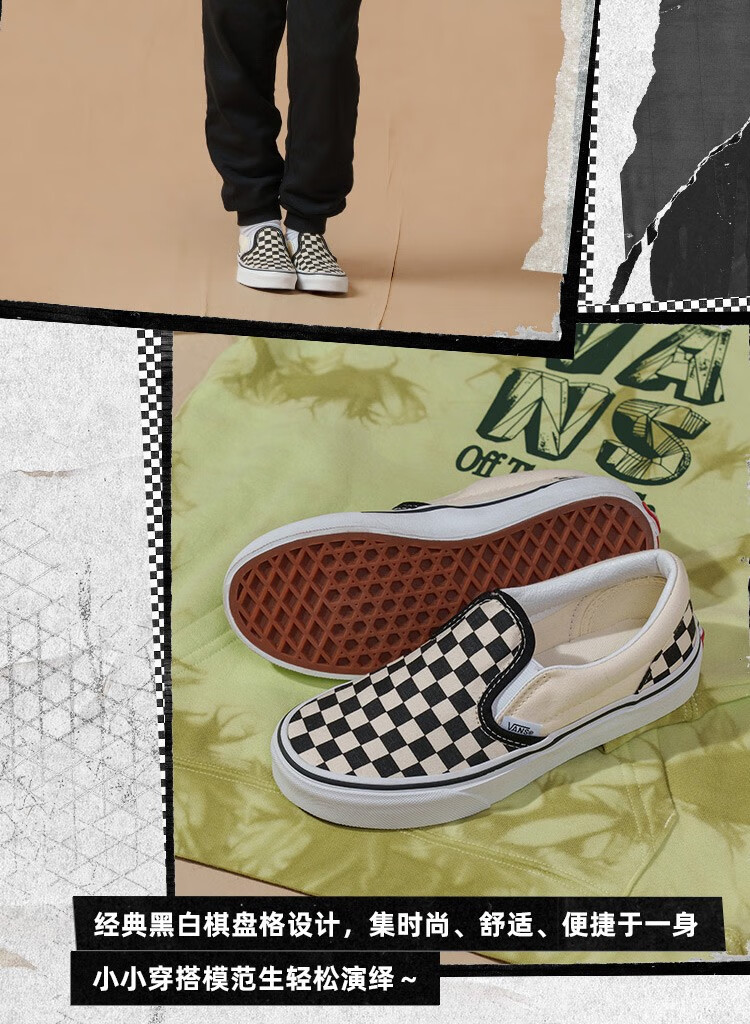 VANS Vans Children's Shoes Official Slip-On Checkerboard Parent-Child Comfortable Slip-On Large Children's Canvas Shoes Black and White Checkerboard Size 34 Actual Measured Inner Length 21cm