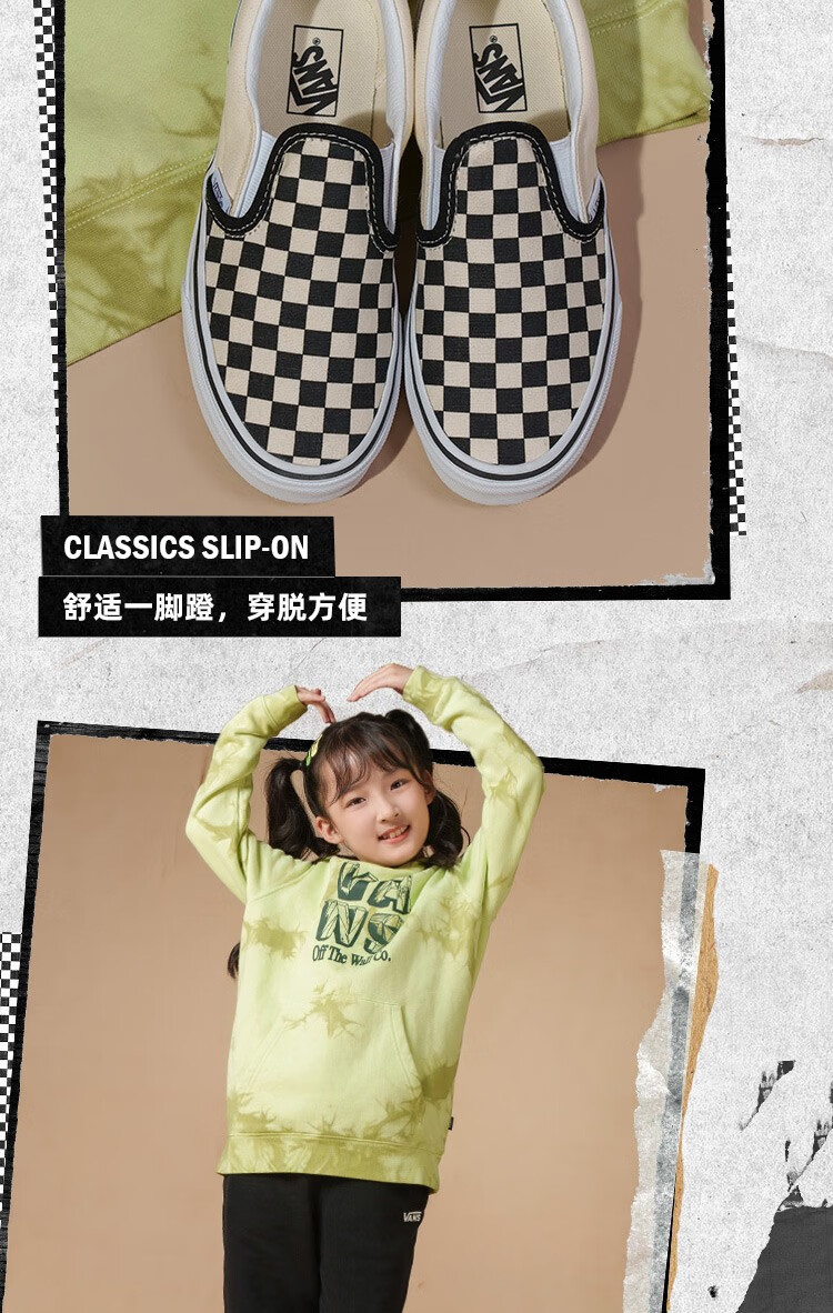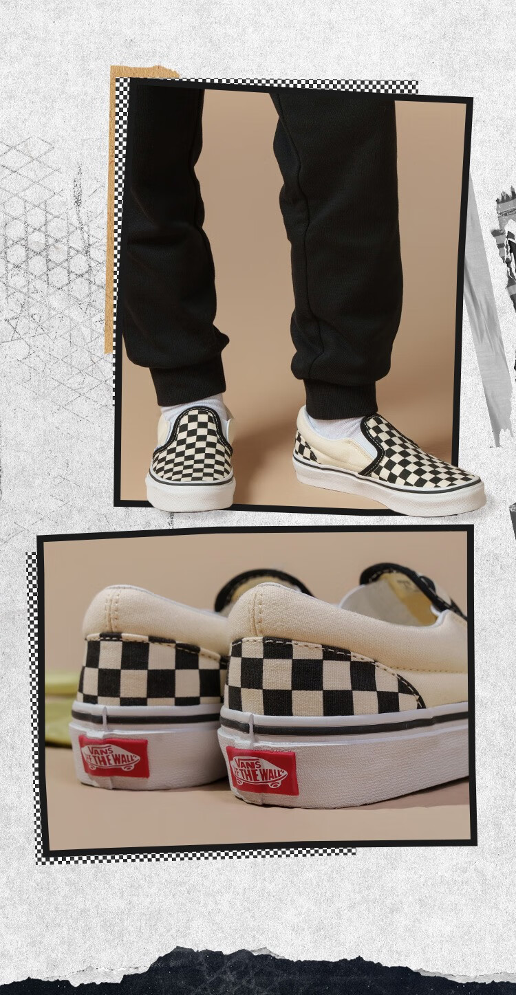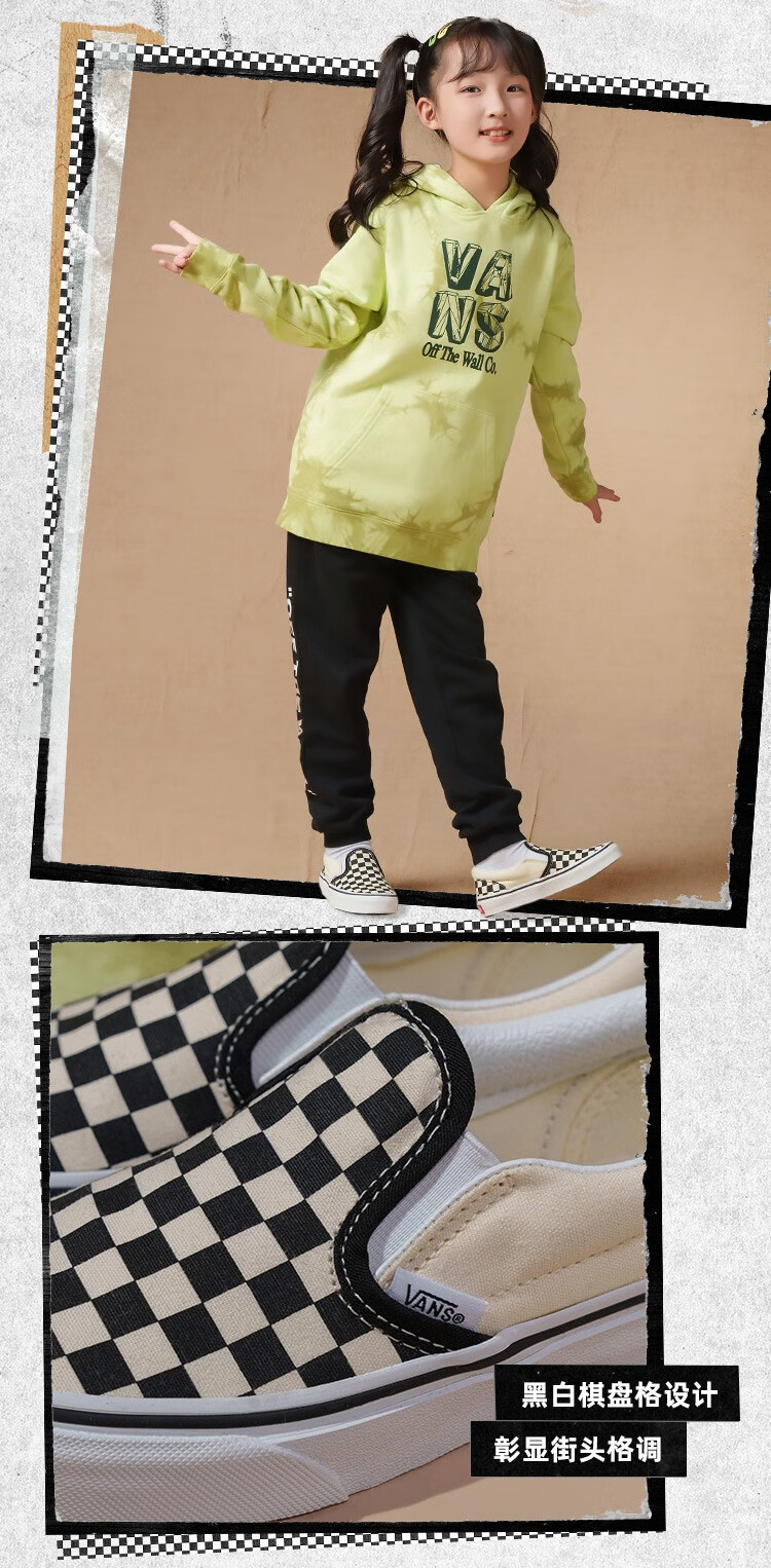 VANS Vans Children's Shoes Official Slip-On Checkerboard Parent-Child Comfortable Slip-On Large Children's Canvas Shoes Black and White Checkerboard Size 34 Actual Measured Inner Length 21cm