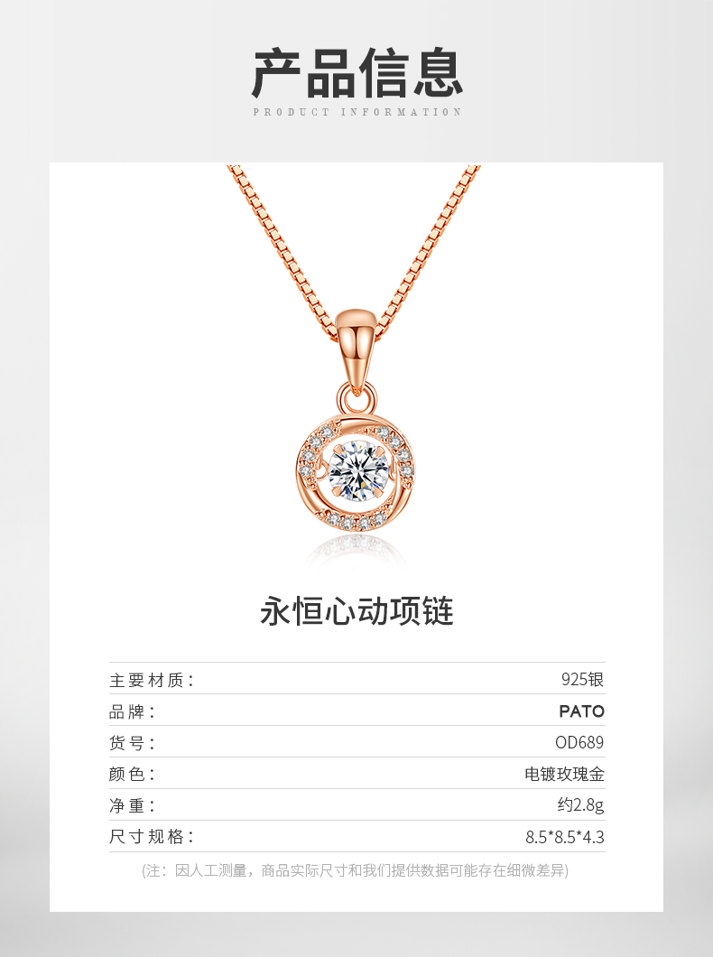 PATO Beating Heart Rose Gold and Silver Necklace for Women 2025 New Year New Year and Christmas Gift for Girlfriend Necklace Qicang Straight Hair/Next Day Delivery