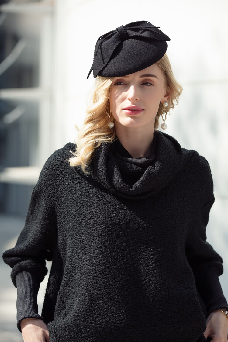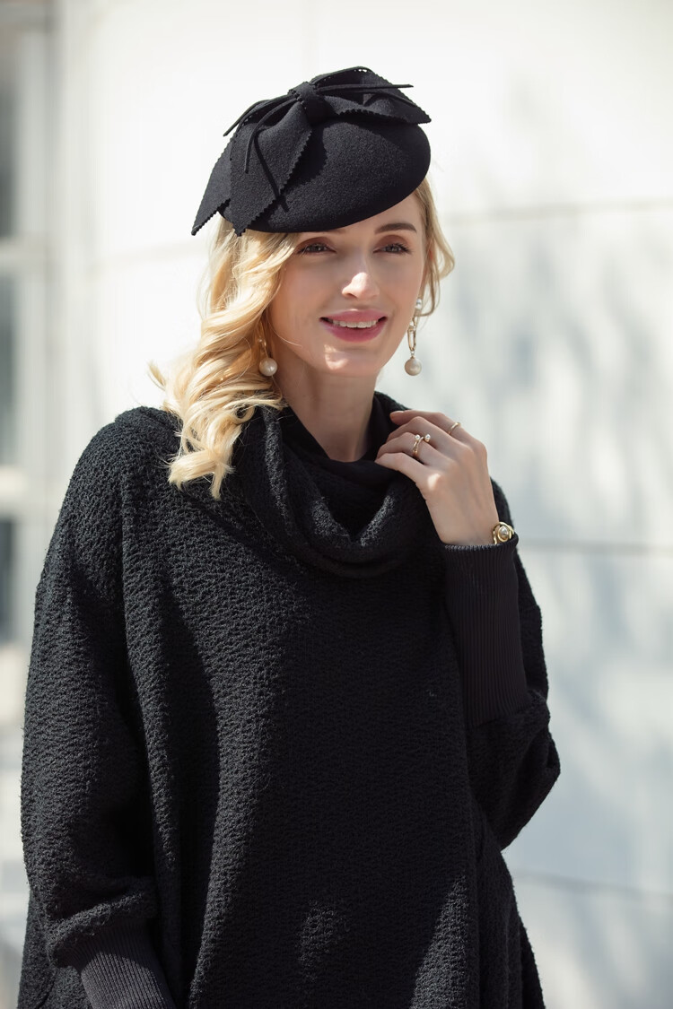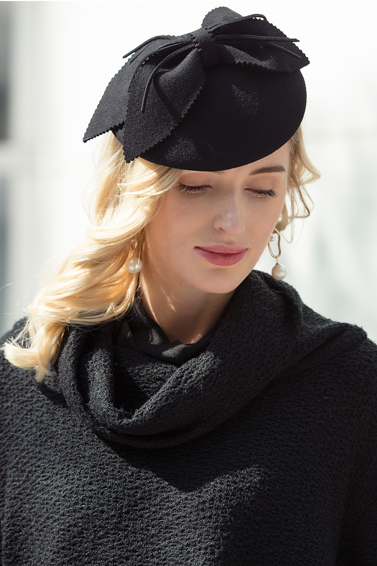EE Winter New Original Design Australian Wool Top Hat Celebrity British Banquet Dress Hat Women Black M (56-58cm)