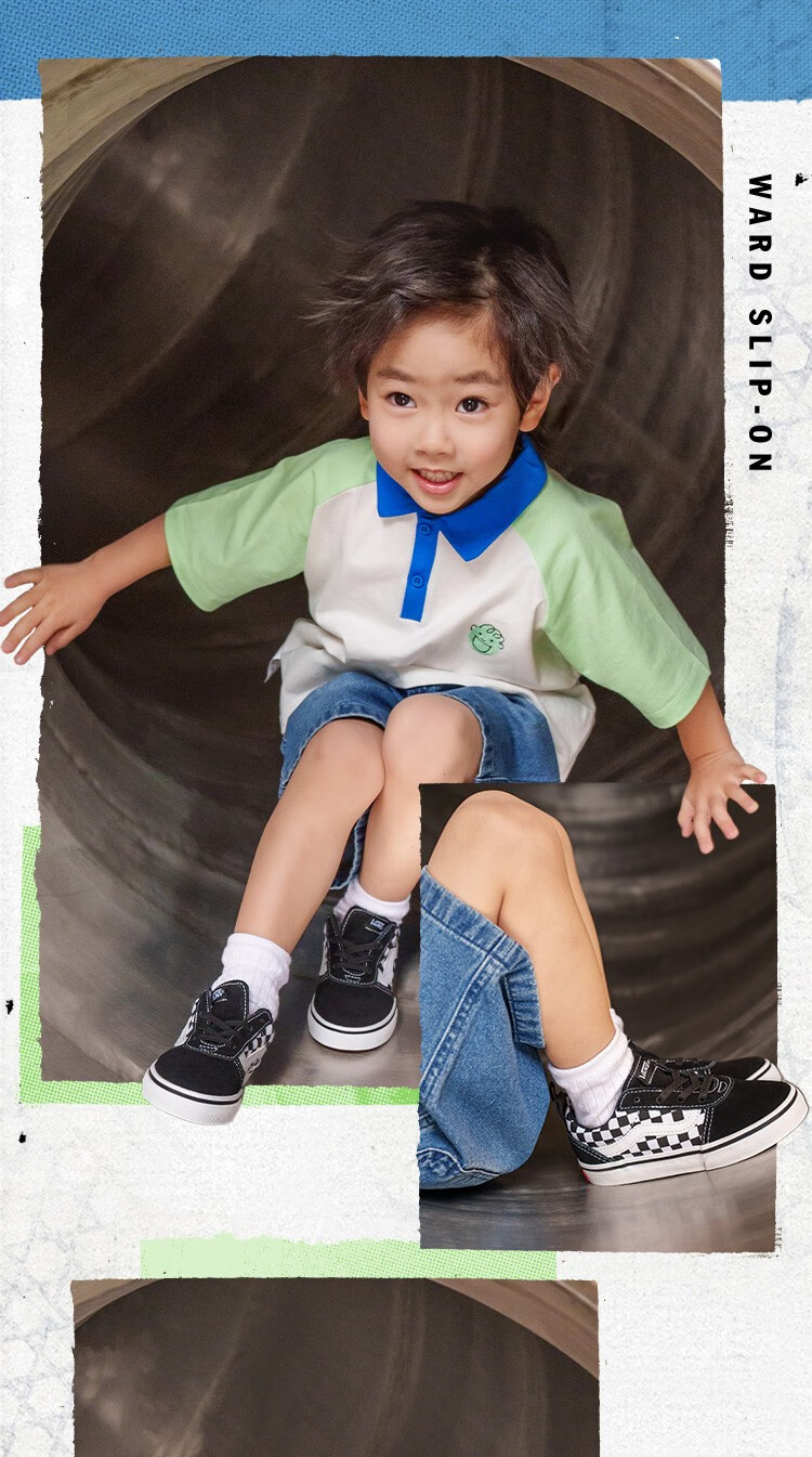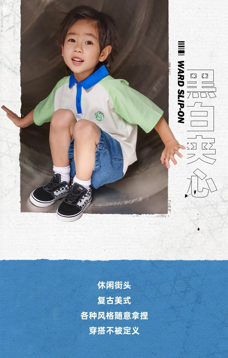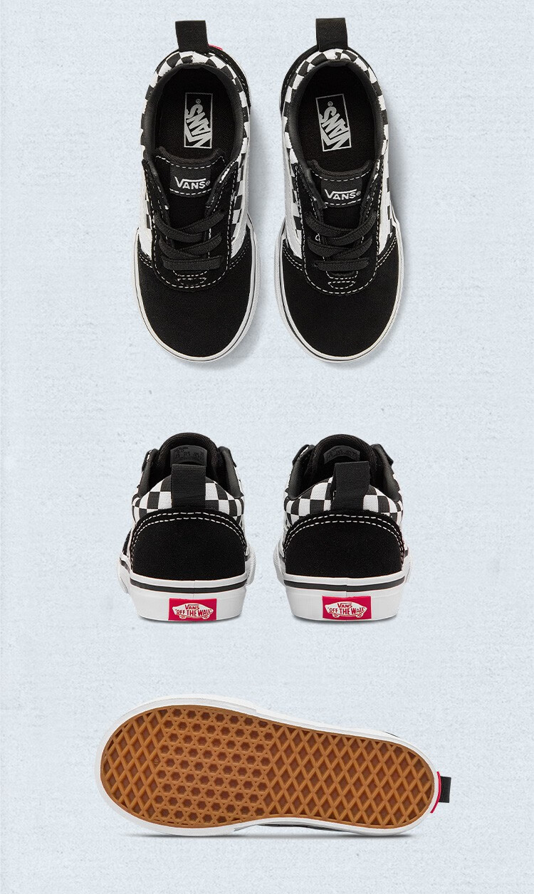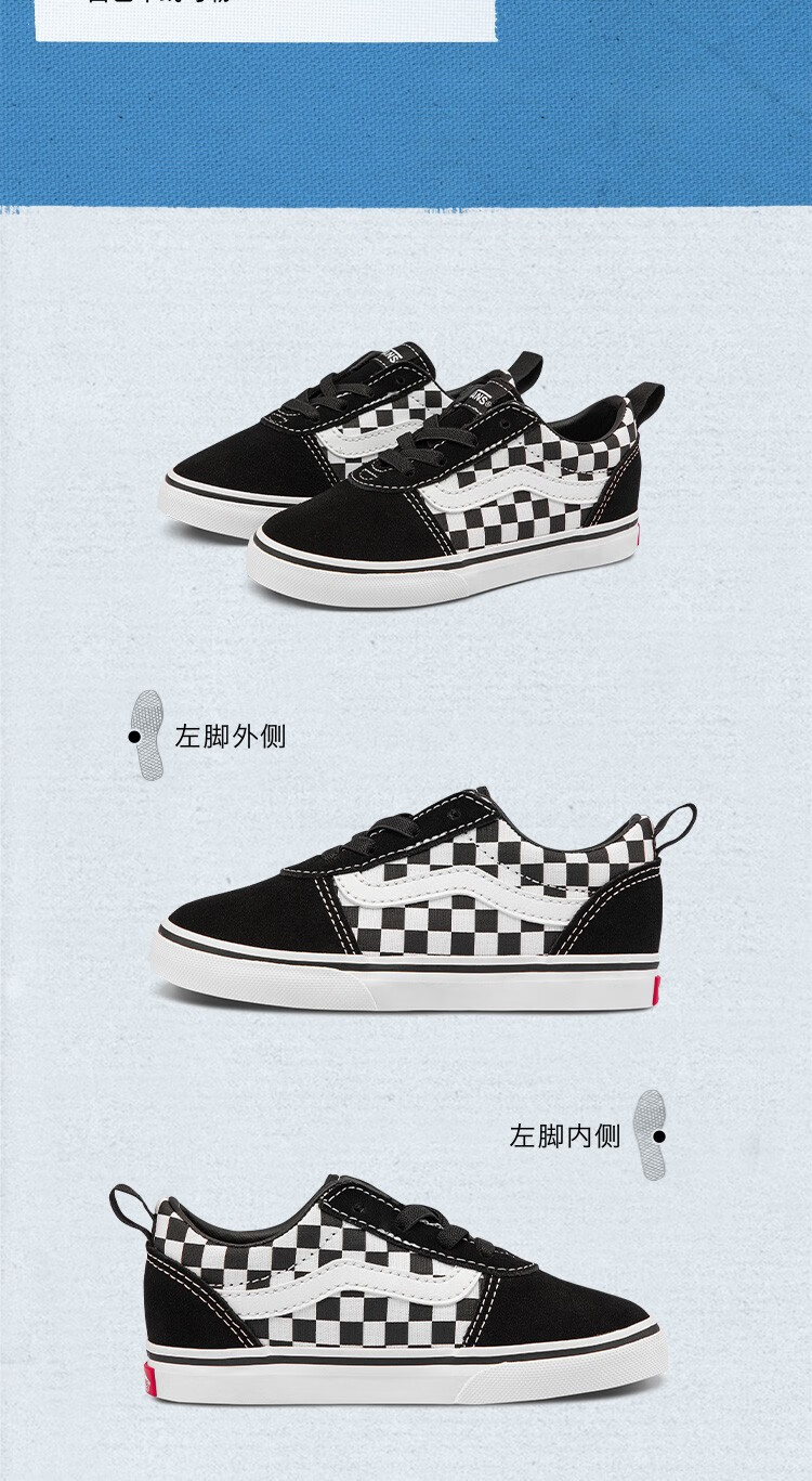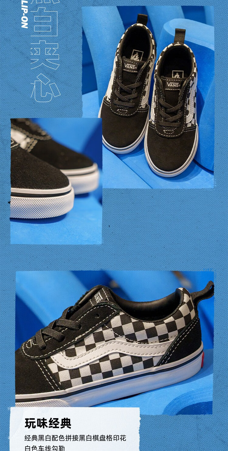 VANS Vans children's shoes official Ward Slip-On checkerboard stitching comfortable one-leg children's canvas shoes black and white checkerboard 26.5 measured inner length 17cm