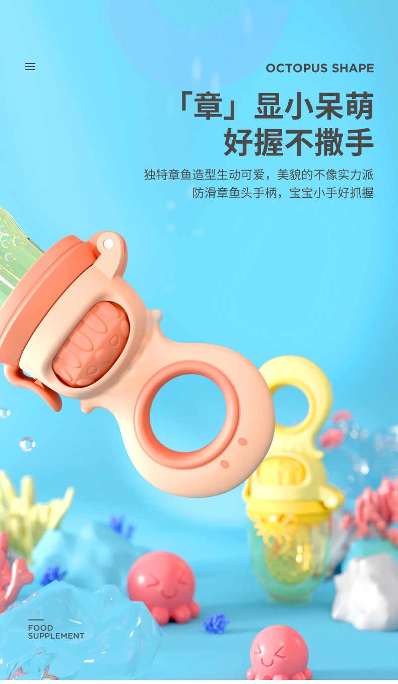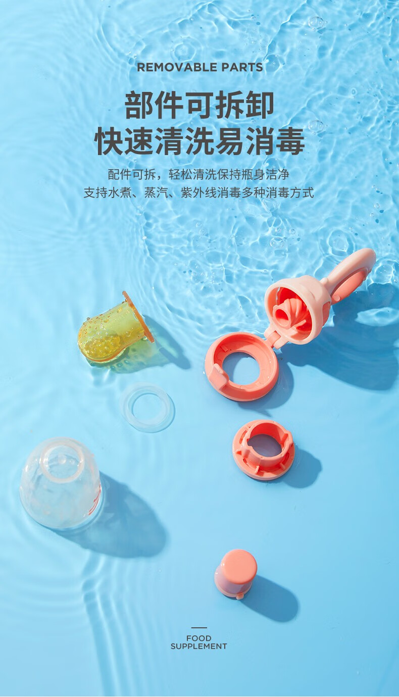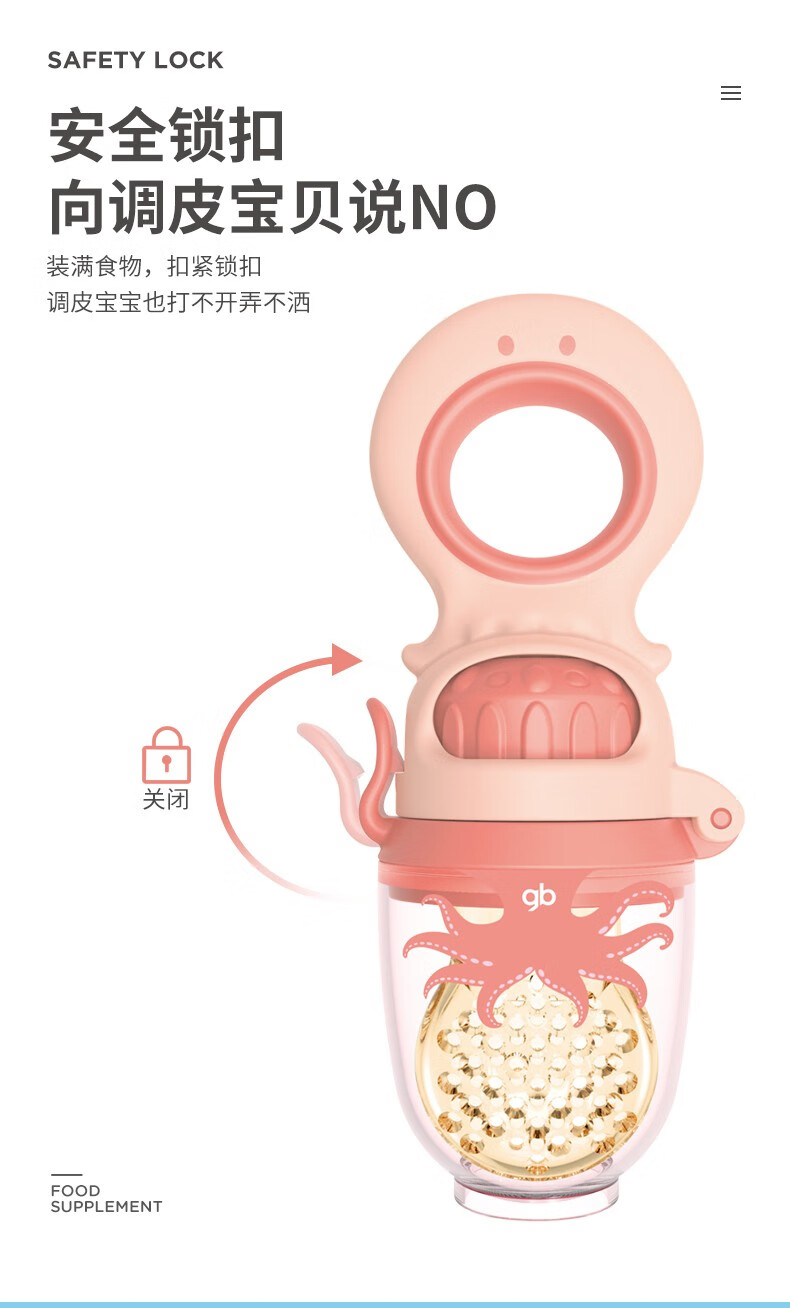 Goodbaby (gb) pushable bite bag baby pacifier bite play baby fruit food supplement juice fruit and vegetable teething beige (with storage box + anti-lost chain)