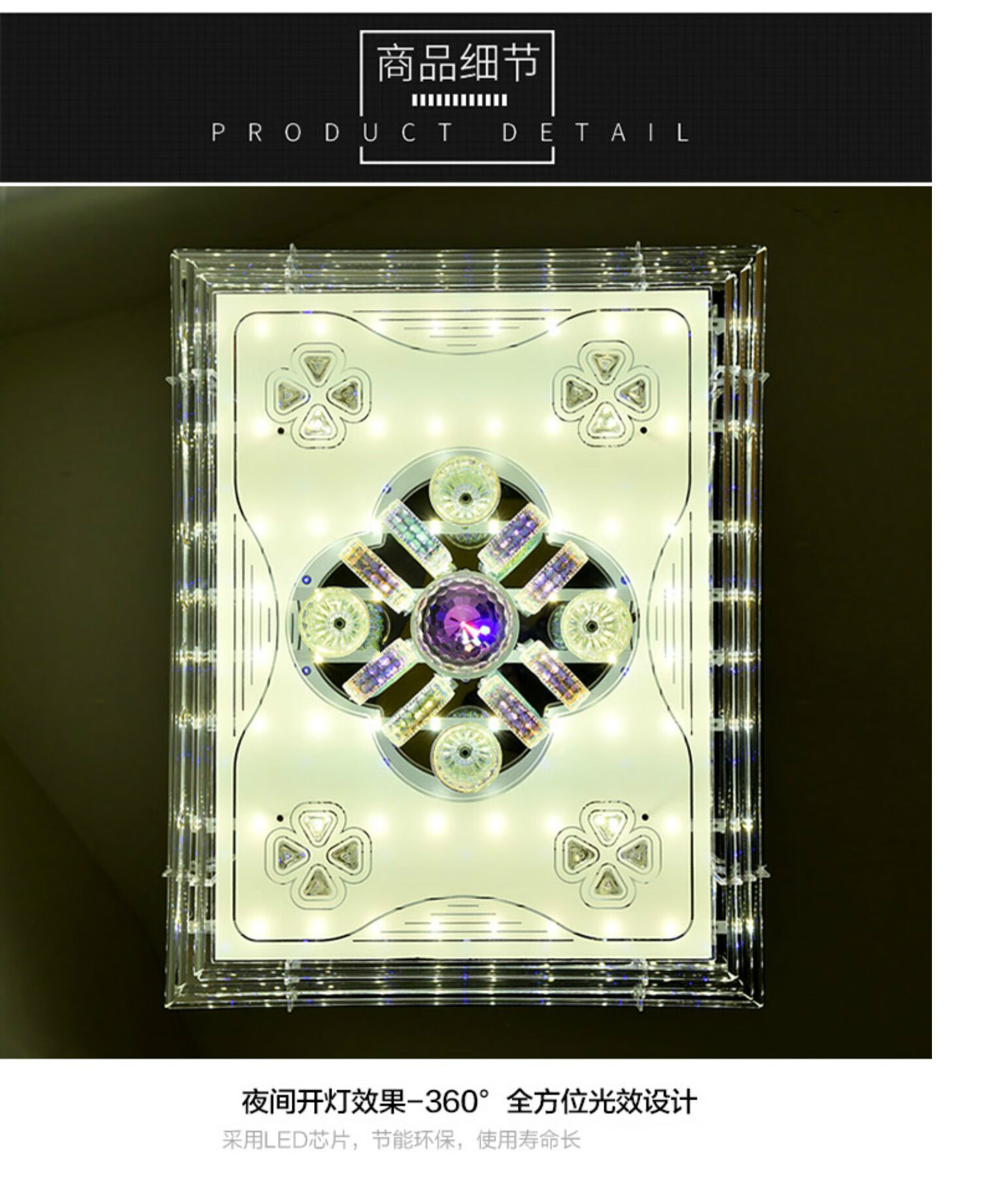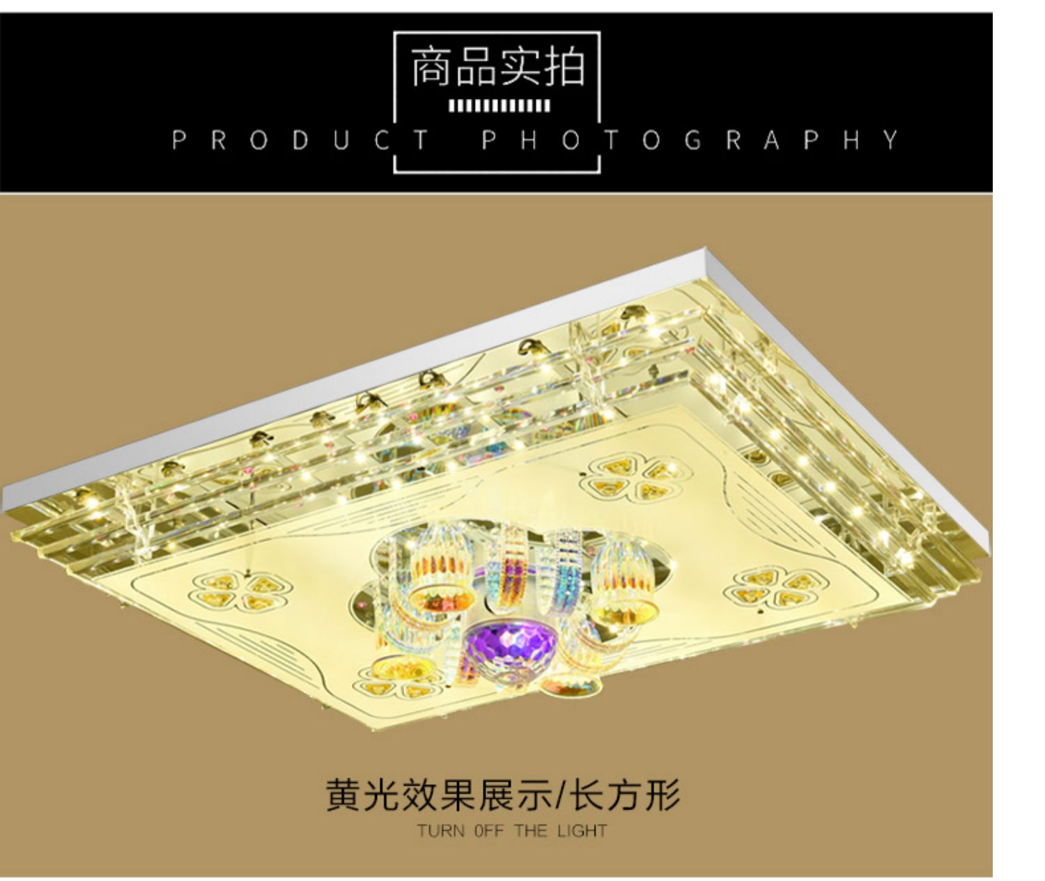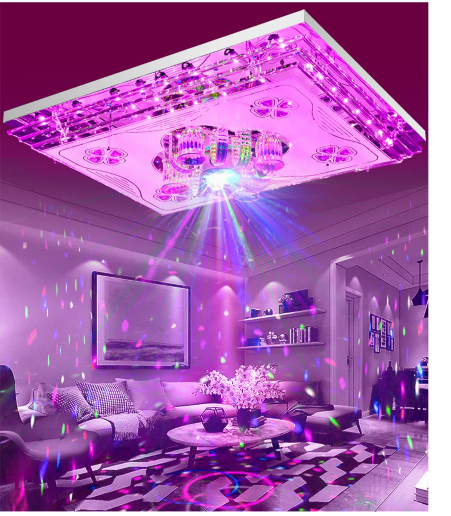 Ceiling lamp with Bluetooth speaker, living room audio headlight, living room lamp, rectangular Bluetooth music lamp, crystal lamp, new bedroom LED colorful restaurant voice voice control lamp simple remote control 60*40CM-seven-color infinite dimming-remote control colorful
