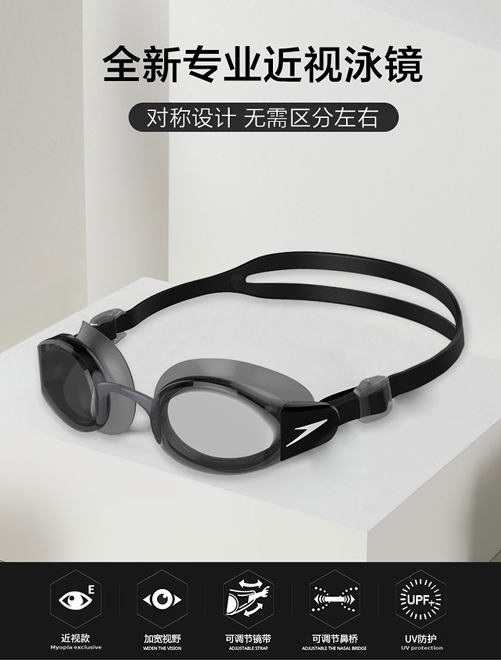 Speedo's new waterproof and anti-fog high-definition myopia swimming goggles for men and women with different degrees for left and right eyes, black myopia (supports different degrees for left and right eyes), different degrees for both eyes (please note)