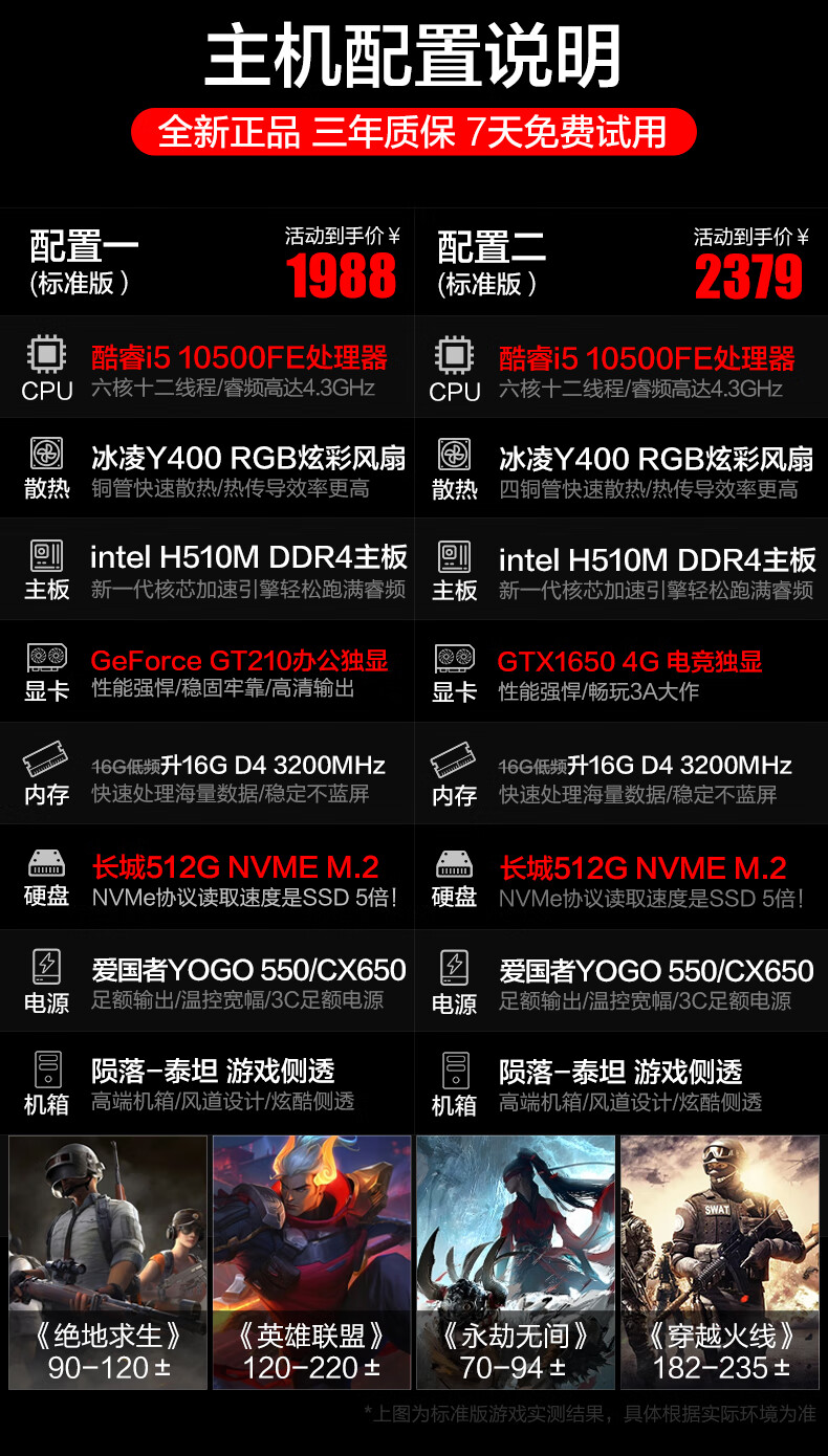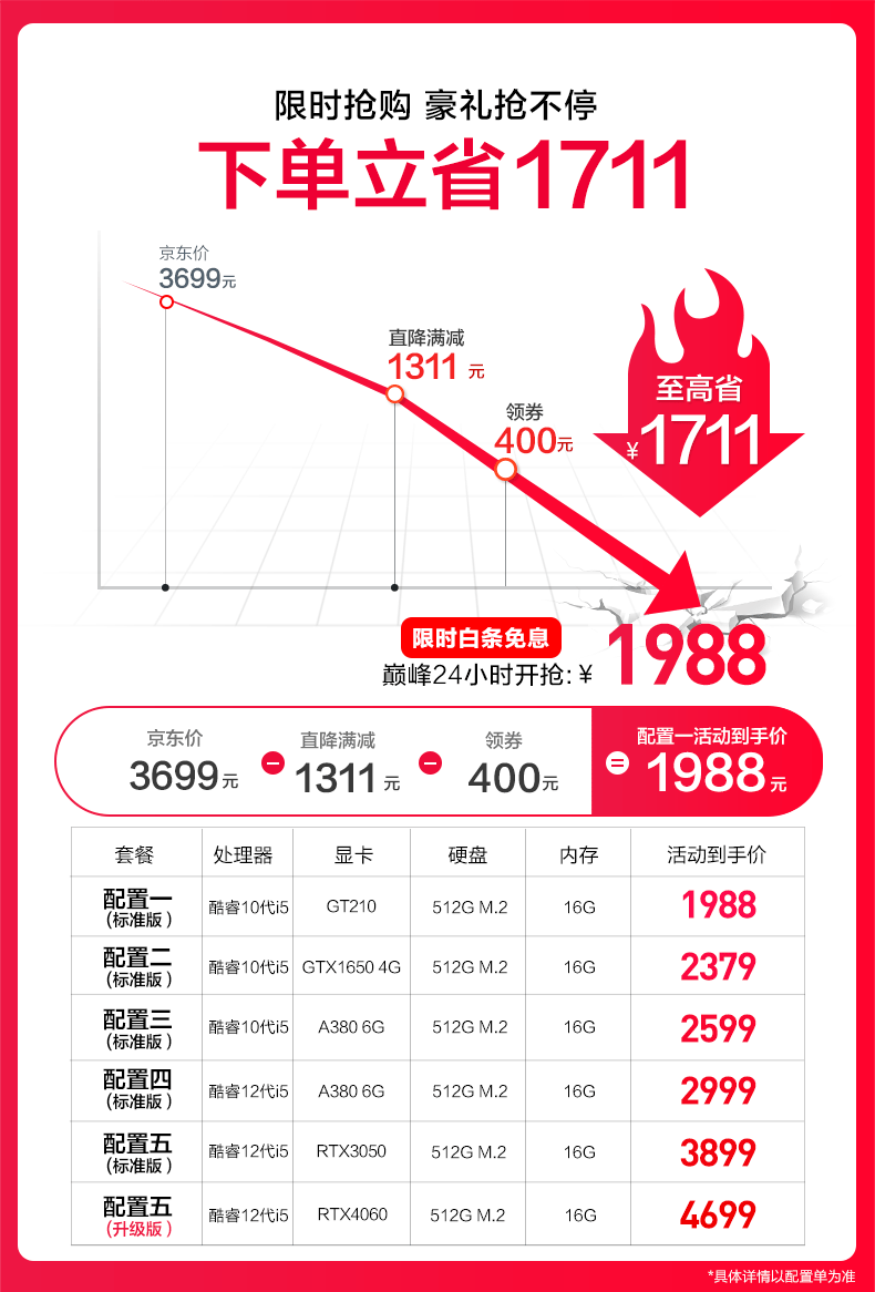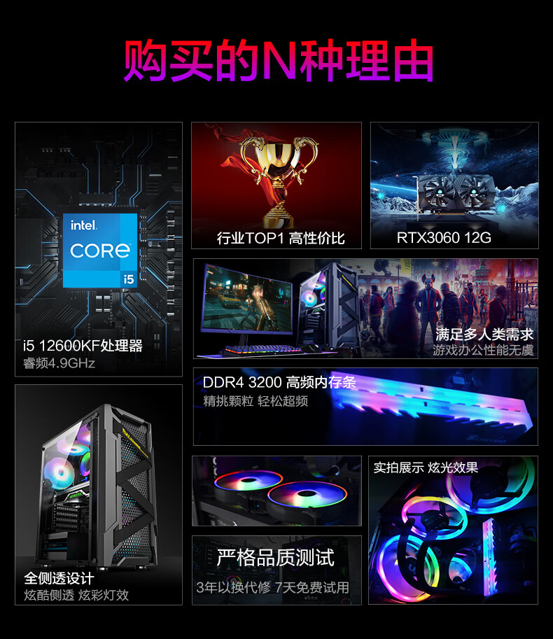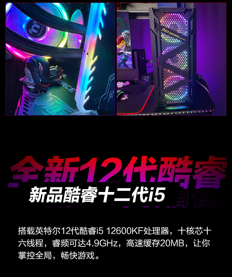 Shuoyang Core 12th generation i5 12400F/GTX1650/RTX3050/RTX3060 independent graphics gaming desktop enterprise office e-sports assembly computer host DIY assembly machine three i5 10500FE丨A380 6G standard