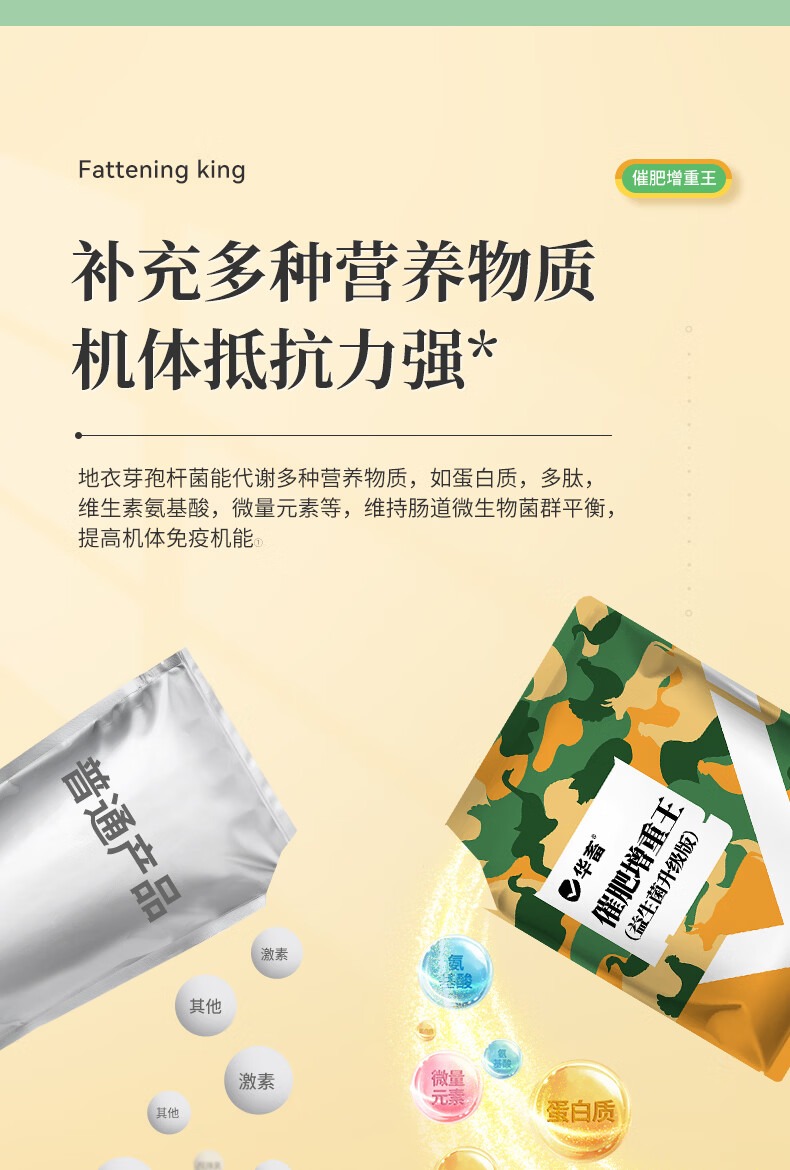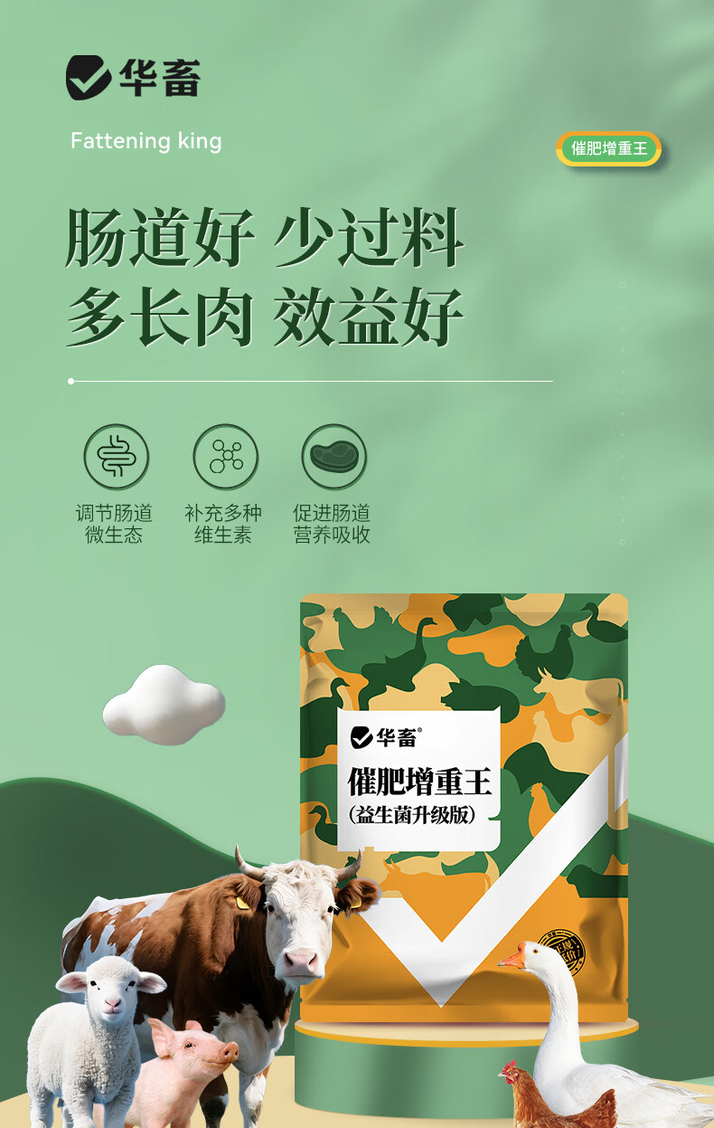 Huazhu Veterinary Fattening and Weight Gaining King Promoting Growth Fatty Feed Additive for Chickens, Ducks, Goose, Cattle and Sheep Premix for Poultry and Pigs 20 bags, as low as 9.9/bag, whole box at low price