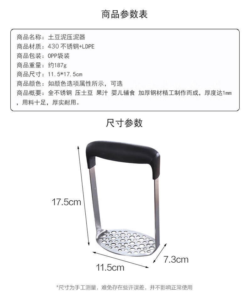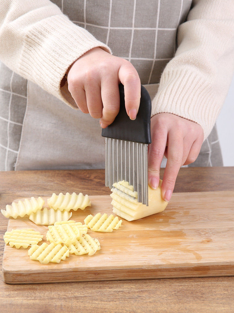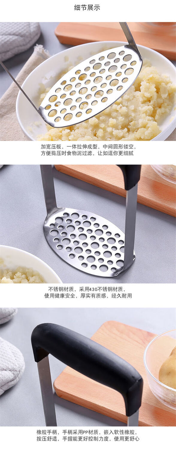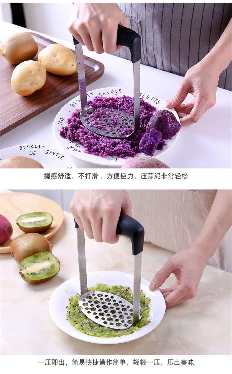 Mashed potato mold masher stainless steel large masher for sweet potato yam baby food masher large potato knife wave cutting small handle potato press (7.9cm)