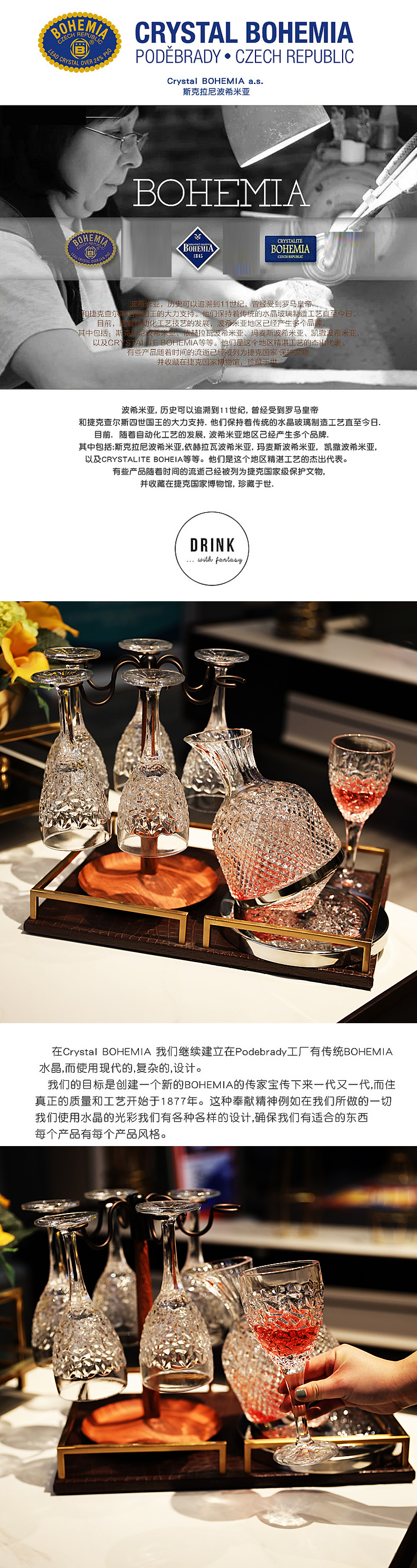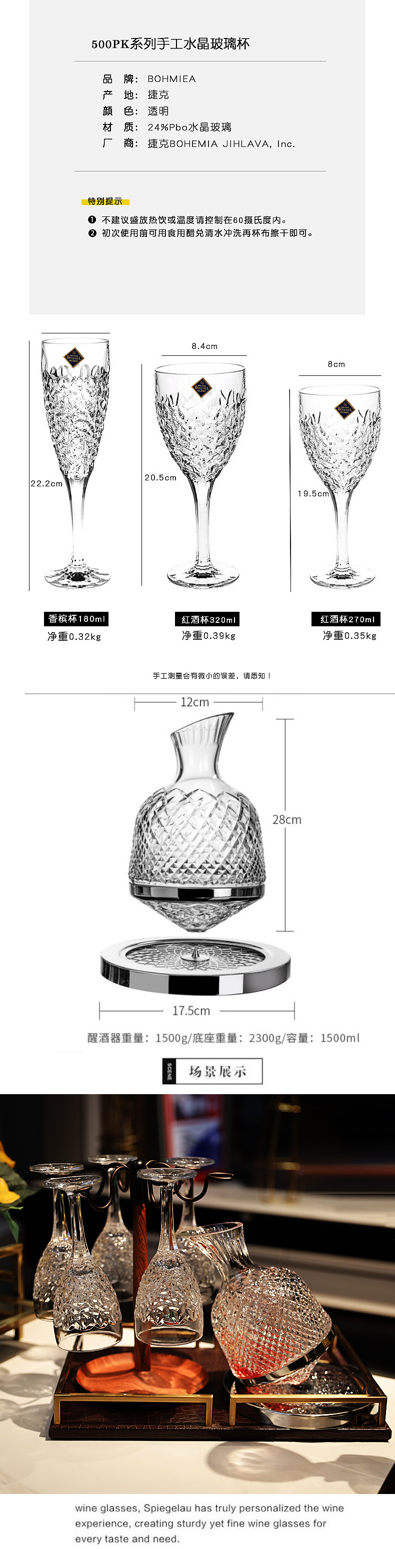 BOHEMIA Czech original imported crystal glass red wine glass white wine glass goblet wineware decanter set decanter + cup holder + 6 Czech red wine glasses 320ml