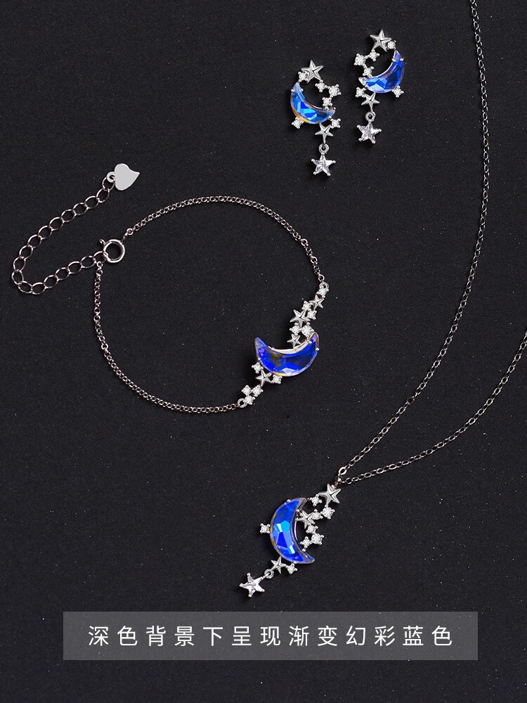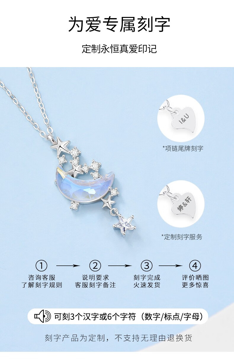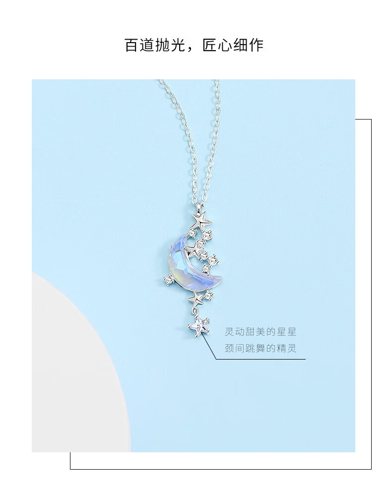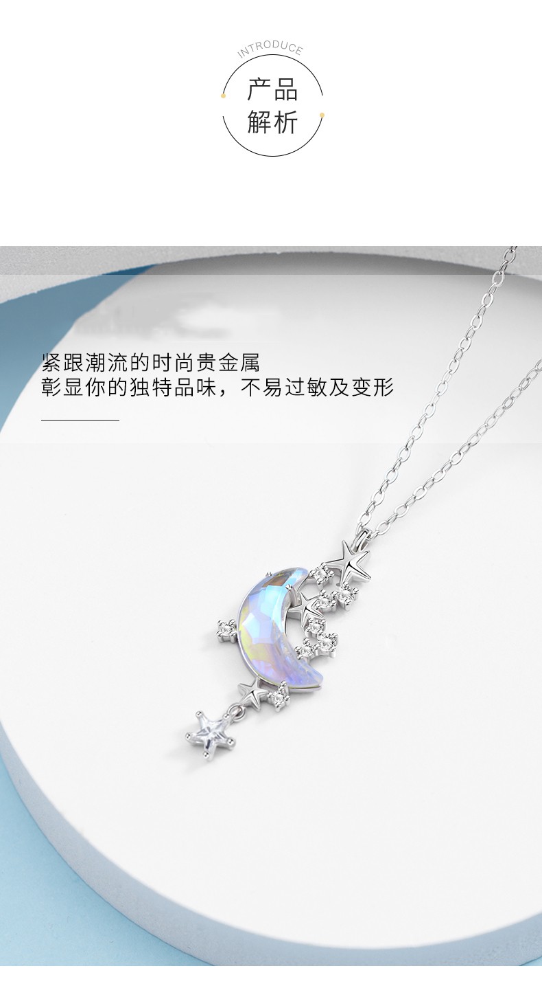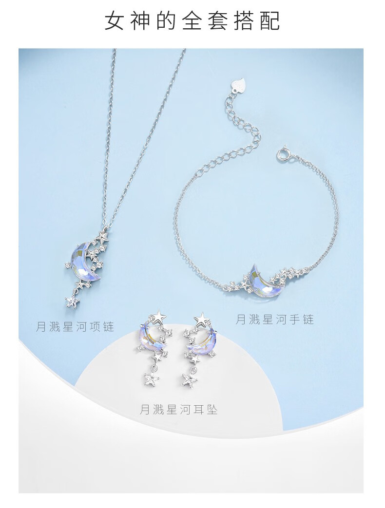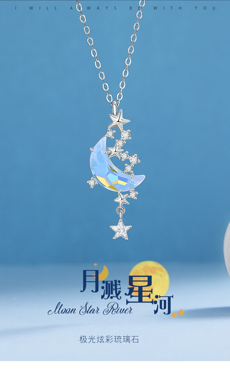 MZMZ Moon Splashing Galaxy PT950 Platinum Necklace for Women Platinum Crystal Glazed Stone Birthday Anniversary Gift for Girlfriend Moon Splashing Galaxy Necklace Brand Gift Box