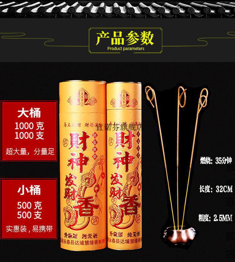 Yinuofen spot God of Wealth incense for household sandalwood smokeless incense Buddhist incense natural smokeless Guanyin incense pure burning incense indoor large barrel of about 1000 God of Wealth incense upgraded smokeless money incense