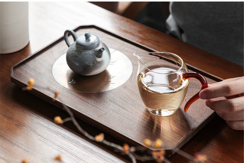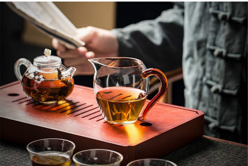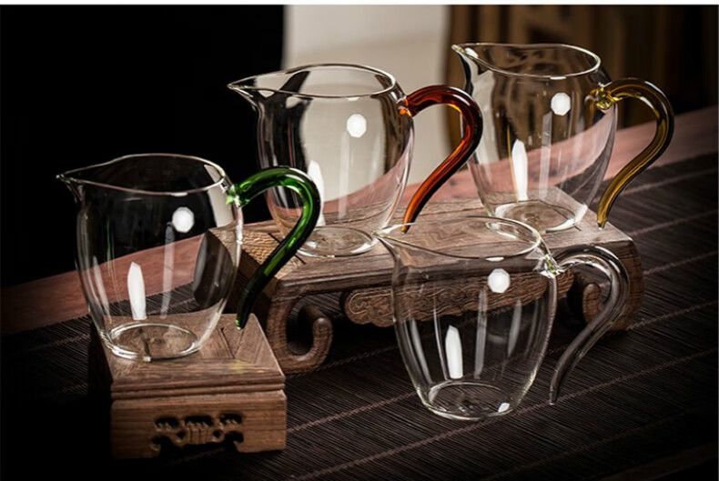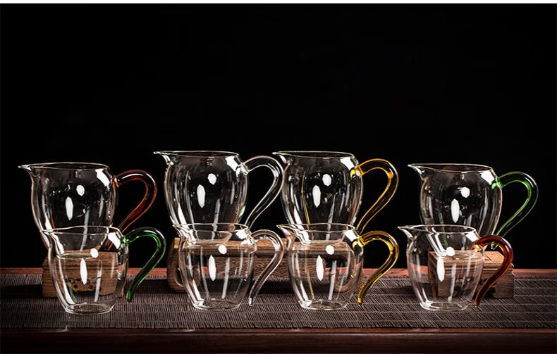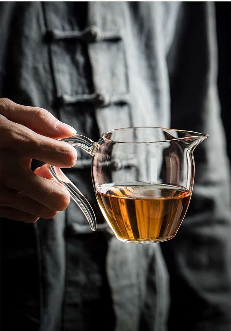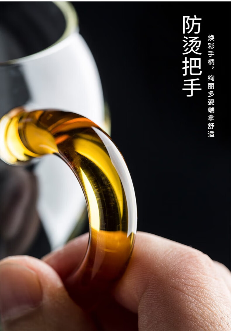 Rongshantang He ware glass fair cup tea drain three-piece set heat-resistant thickened tea divider tea sea tea cup Kungfu tea set accessories He ware glass crystal color tea cup tea sea - amber large size