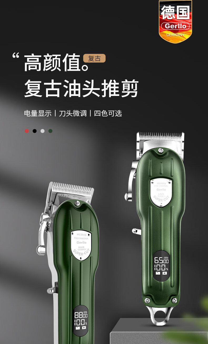Gerllo German shaving hair clipper electric clipper hair scissors bald head shaver black