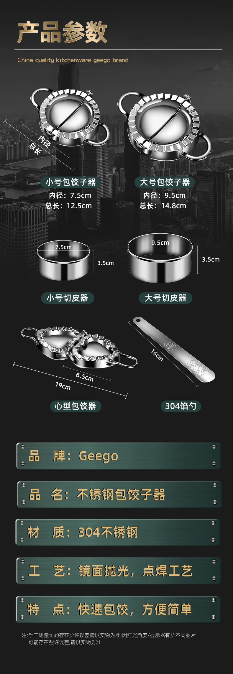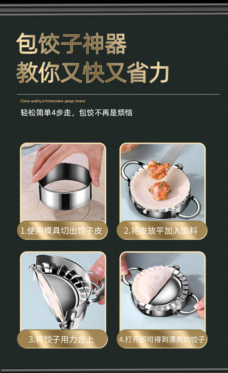 GEEGO dumpling making artifact 304 stainless steel dumpling wrapper machine dumpling mold pressure dumpling tool household dumpling making machine small size 1 piece (suitable for 7.5cm diameter dumpling wrapper)