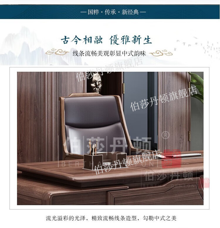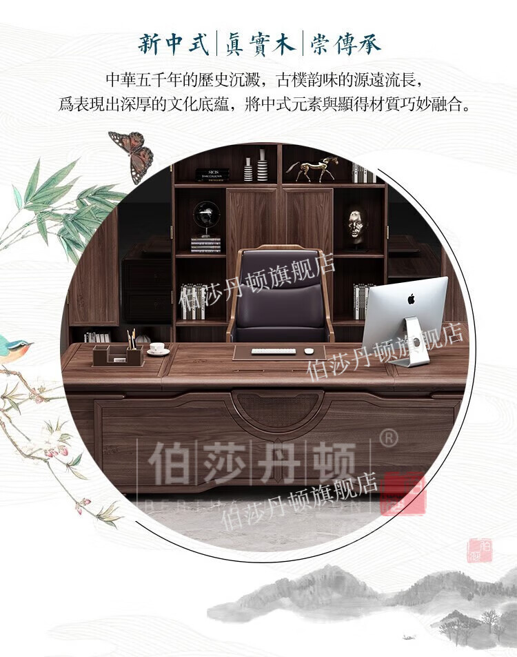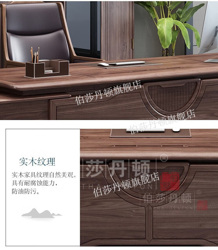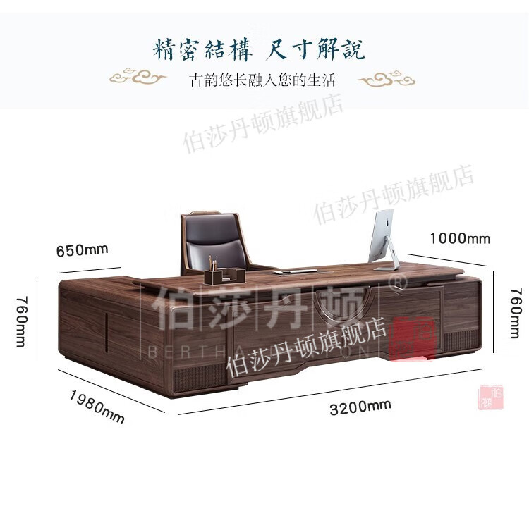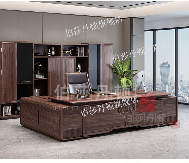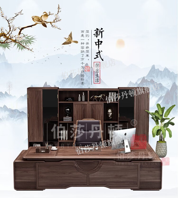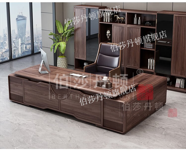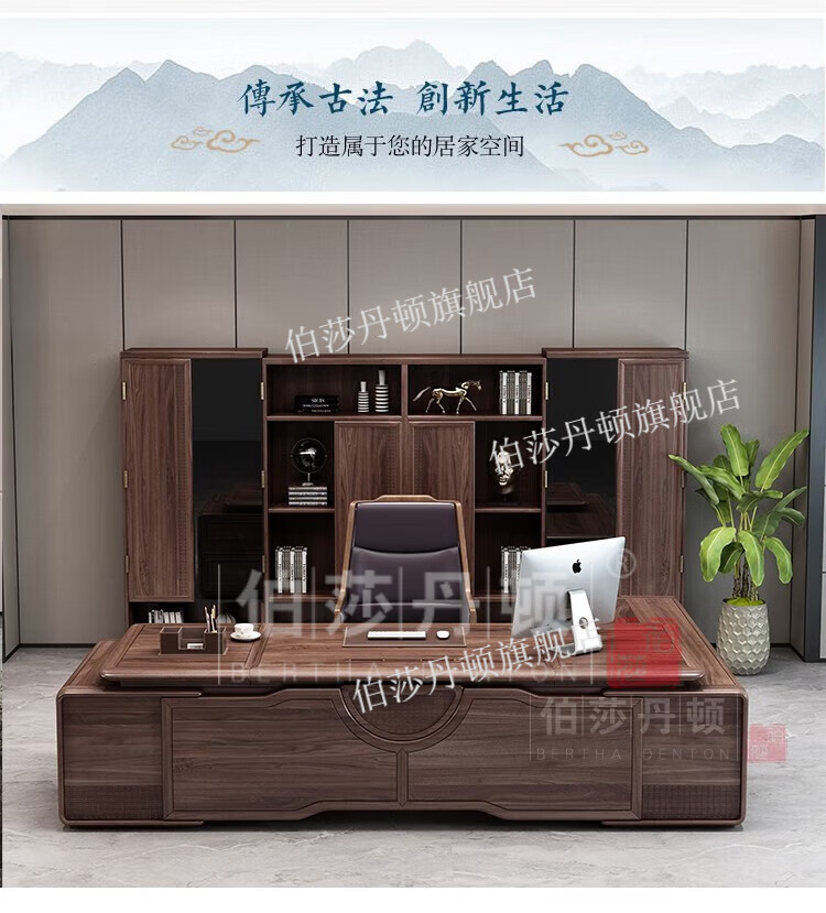 BERTHA DENTON New Chinese style boss table solid wood office desk and chair combination simple and elegant executive desk chairman's office 2.2m boss table