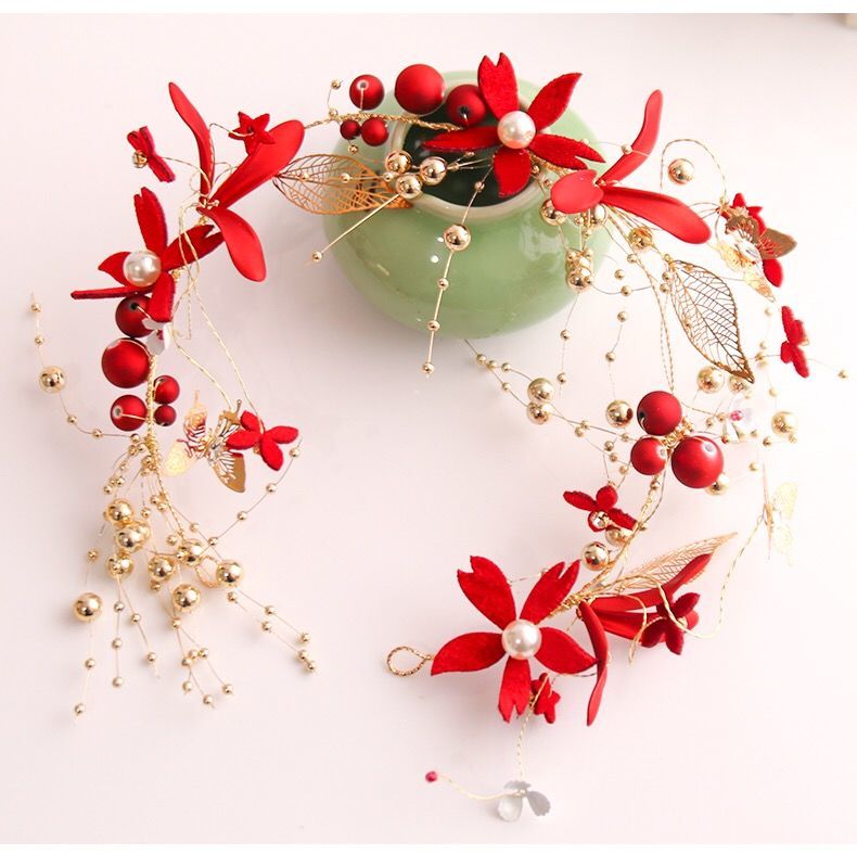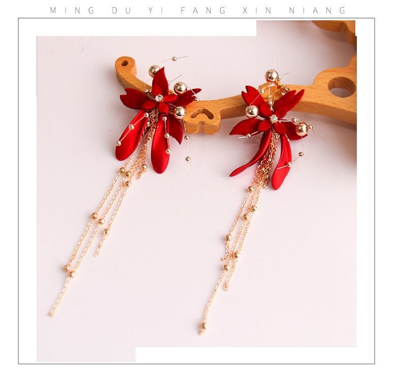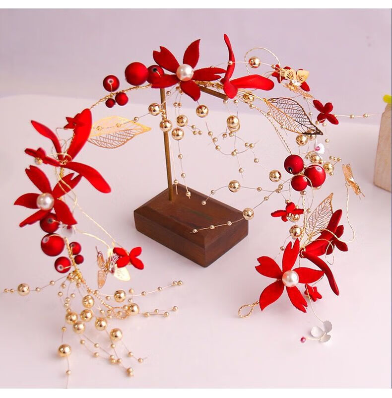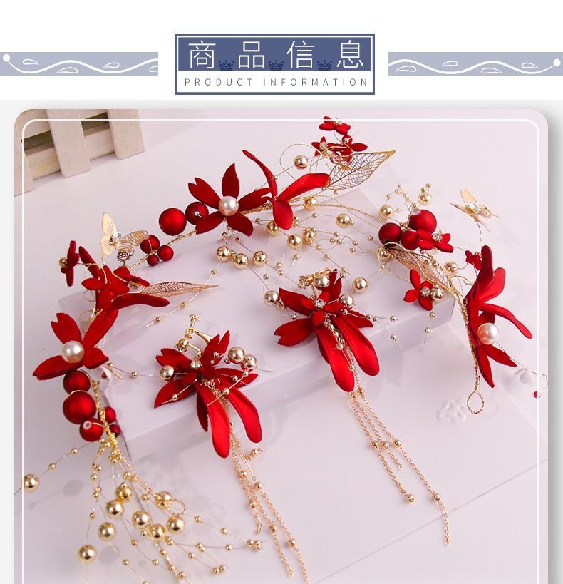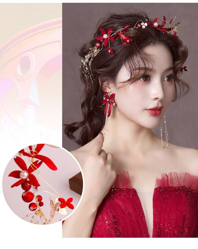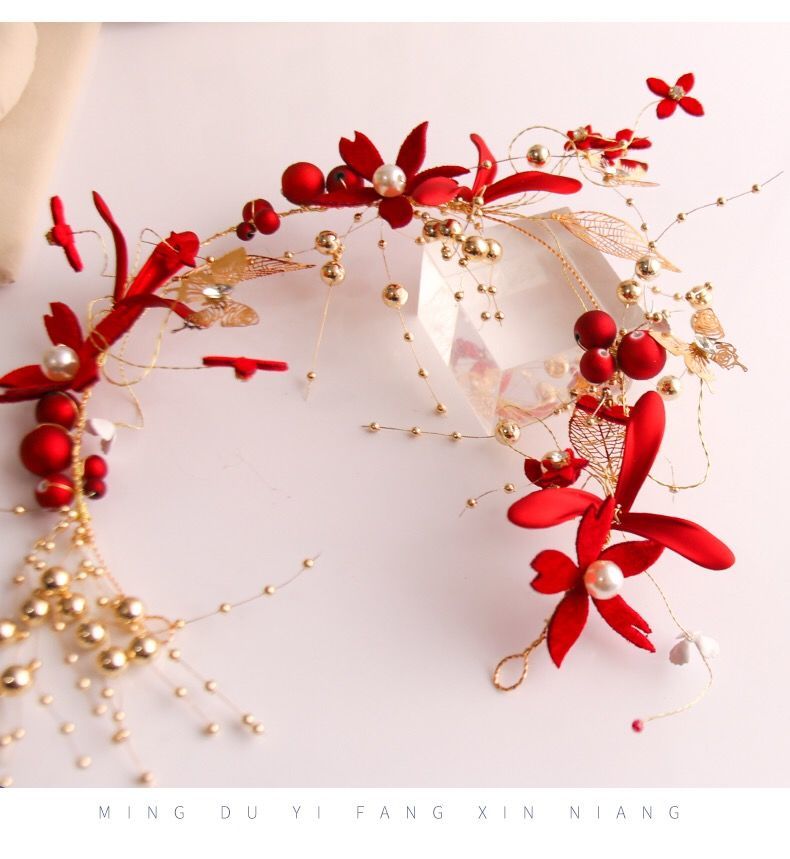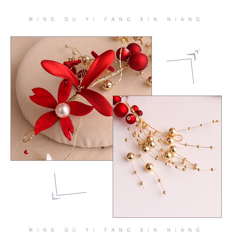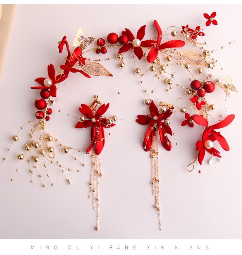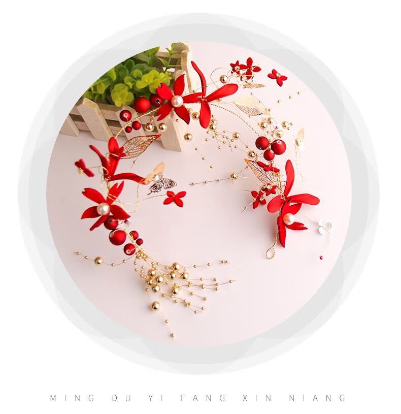MiU Se bridal tiara, wedding red wedding dress, hair accessories, Chinese style super fairy toast suit, forest dress accessories, side clip + earrings (ear clip)