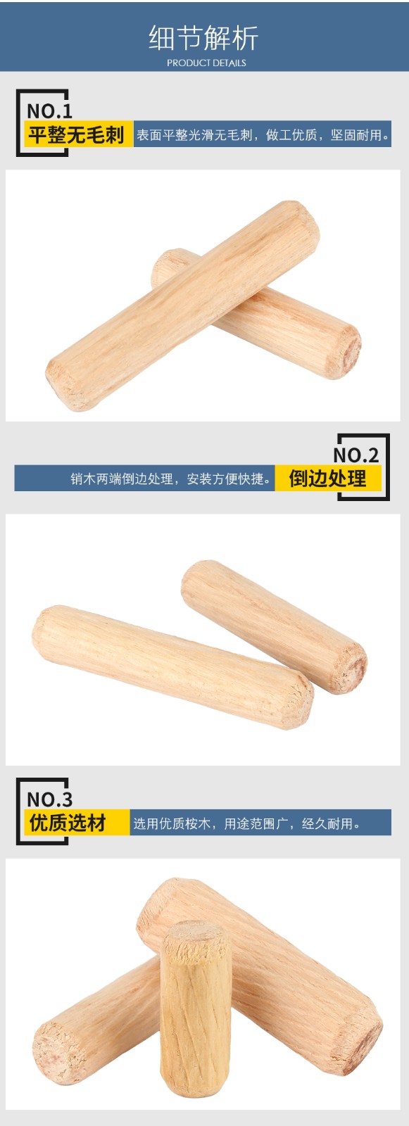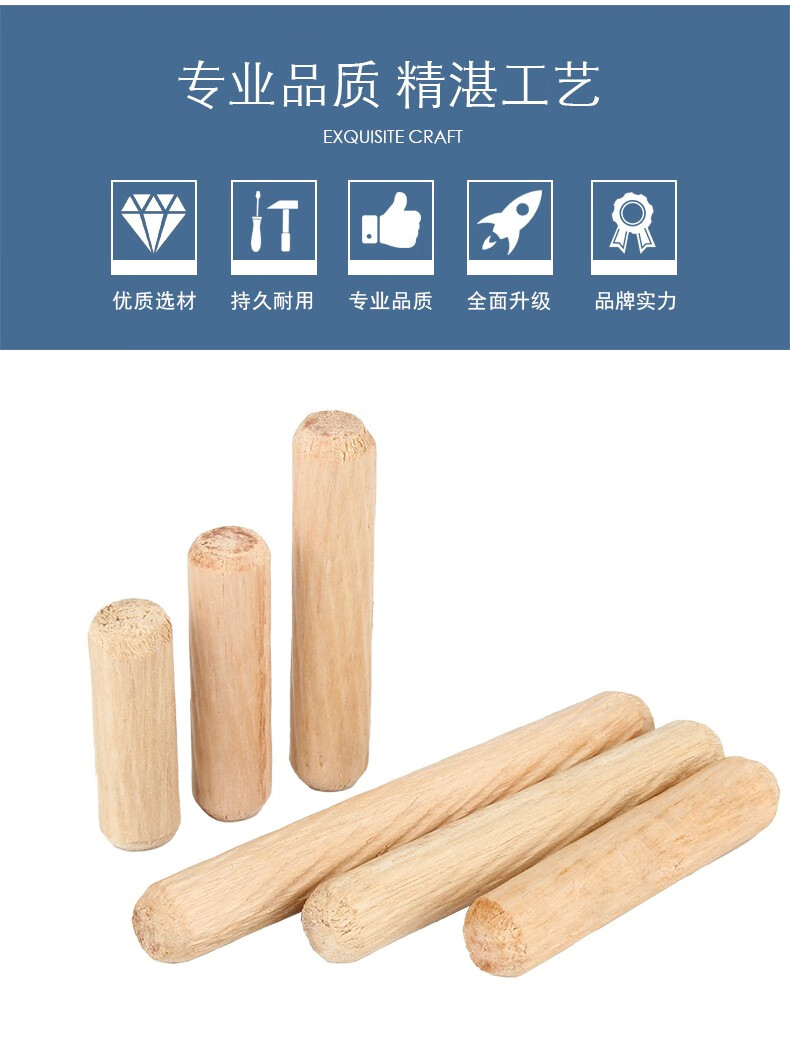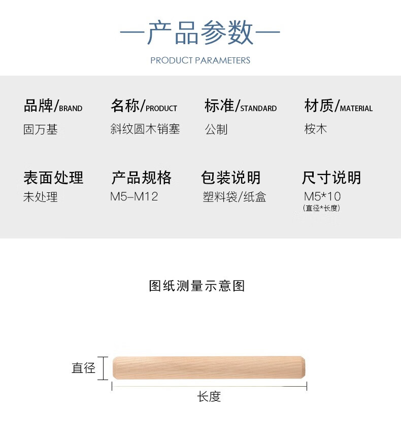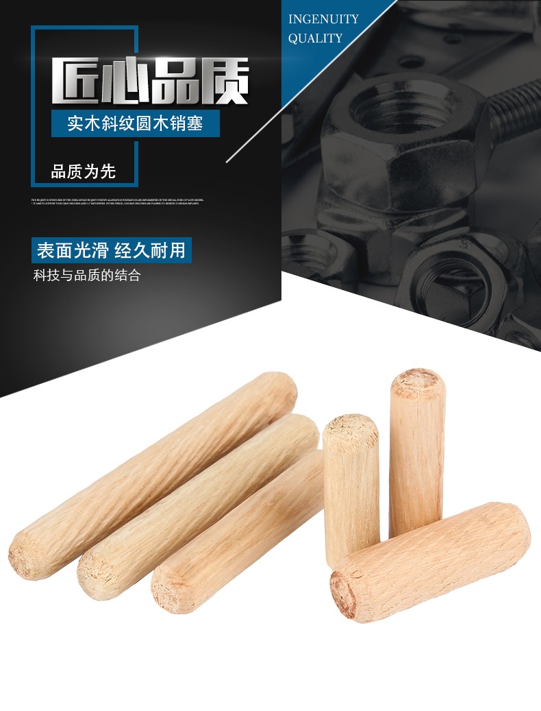 Guwanji round wood plug wooden nail solid wood wooden stick wooden tenon twill wedge wooden plug round wooden ridge wooden dowel wardrobe cabinet connection piece M8*40 (50 pieces)
