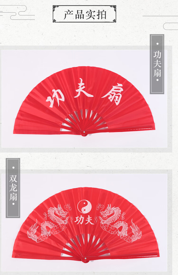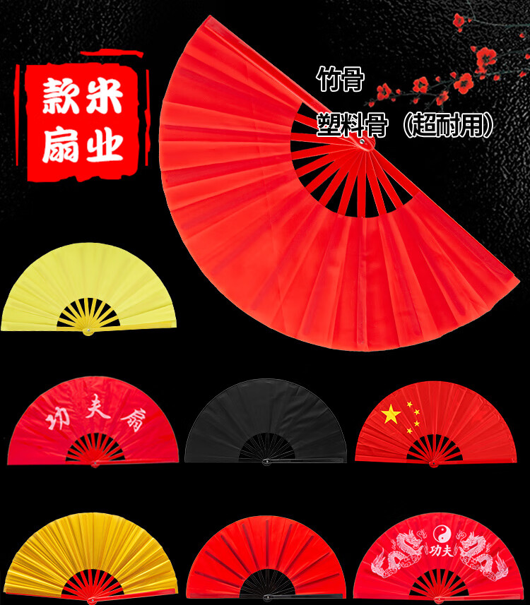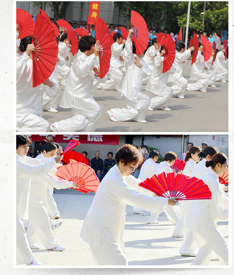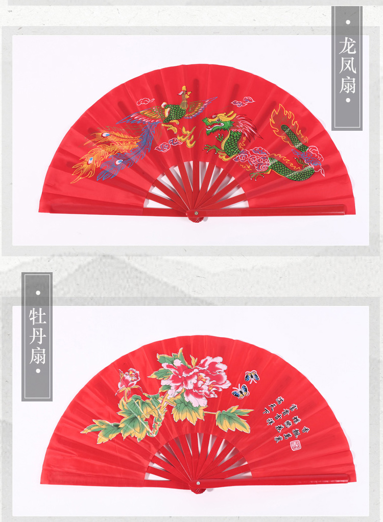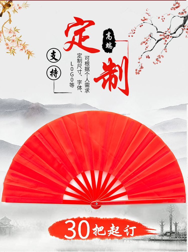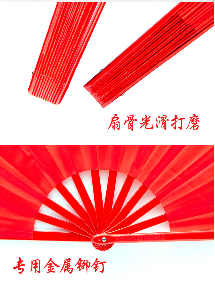 SANBF Tai Chi fan red Kung Fu fan martial arts performance Chinese style double-sided loud fan fitness adult children plastic dance fan encrypted bone plastic 1 foot double-sided red