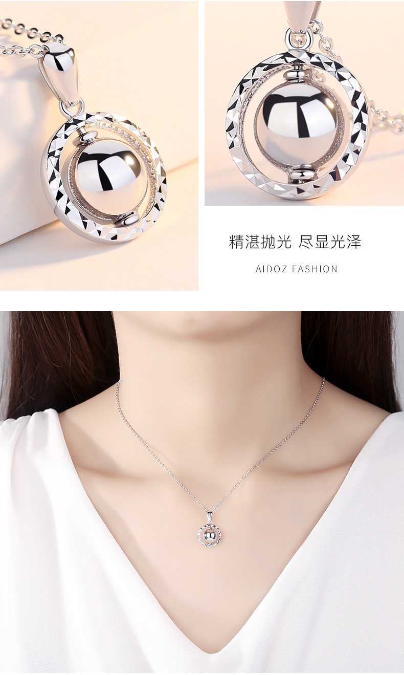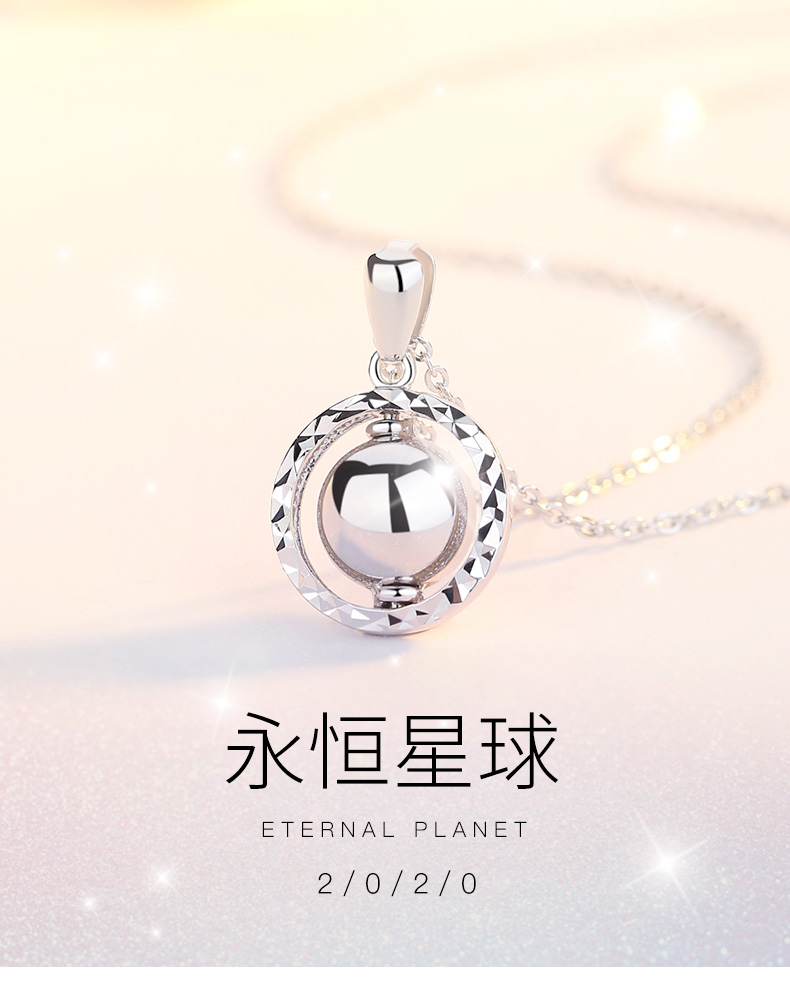 Misu PT950 platinum eternal planet pendant for women, rotatable platinum transfer bead pendant for girlfriend’s birthday, weight 3.0-3.2 grams + delivery silver chain + free engraving