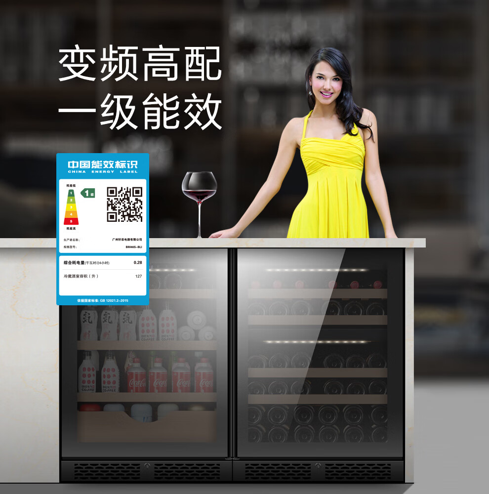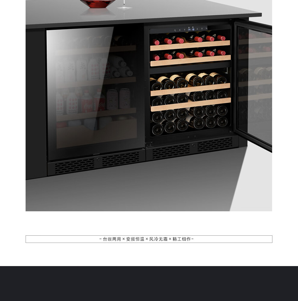 PULADI frequency conversion level 1 energy efficiency frost-free ice bar home living room refrigerator tea office refrigerator freezer built-in red wine cabinet tea refrigeration and fresh cabinet light luxury mirror frequency conversion level 1 energy efficiency dual temperature-wine cabinet concealed handle