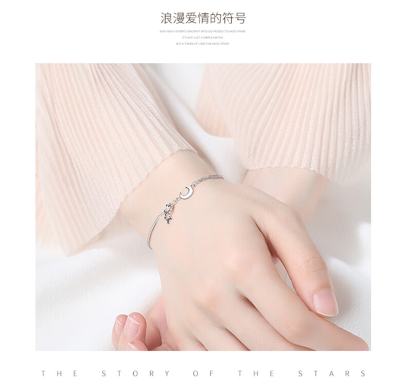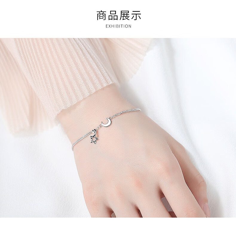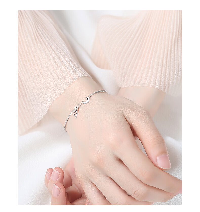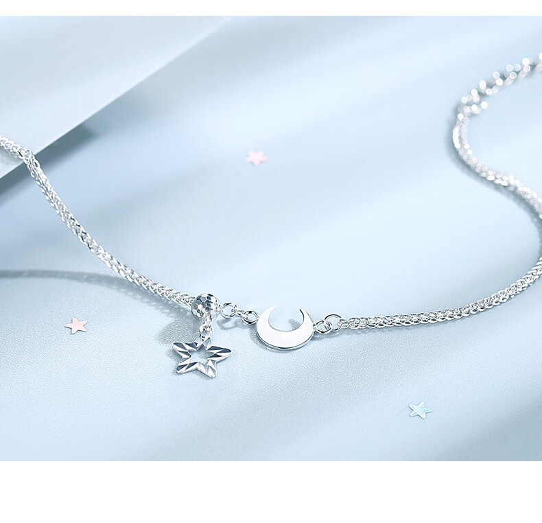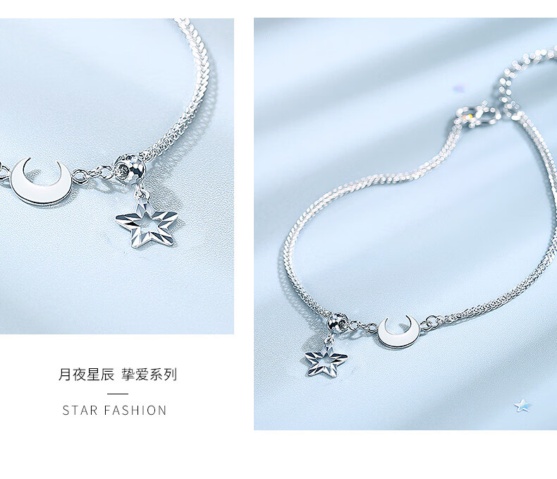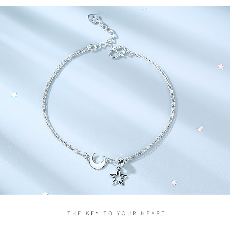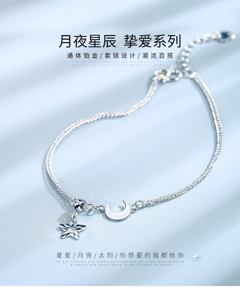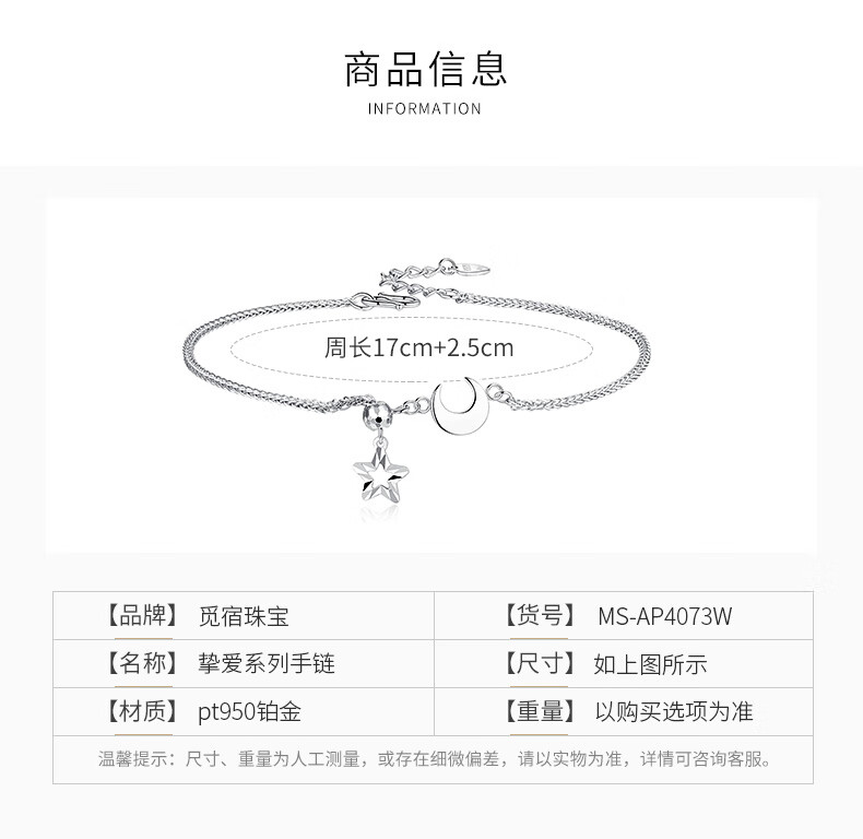 Misu Platinum Star Bracelet for Women PT950 Platinum Moon Pendant Adjustable Hand Jewelry Fashion Birthday Gift Weight 2.3-2.5g 16+2cm