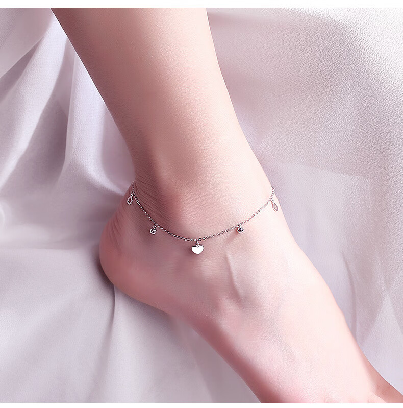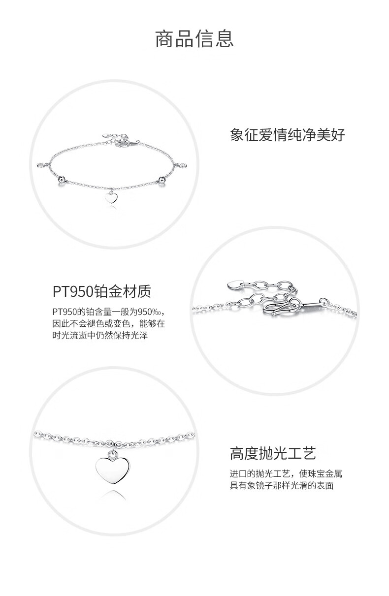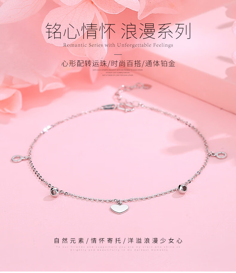 Misu Platinum Anklet for Women PT950 Platinum Heart-Shaped Pendant Laser Transfer Bead Romantic Foot Accessory for Girlfriend’s Birthday Weight 3.0-3.2 Grams + Free Engraving + Certificate