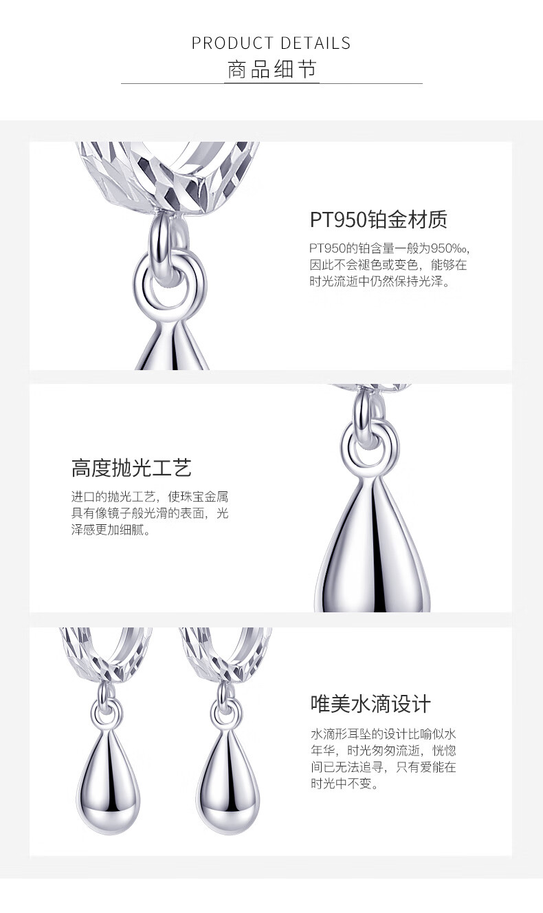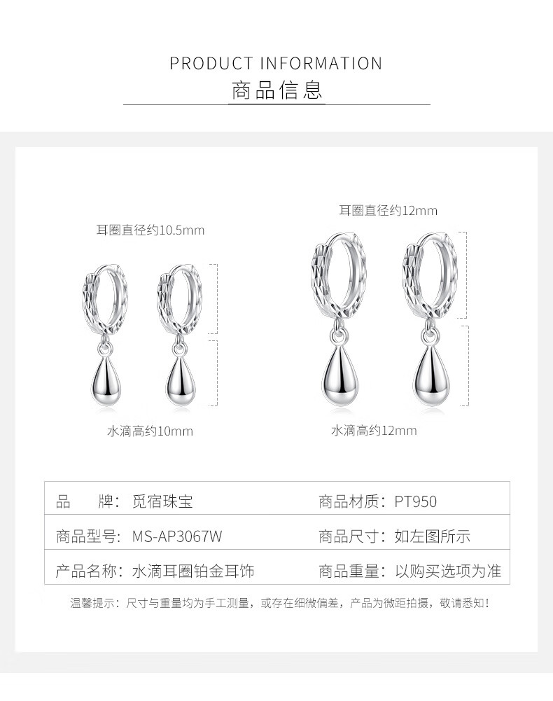 Misu Platinum Earrings for Women Fashionable PT950 Platinum Water Drop Earrings Laser Car Flower Earrings Birthday Gift Small Size 3.4-3.6g