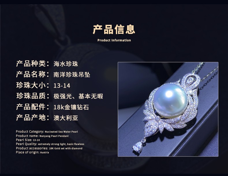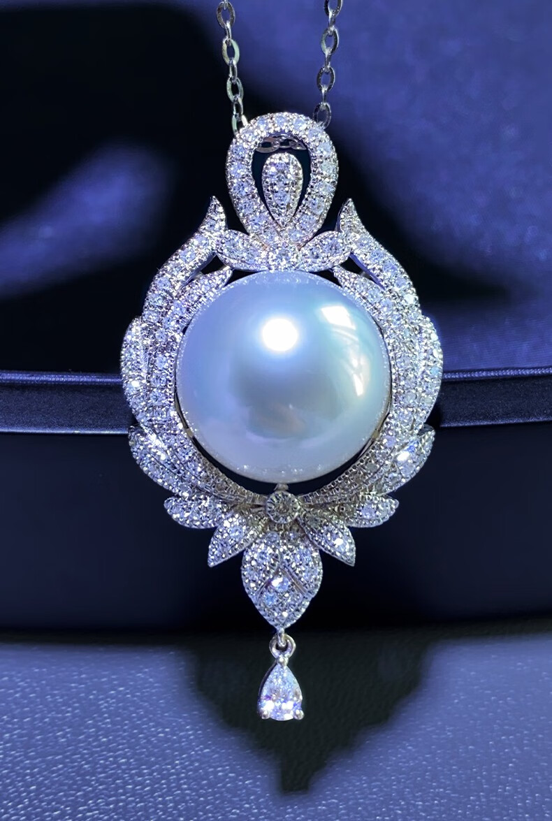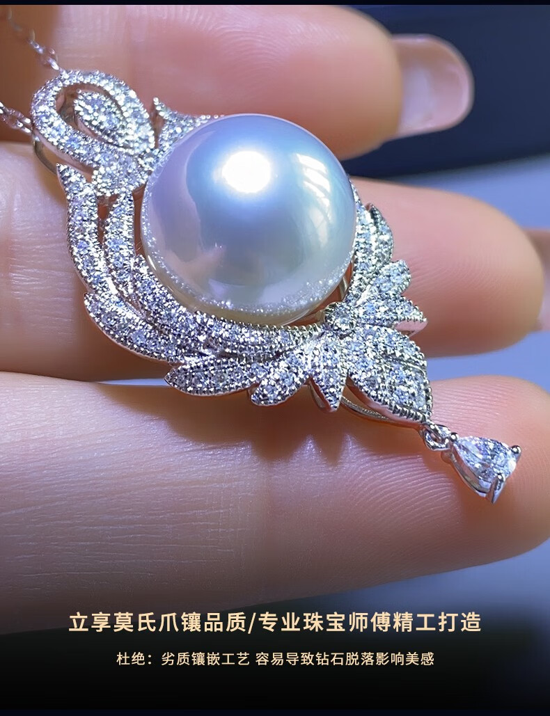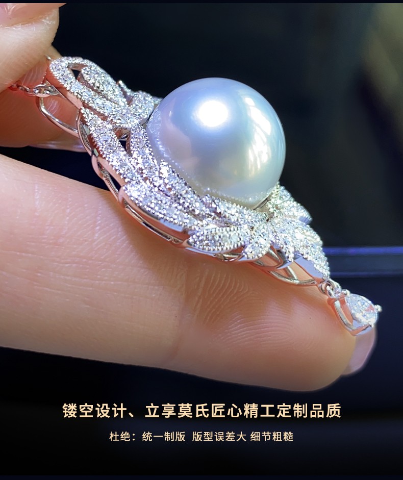 Mohs Luxury Australian White Pearl Pendant Perfect Round Extremely Bright White Seawater Necklace 18K Diamond Water Drop Pendant Customized 12-13mm