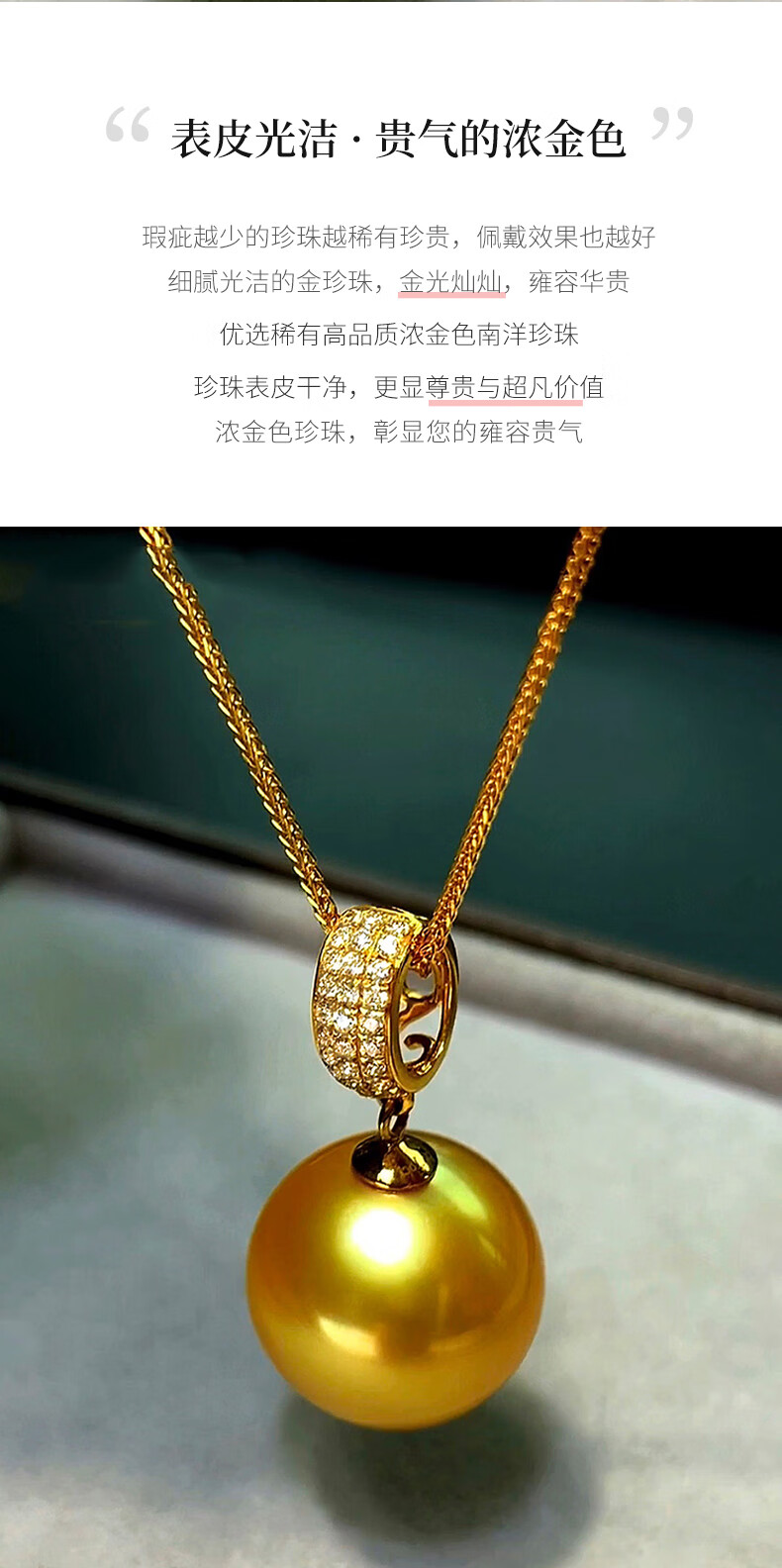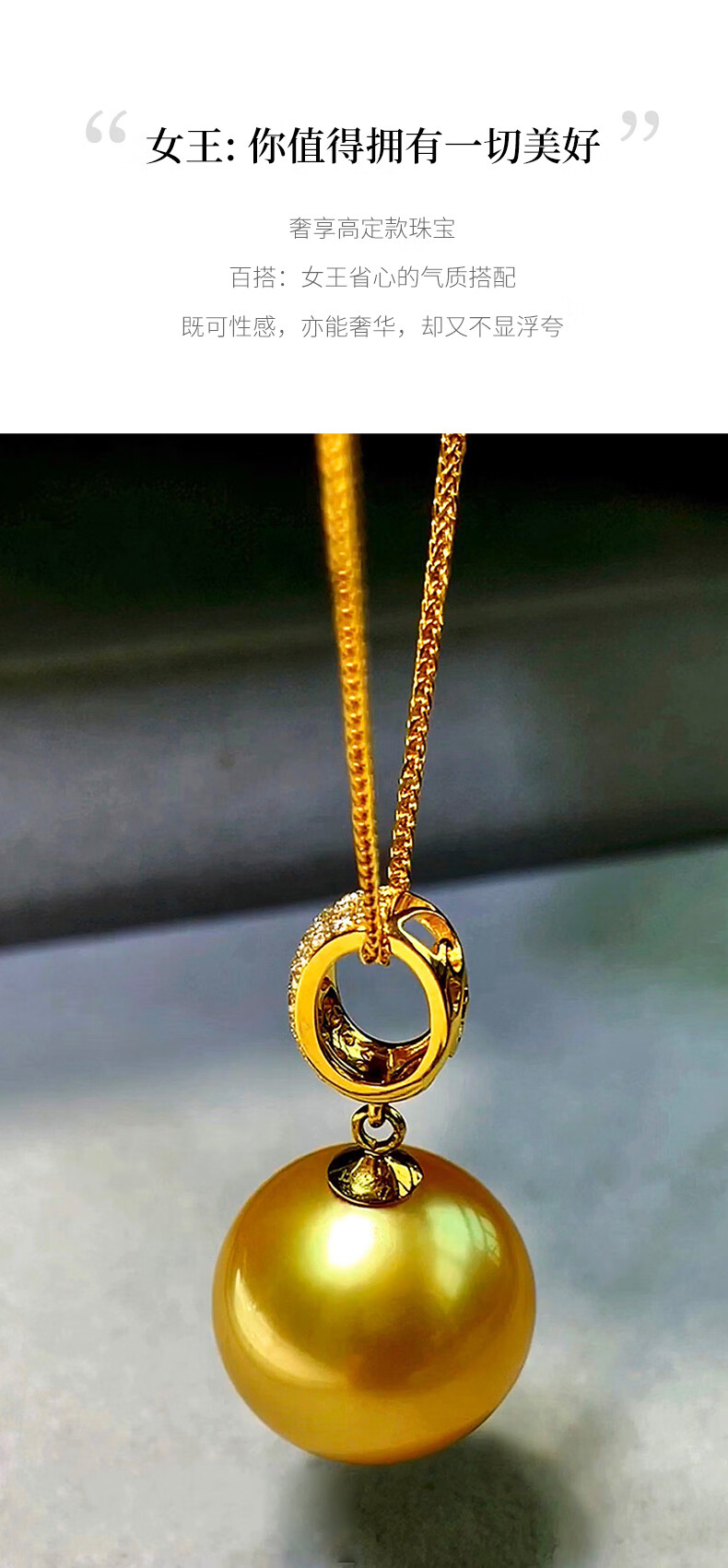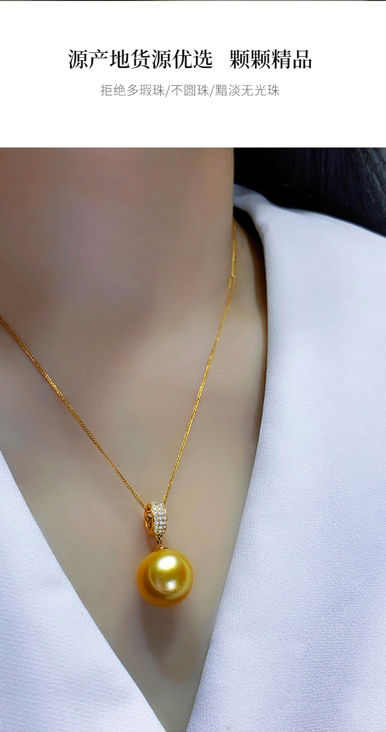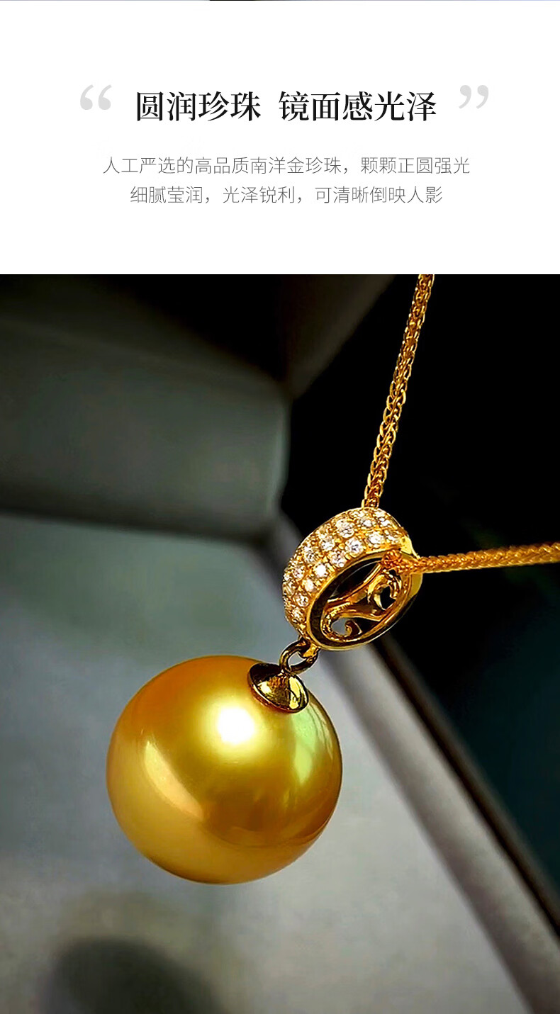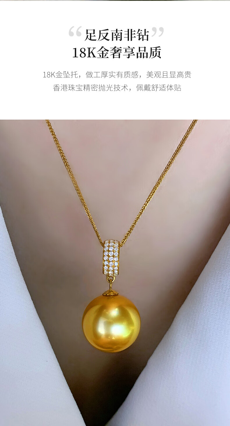 Nanxi selected thick gold 18k gold South African diamond South Sea gold beads pearl pendant single seawater pearl necklace for women Philippine thick gold beads + 18k gold chain 13-14mm basically flawless