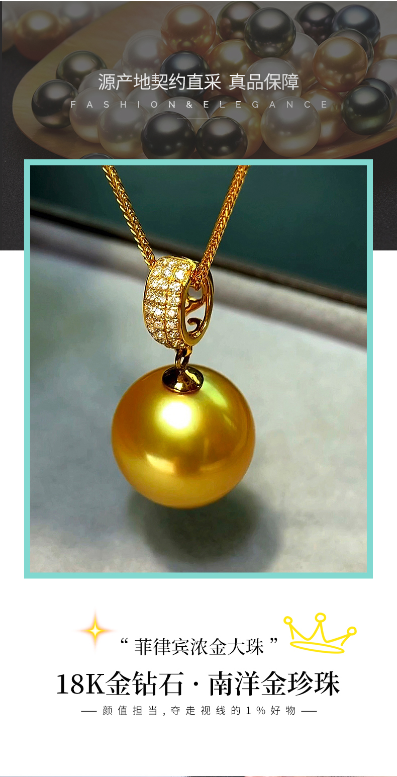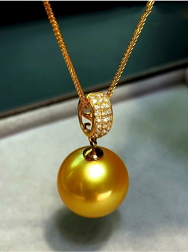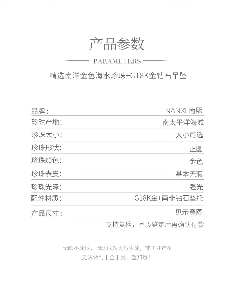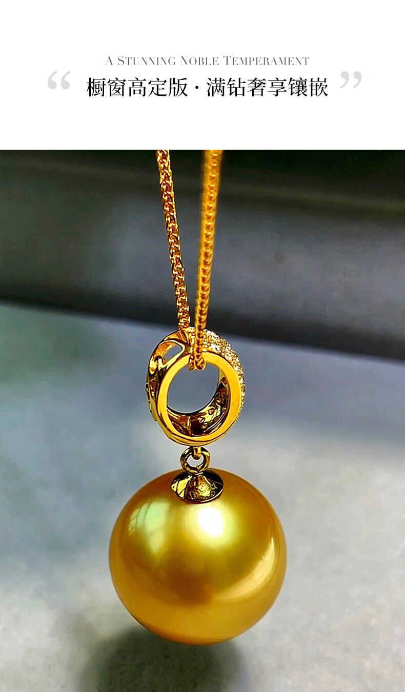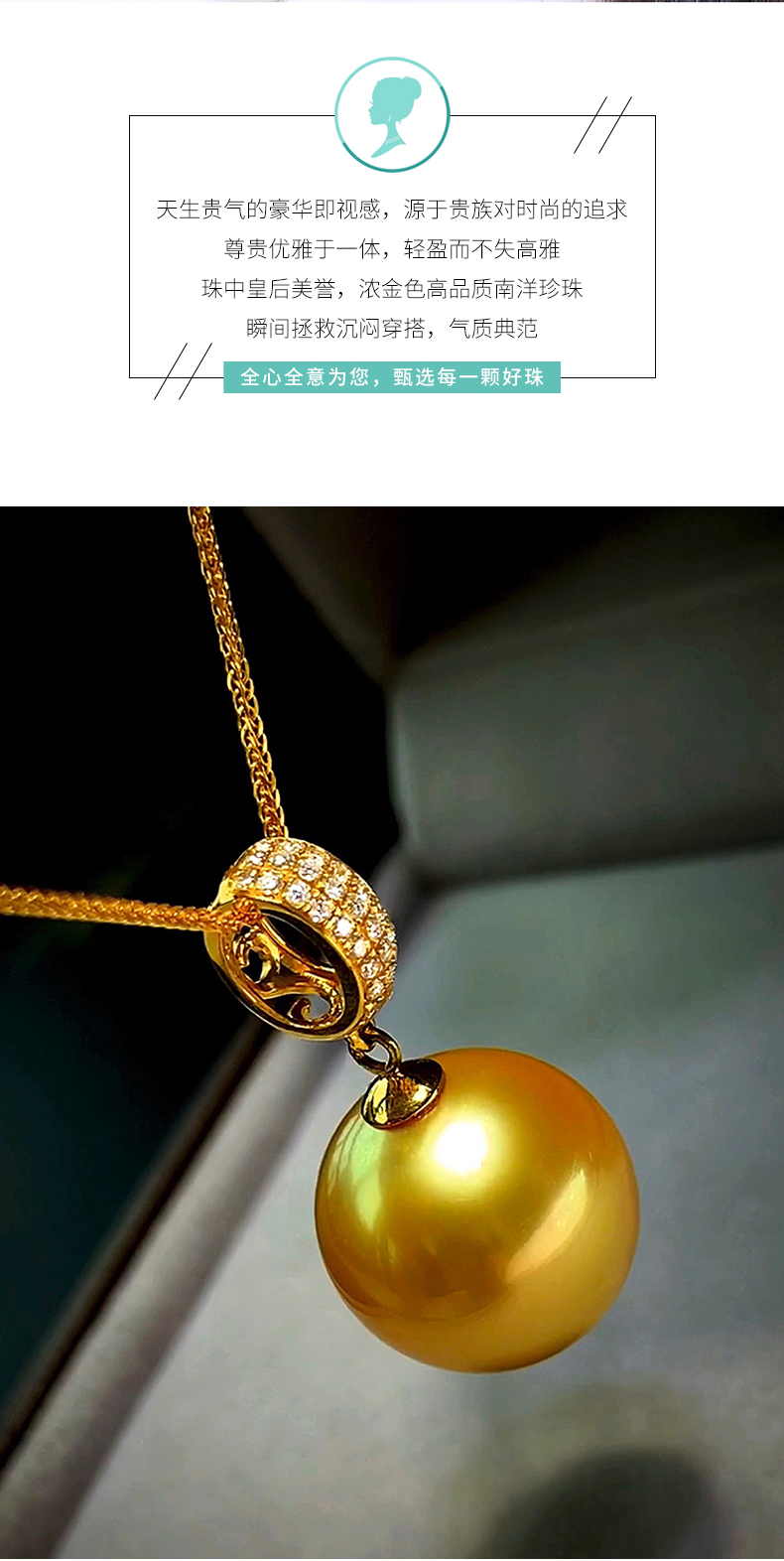 Nanxi selected thick gold 18k gold South African diamond South Sea gold beads pearl pendant single seawater pearl necklace for women Philippine thick gold beads + 18k gold chain 13-14mm basically flawless