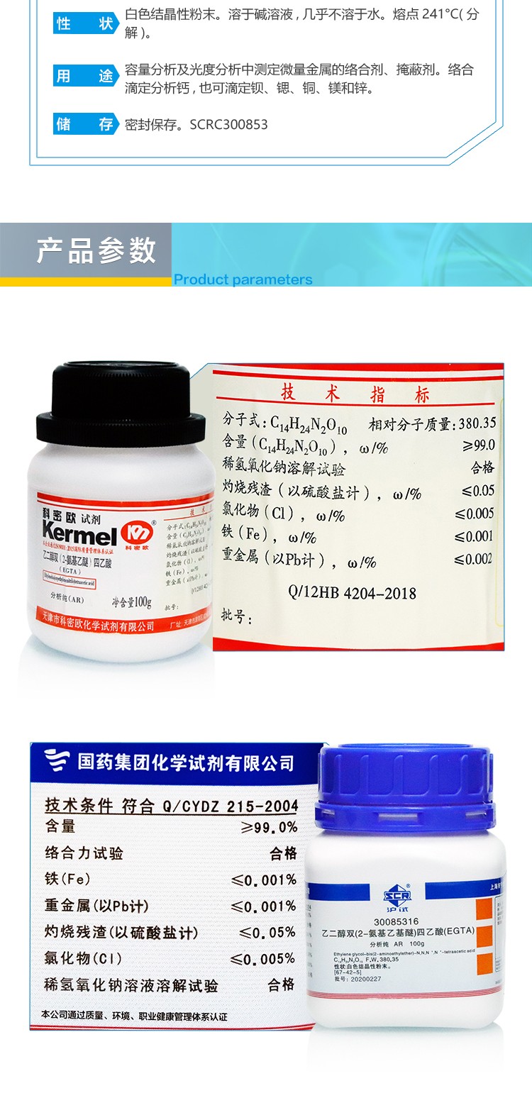 Sinopharm Comeo EGTA Ethylene glycol bis (2-aminoethyl ether) tetraacetic acid analytical grade AR 100g Tianjin Comeo 100g