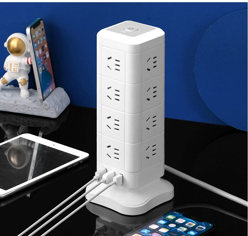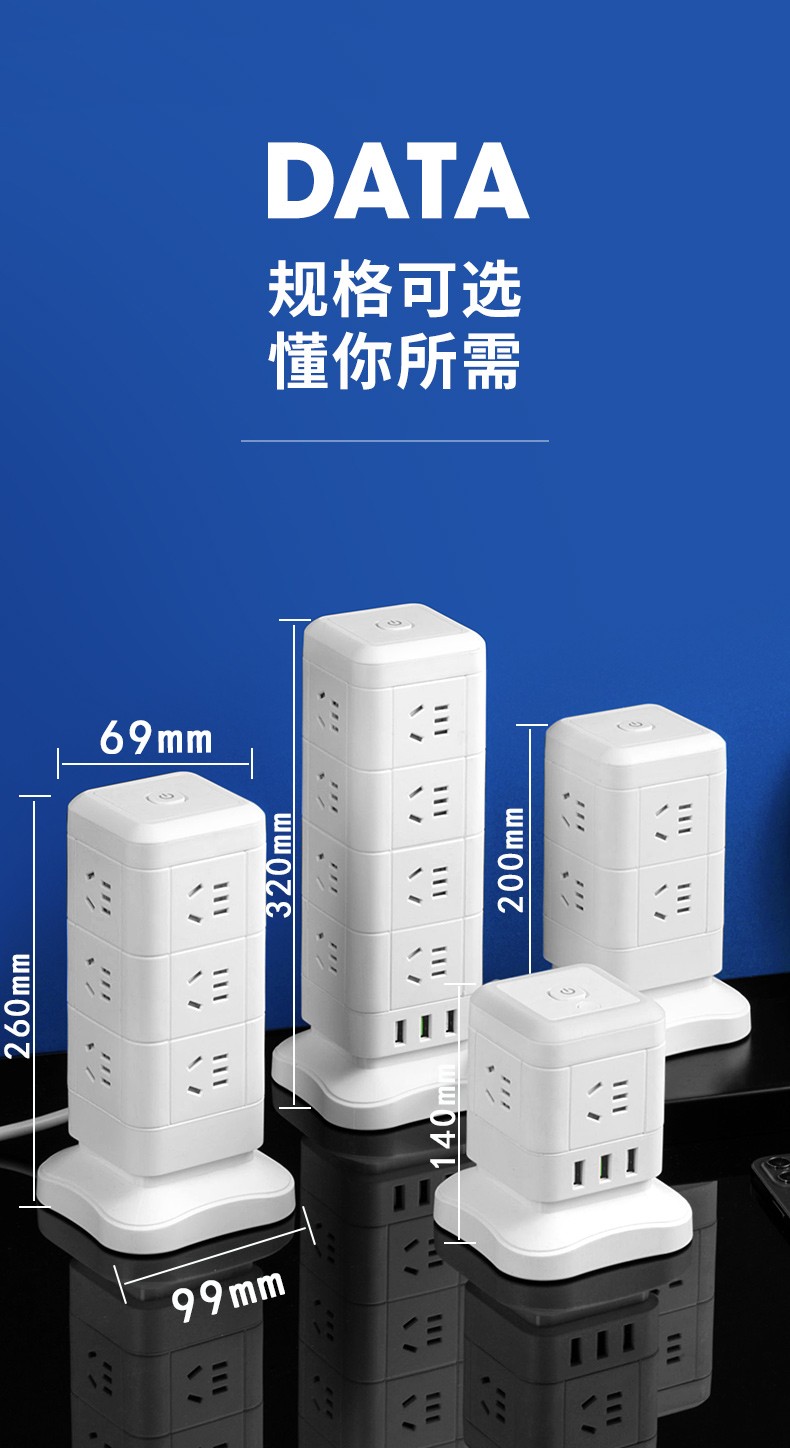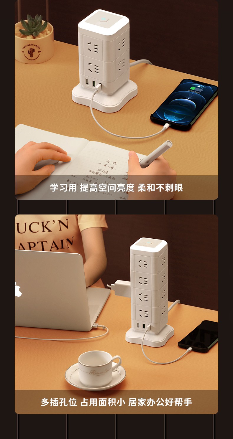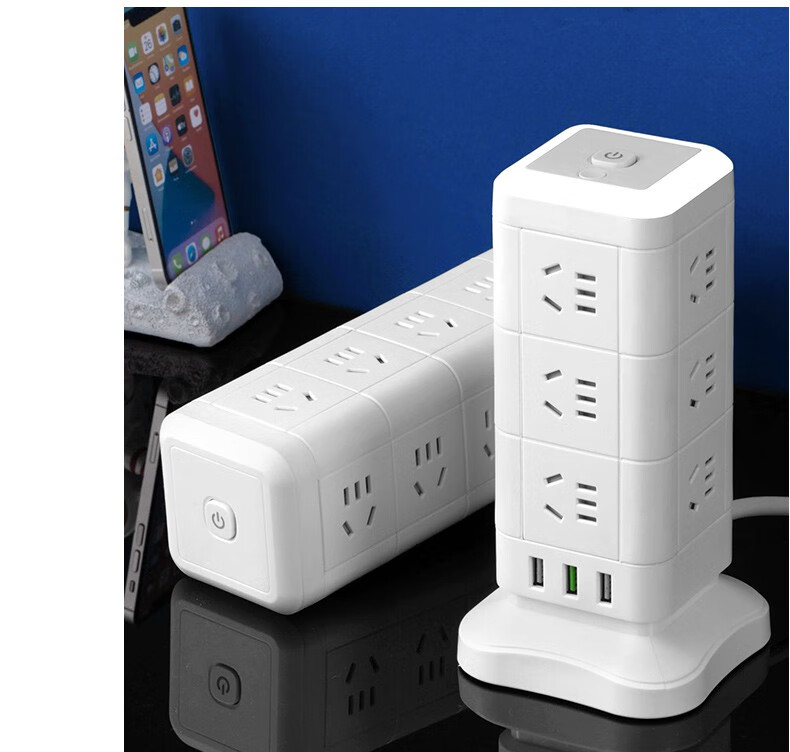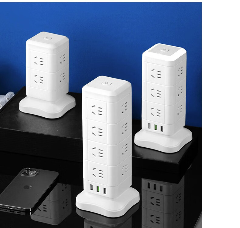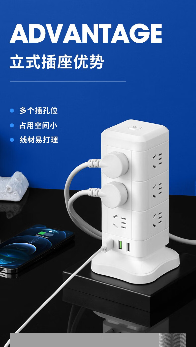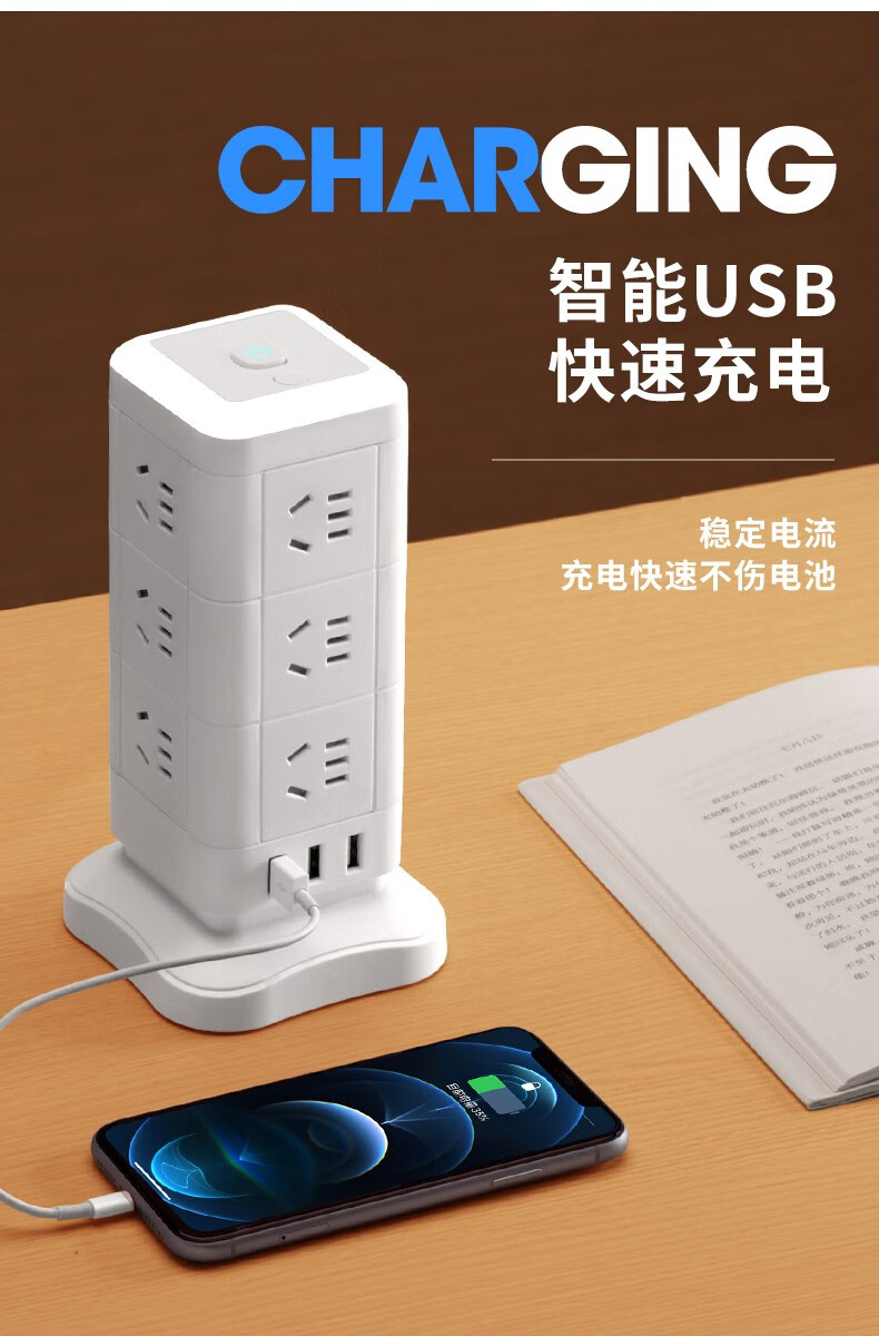 Vertical socket multi-hole plug-in board USB plug-in strip multi-purpose plug-in board with line multi-functional three-dimensional Rubik's cube Kangjiafu home office charging source tower drag strip 1 layer U (4 sockets + 3 USB) 0.8 meters
