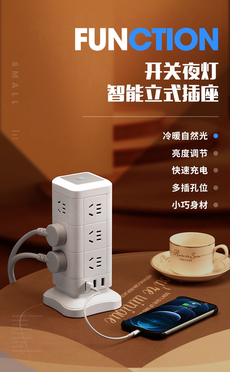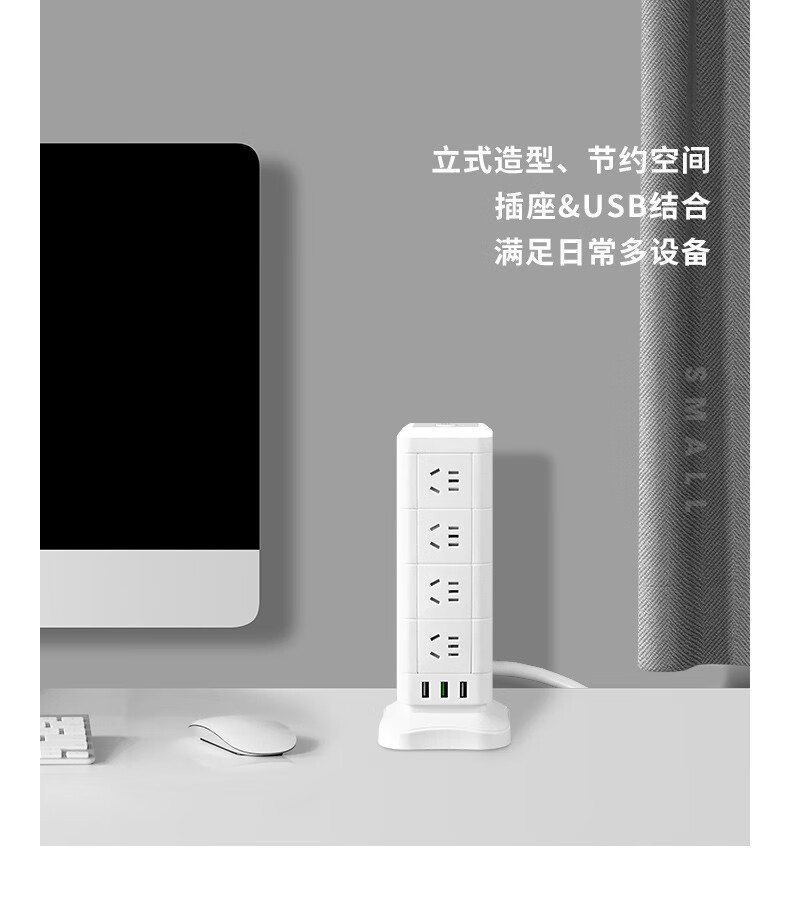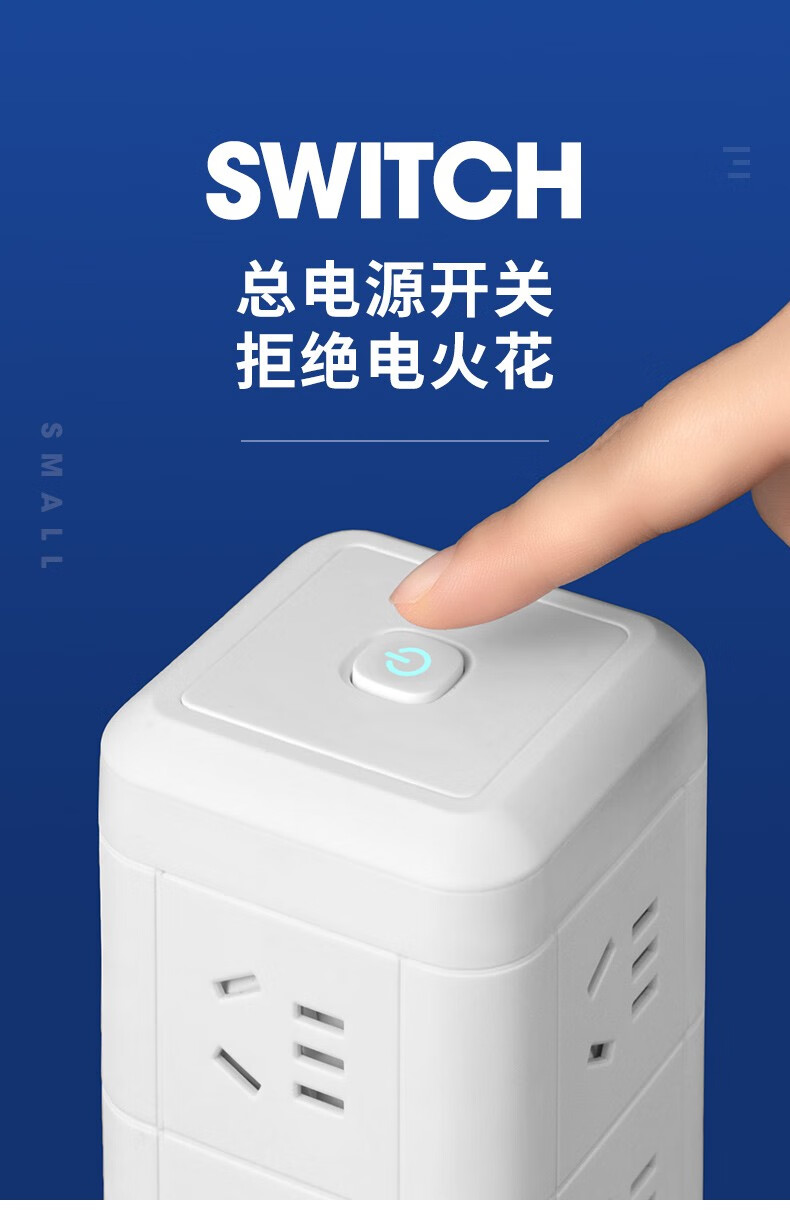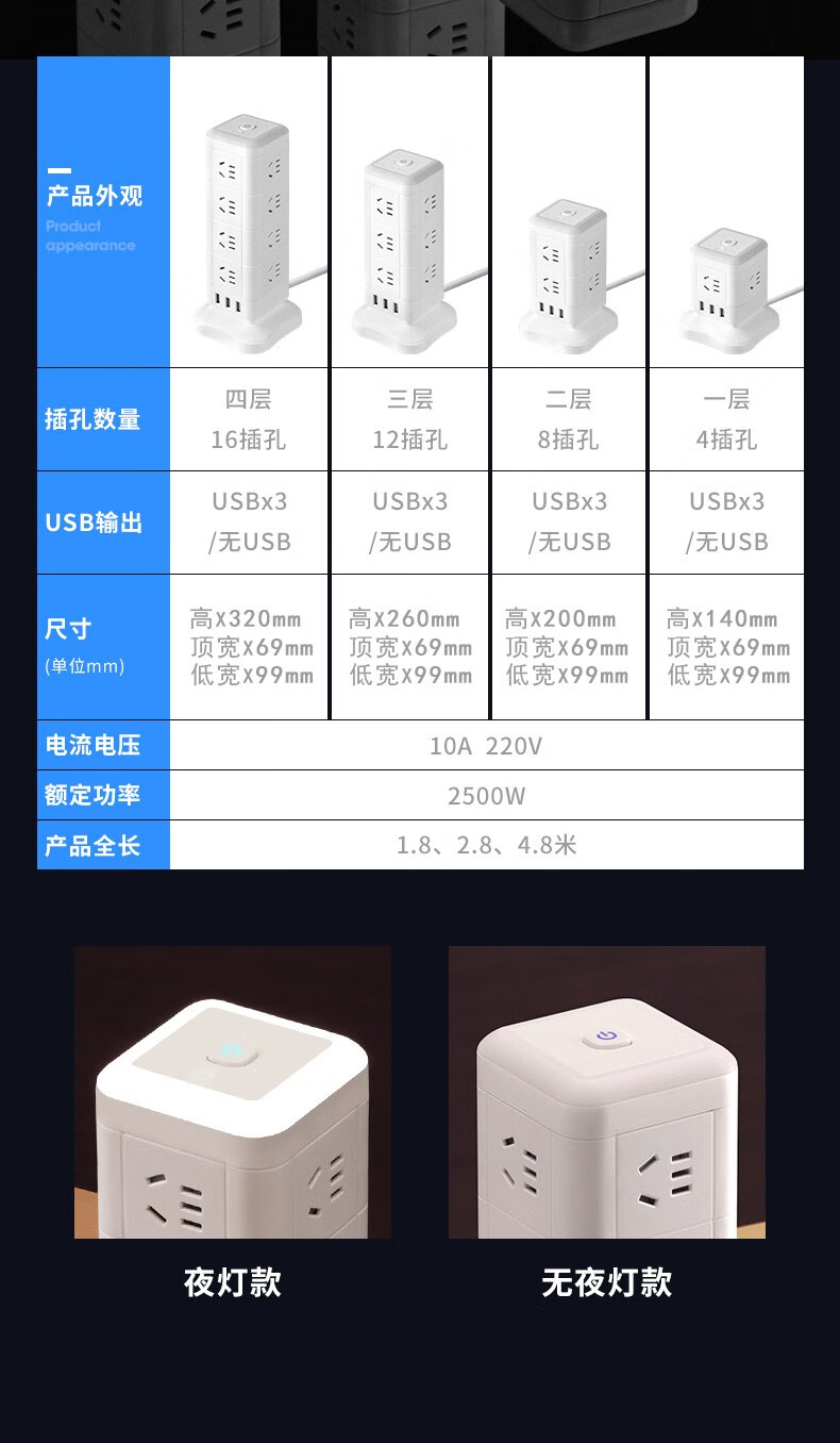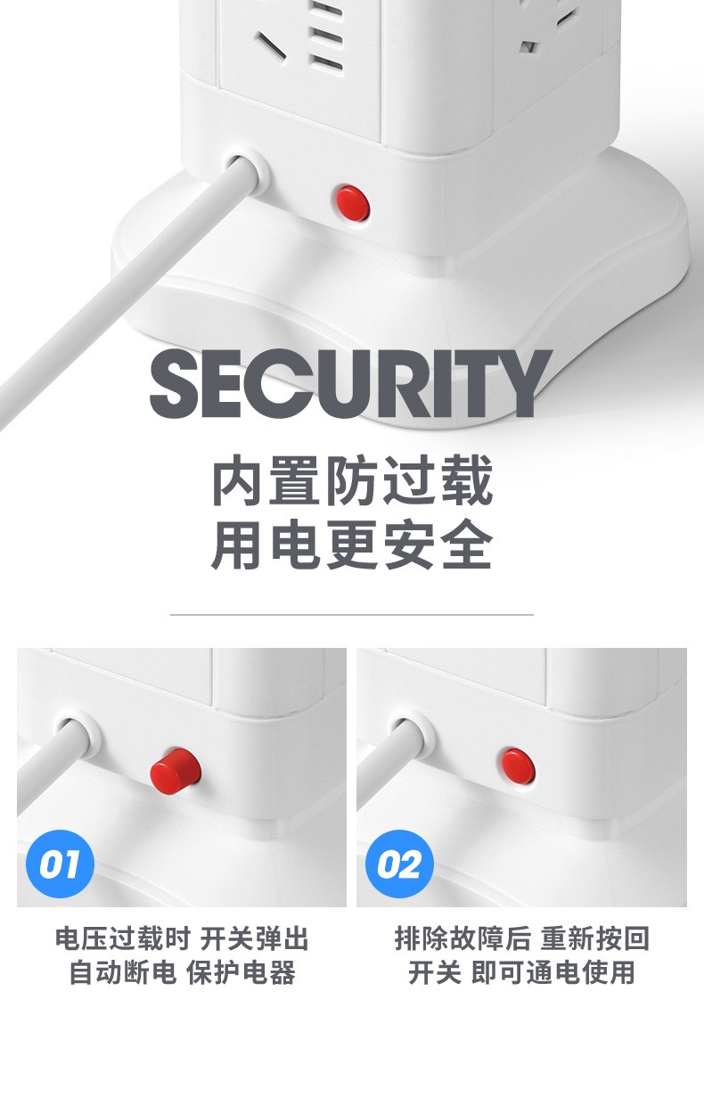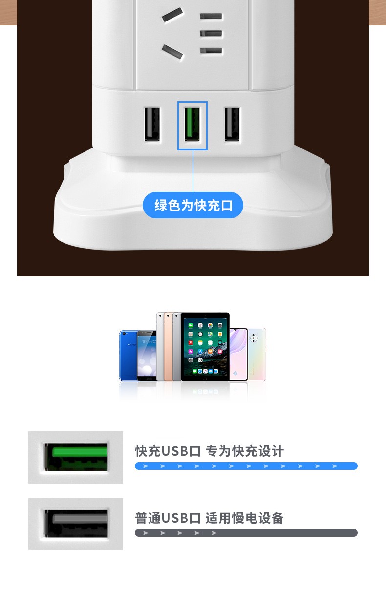 Vertical socket multi-hole plug-in board USB plug-in strip multi-purpose plug-in board with line multi-functional three-dimensional Rubik's cube Kangjiafu home office charging source tower drag strip 1 layer U (4 sockets + 3 USB) 0.8 meters